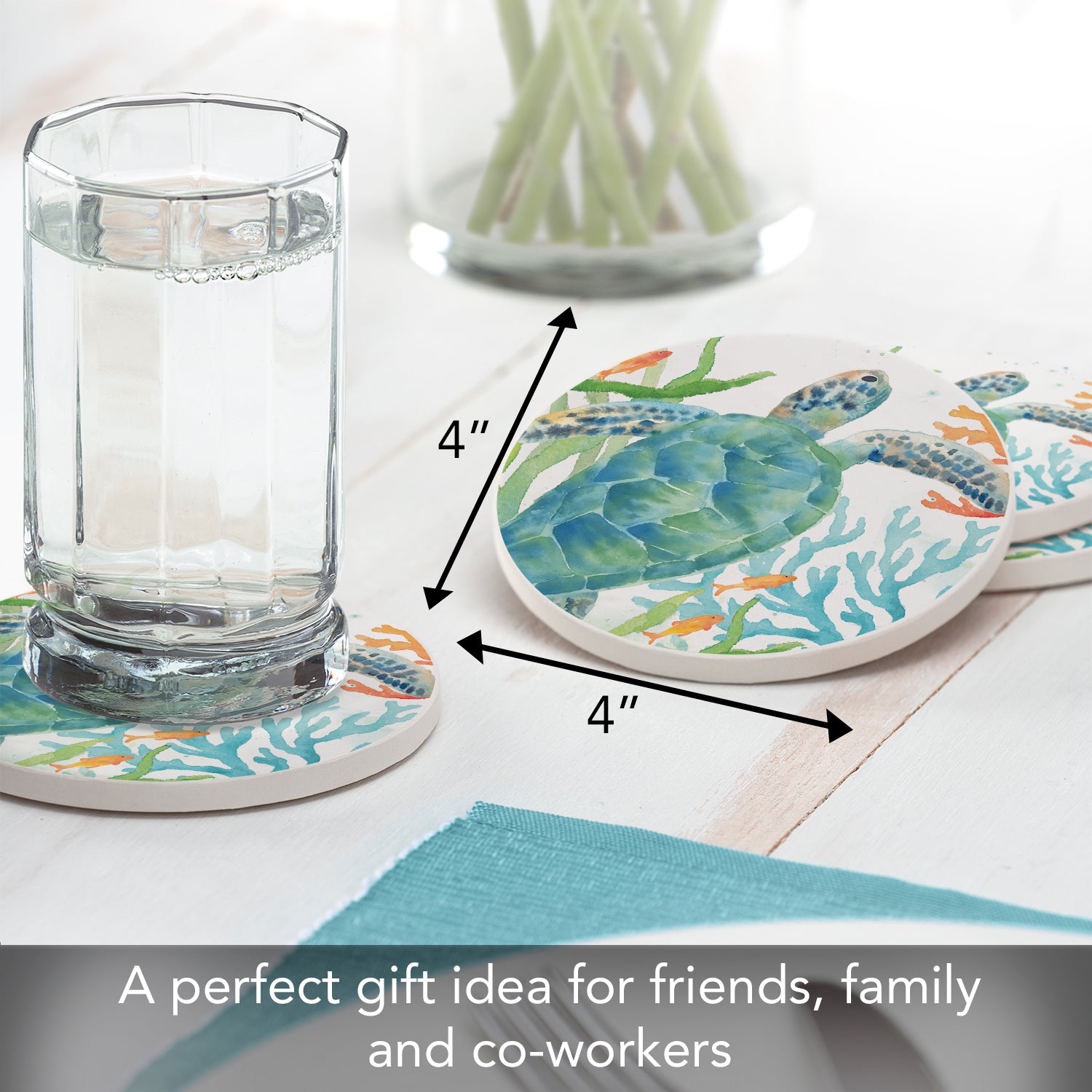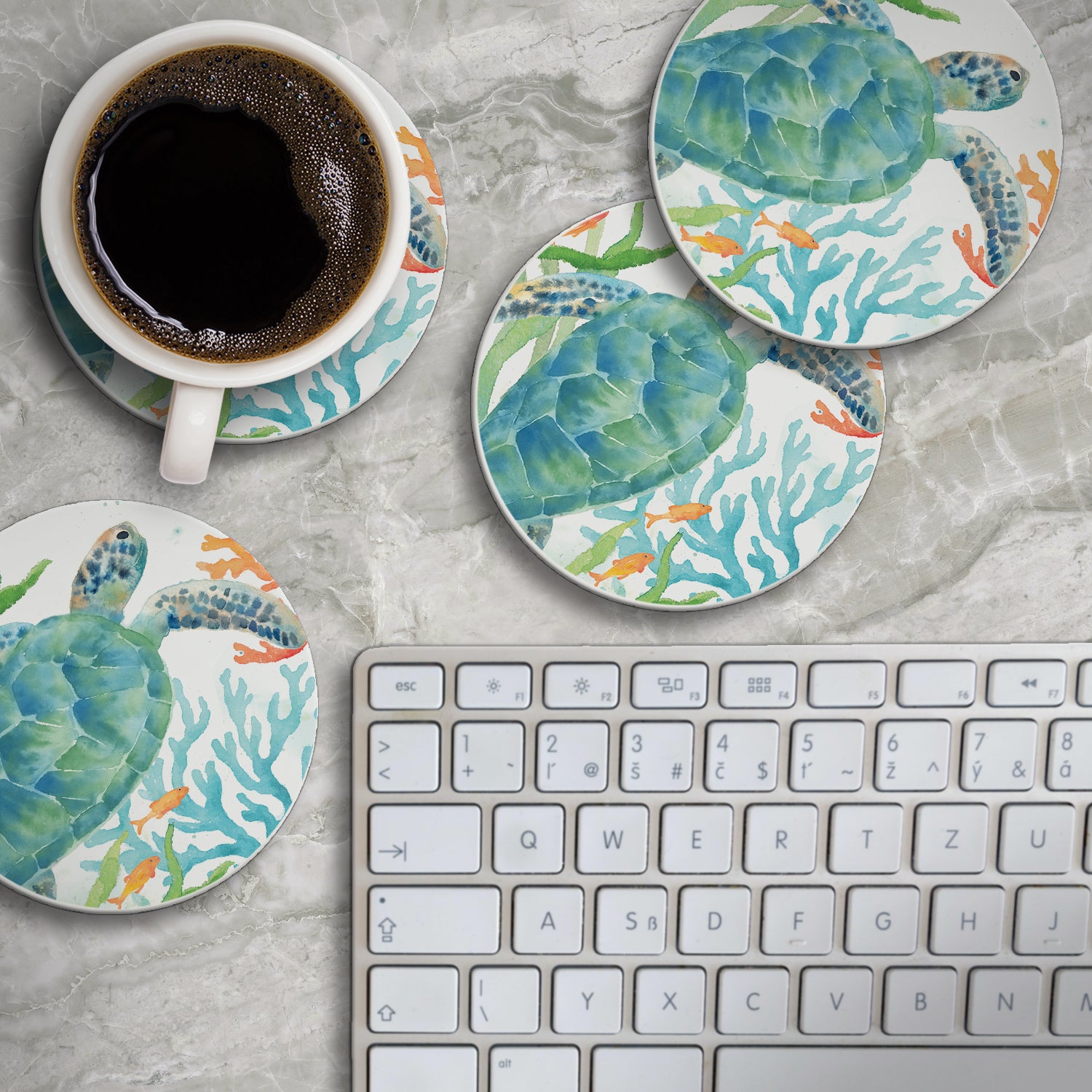 Thirstystone Sea Life Serenade 4 Pack Absorbent Stone Coasters 4" Diameter Manufactured in the USA