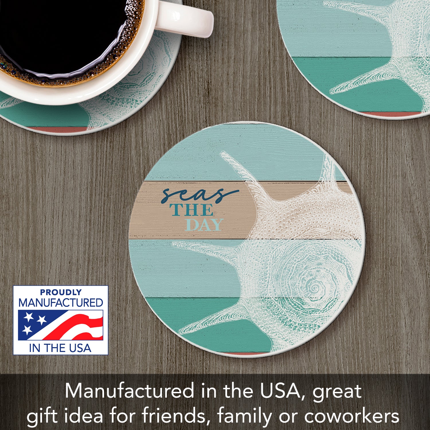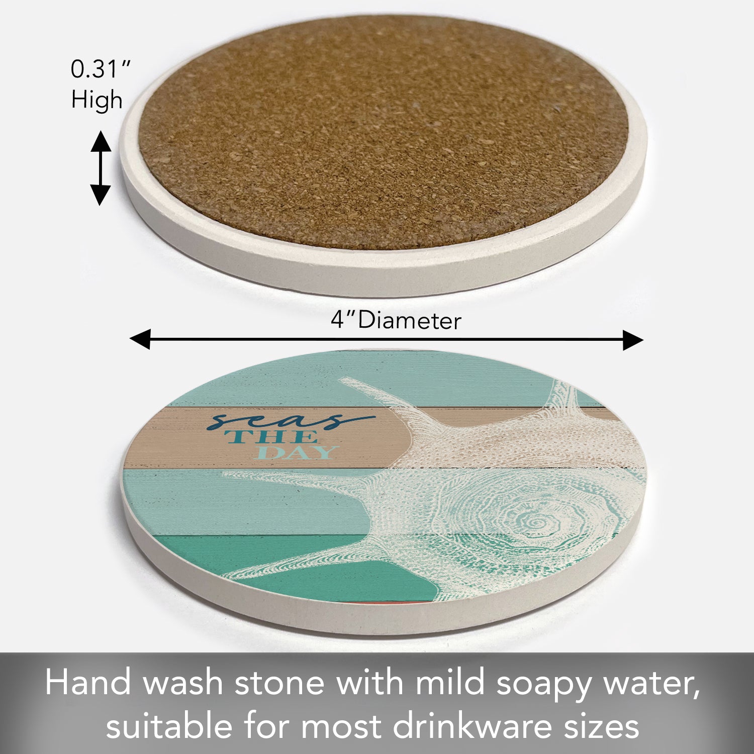 Thirstystone Seas The Day Round Absorbent Stone Coaster with Protective Cork Backing Manufactured in The USA 4" Diameter