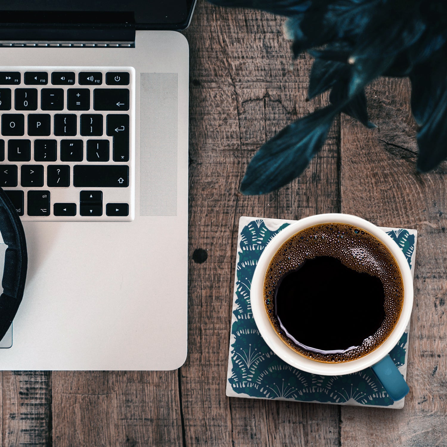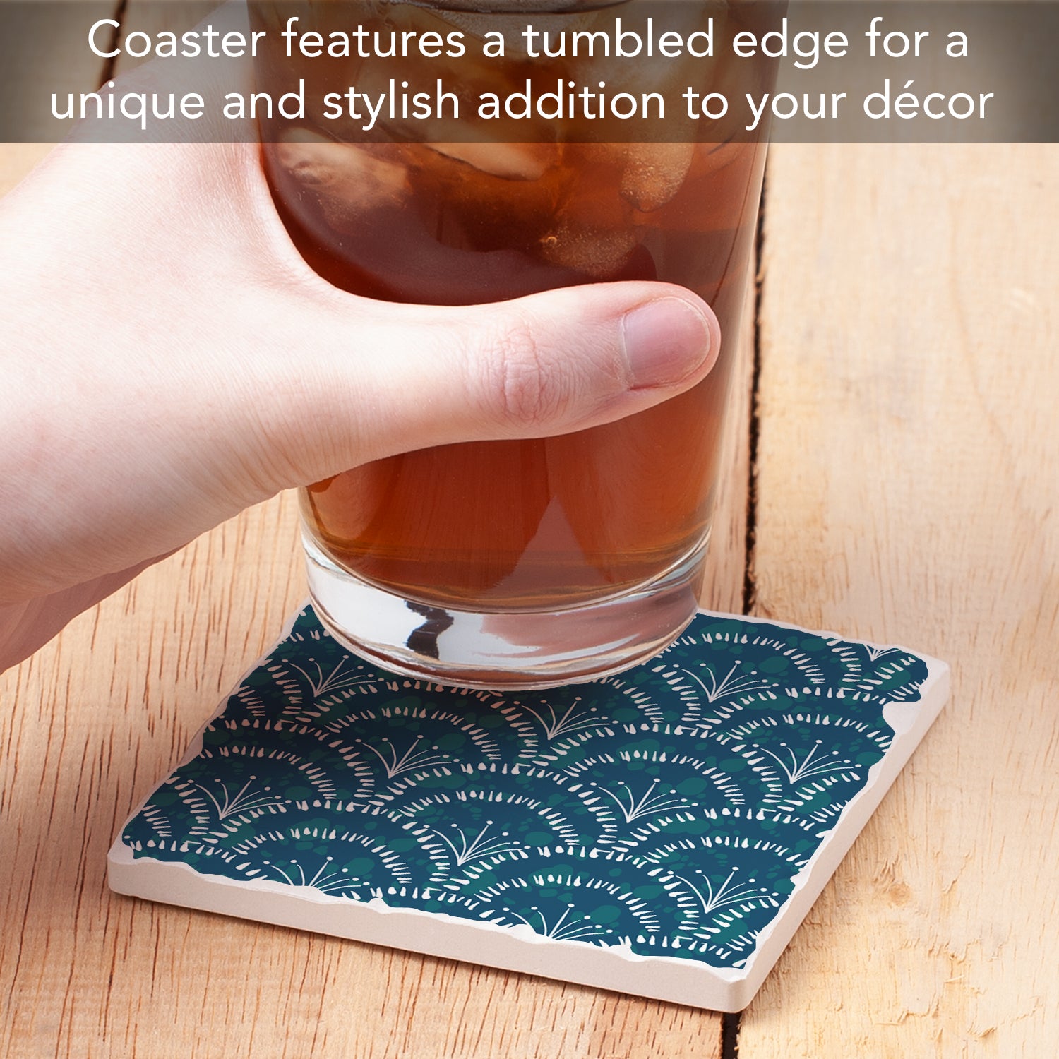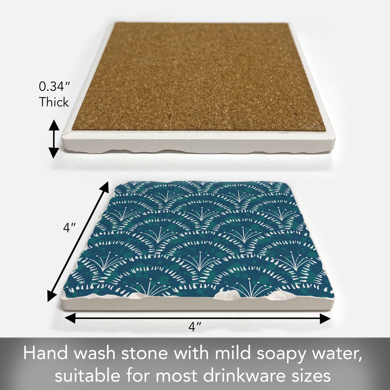 FUNCTIONAL ART-Beautiful artistic design allows the Coaster to remain displayed even when not in use. Each Coaster measures 4” x 4” x .25”. Sized to fit larger Mugs & Glasses.