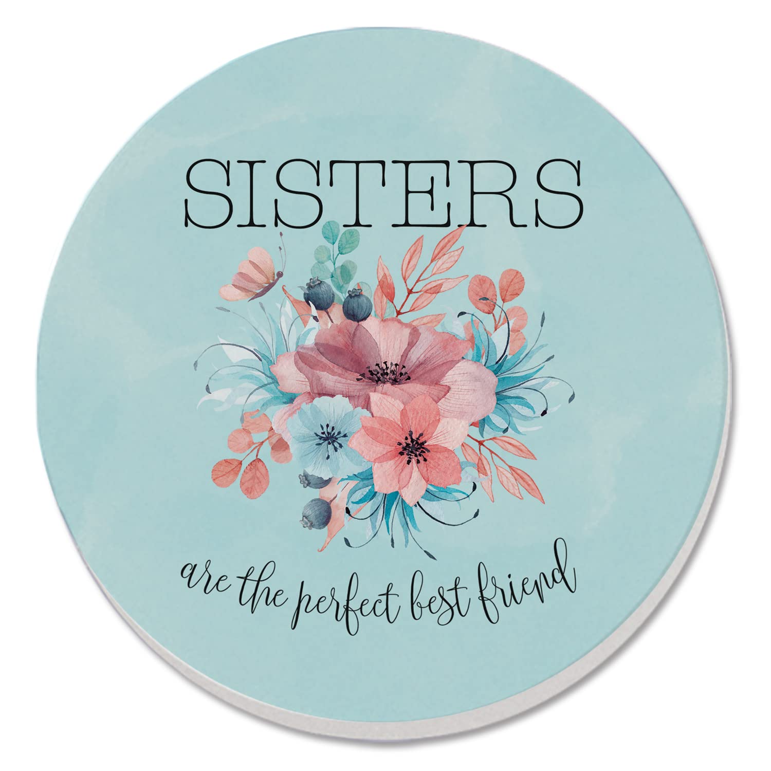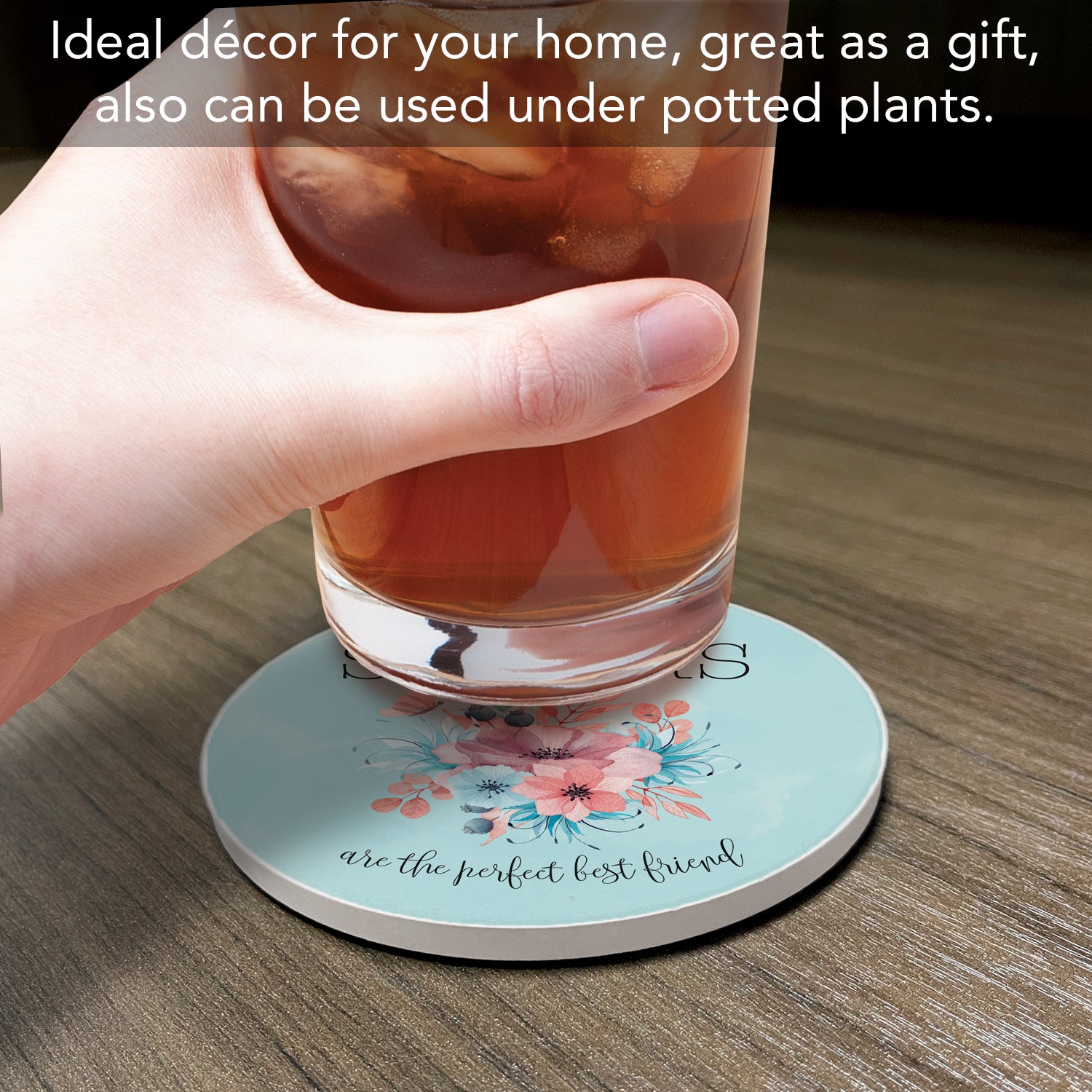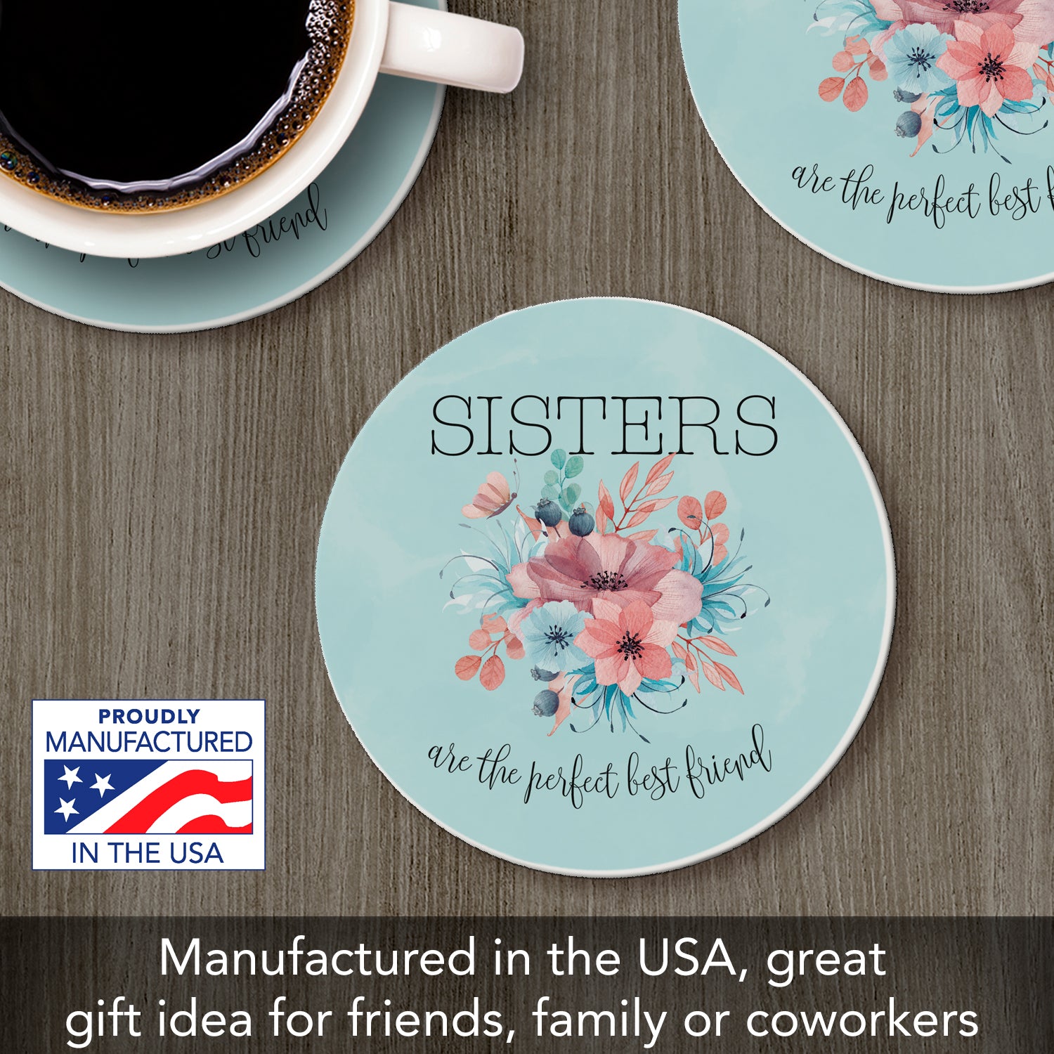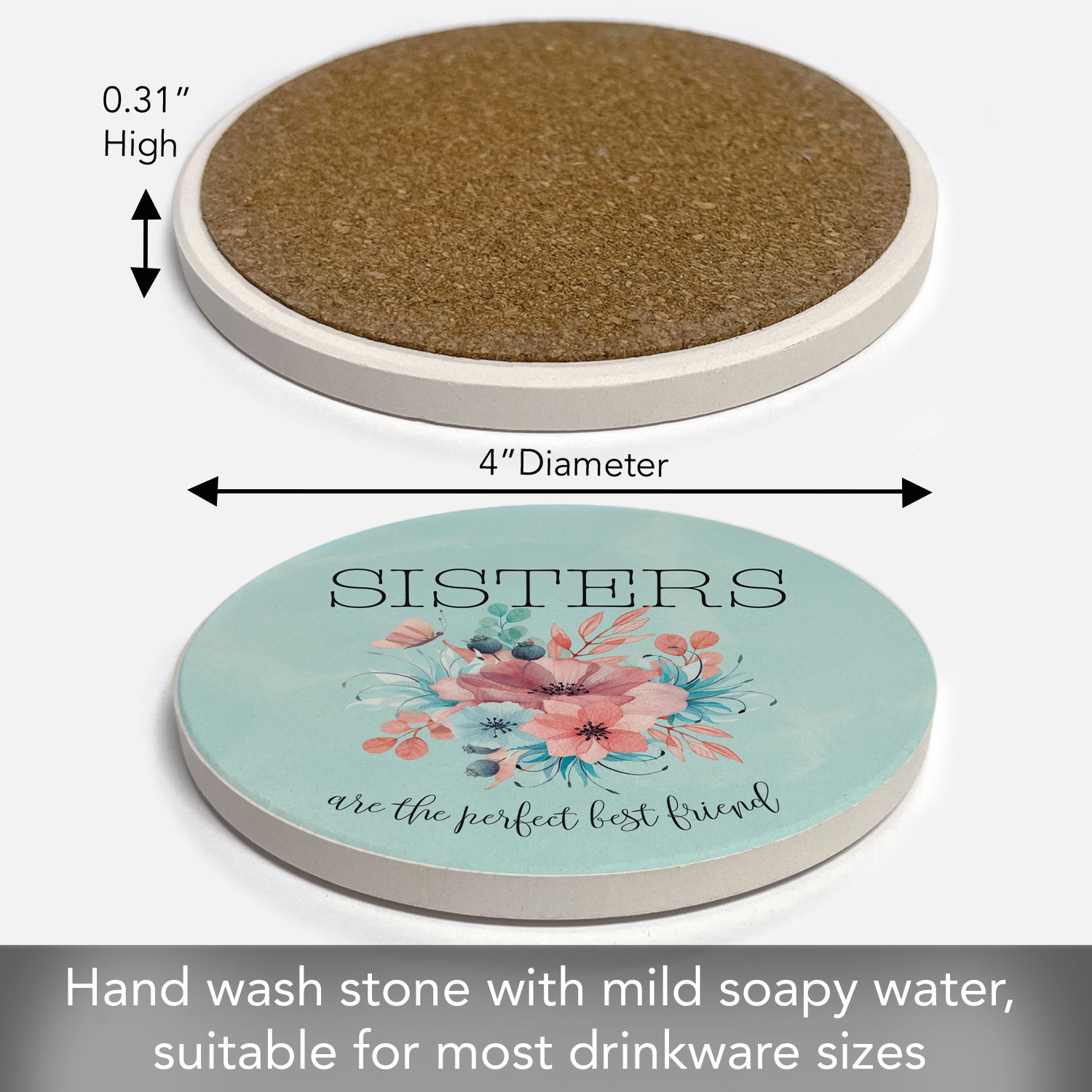Thirstystone Sisters Best Friends Single Round Absorbent Stone Coaster with Protective Cork Backing Manufactured in The USA 4" Diameter