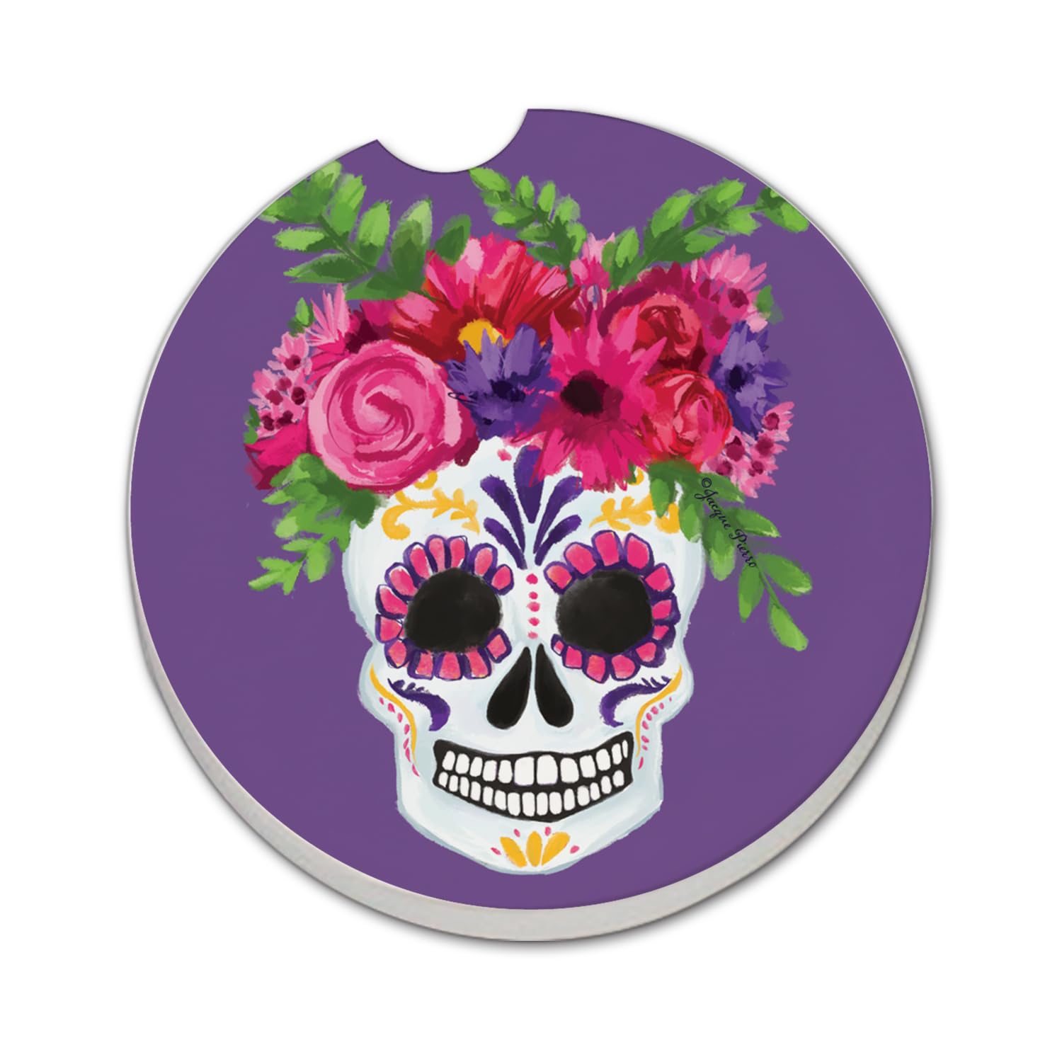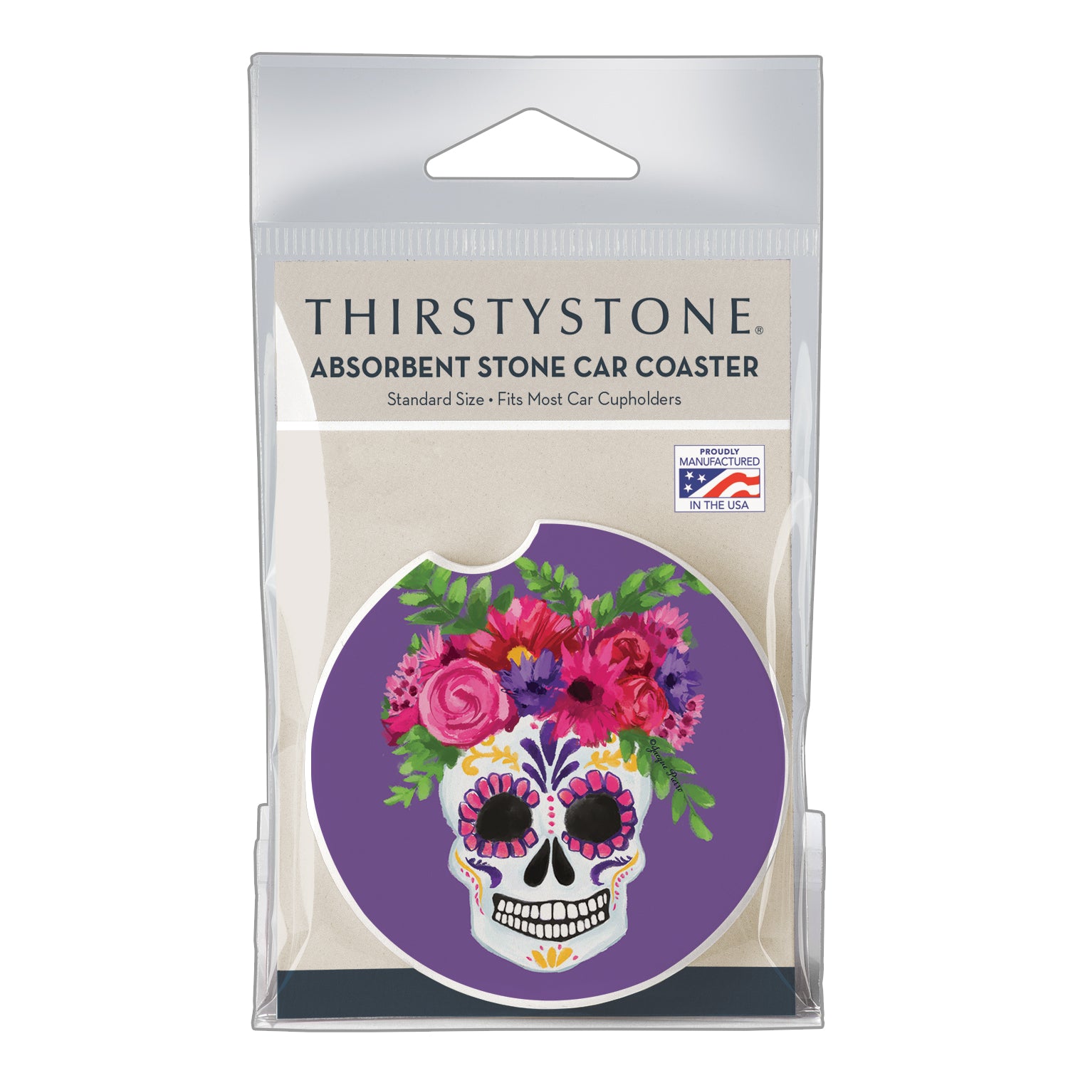 Thirstystone Skull Flowers Single Absorbent Stone Car Coaster 2.6” Diameter Manufactured in the USA