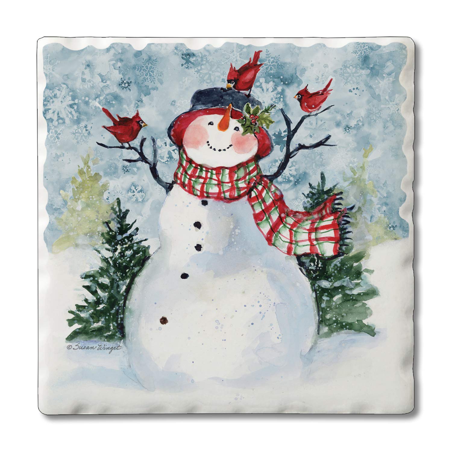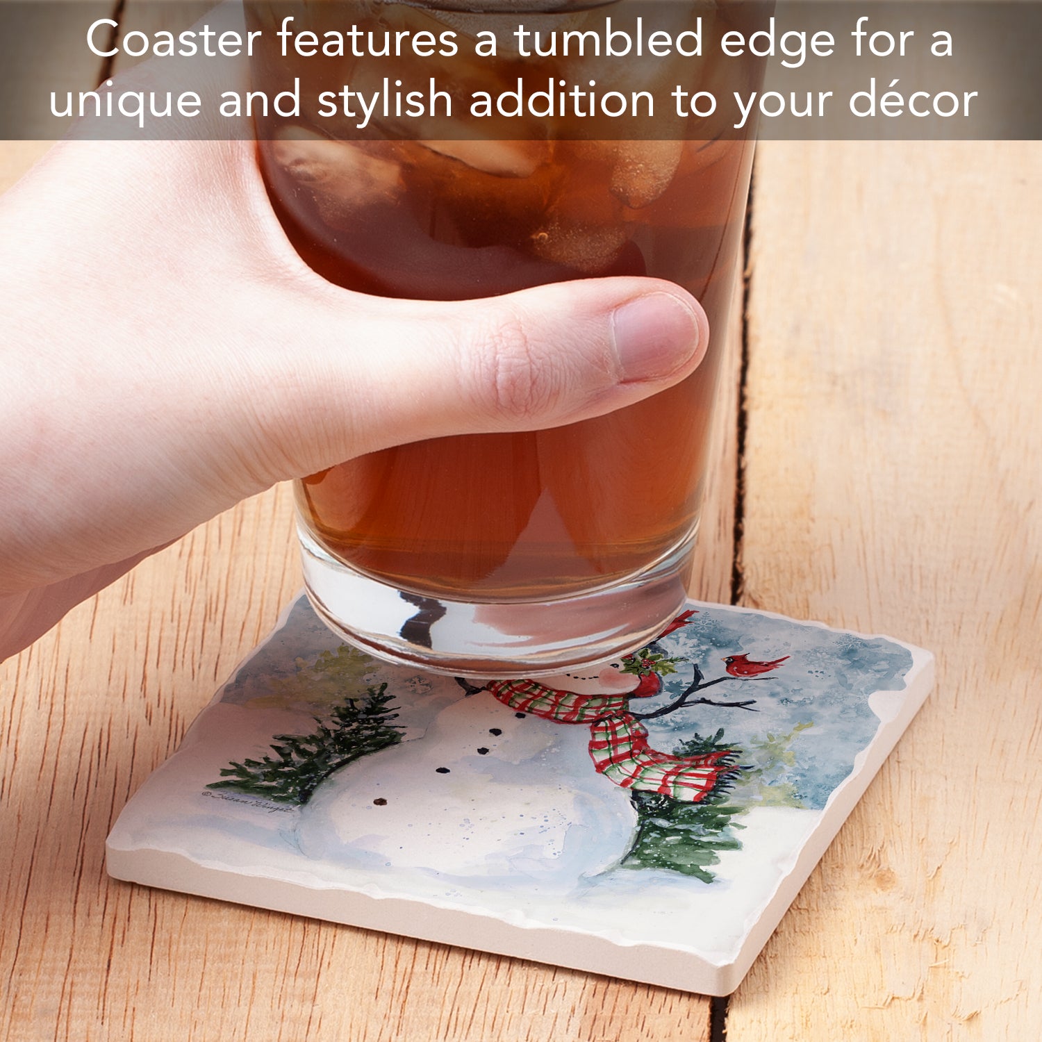 Thirstystone Snowman & Cardinals Single Tumbled Tile Coaster Manufactured in The USA Decorative, Stylish, Craft Your Own Collection