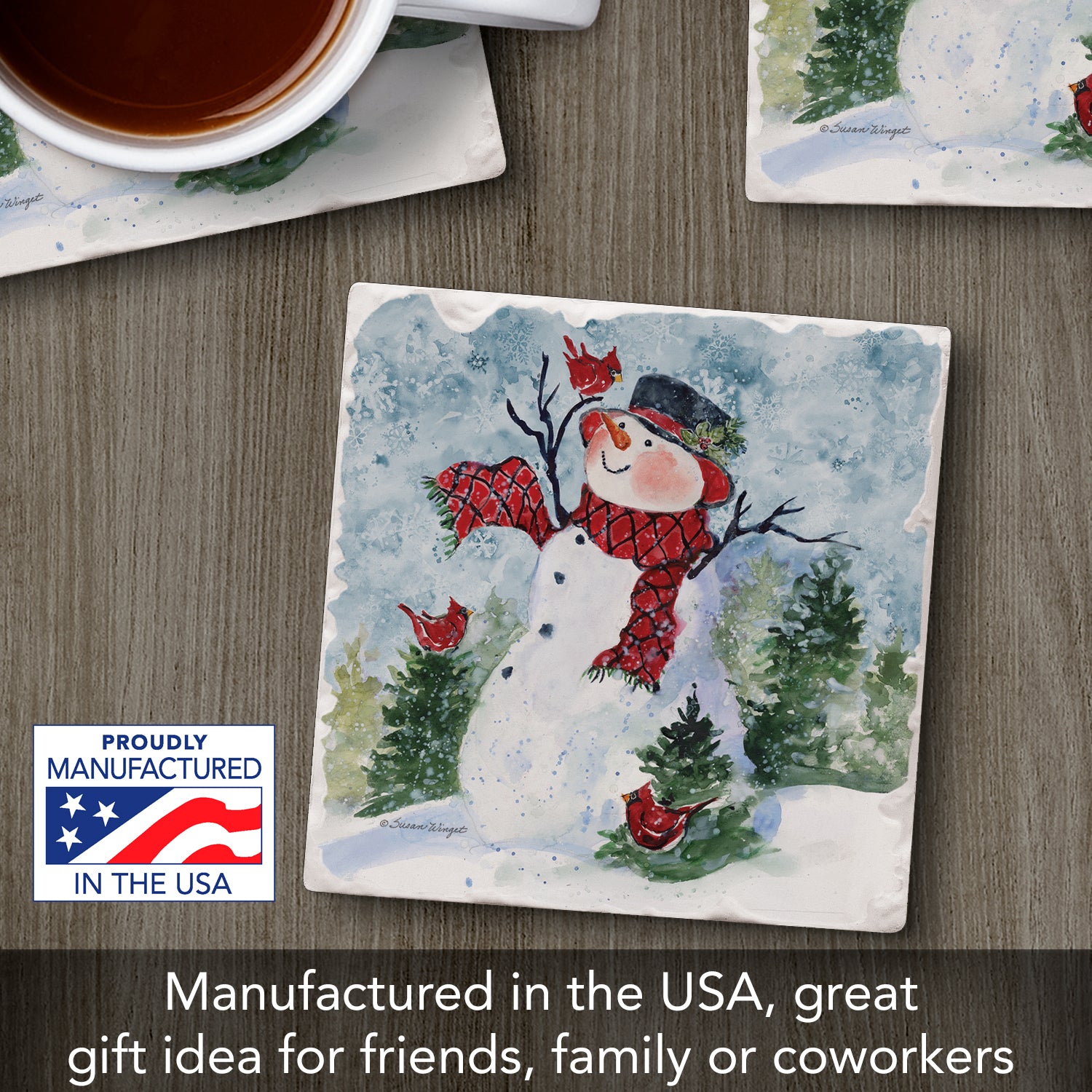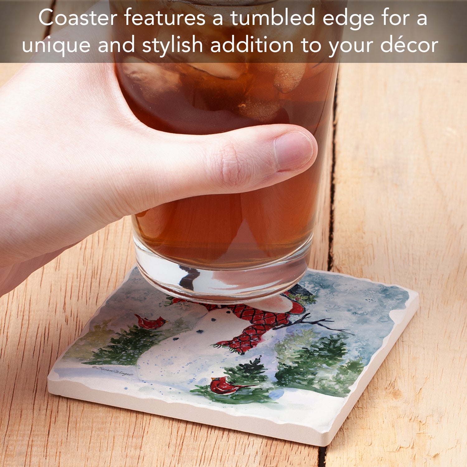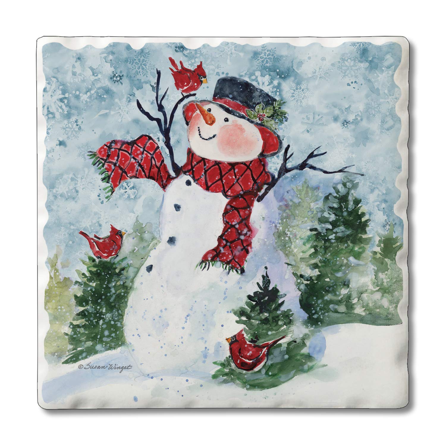 Thirstystone Snowman & Forest Friends Single Tumbled Tile Coaster Manufactured in The USA Decorative, Stylish, Craft Your Own Collection