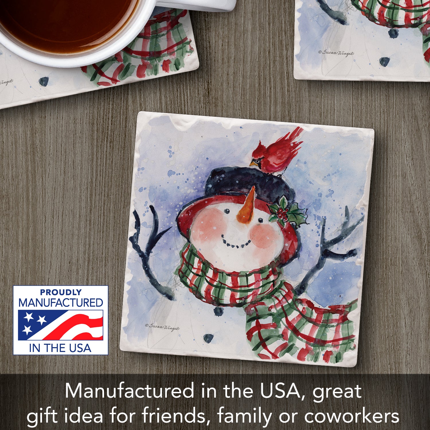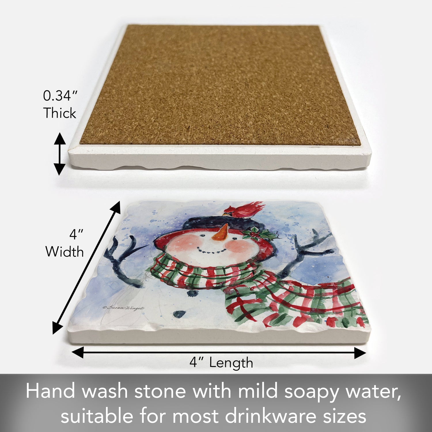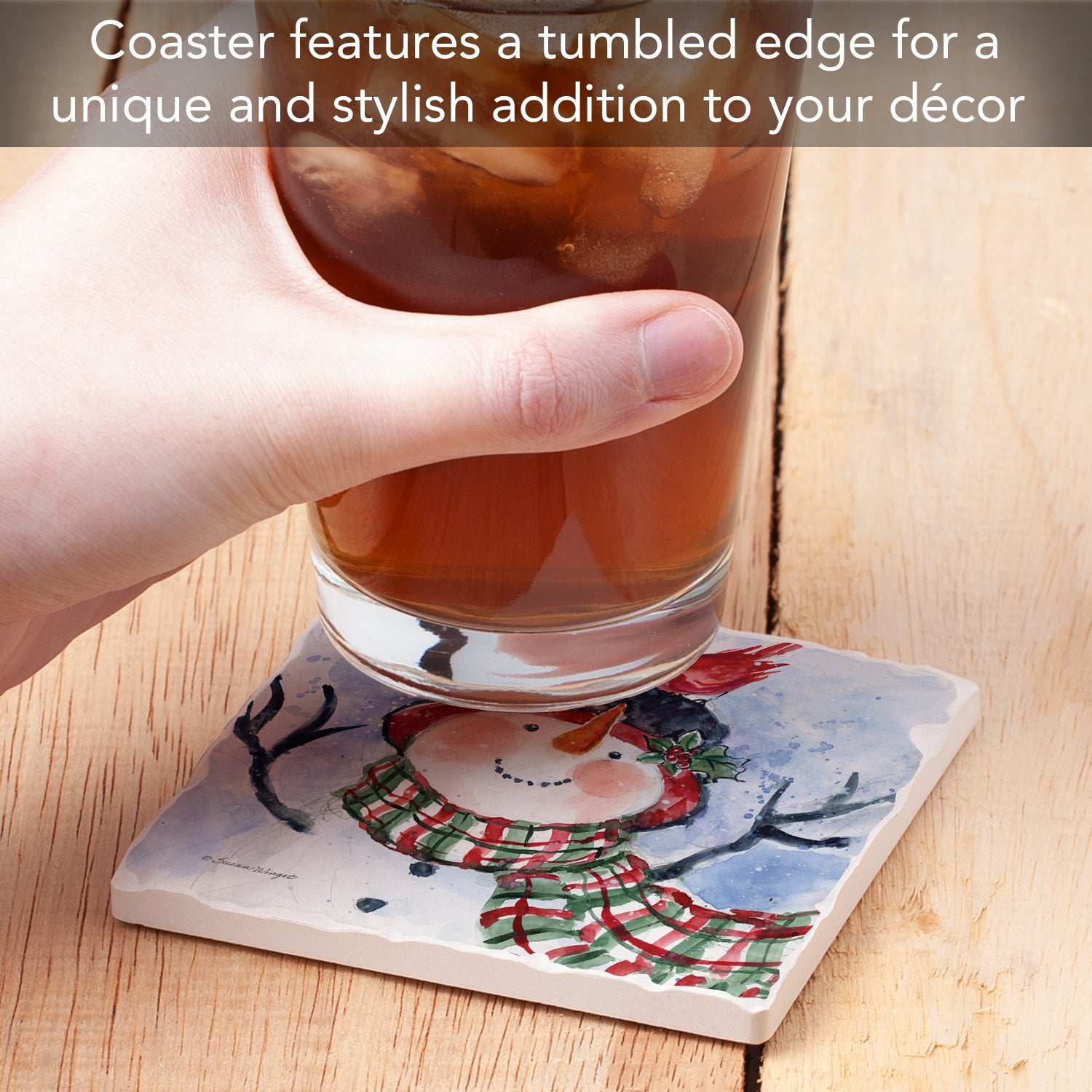 Thirstystone Snowman Green Plaid Scarf Single Tumbled Tile Coaster Manufactured in The USA Decorative, Stylish, Craft Your Own Collection