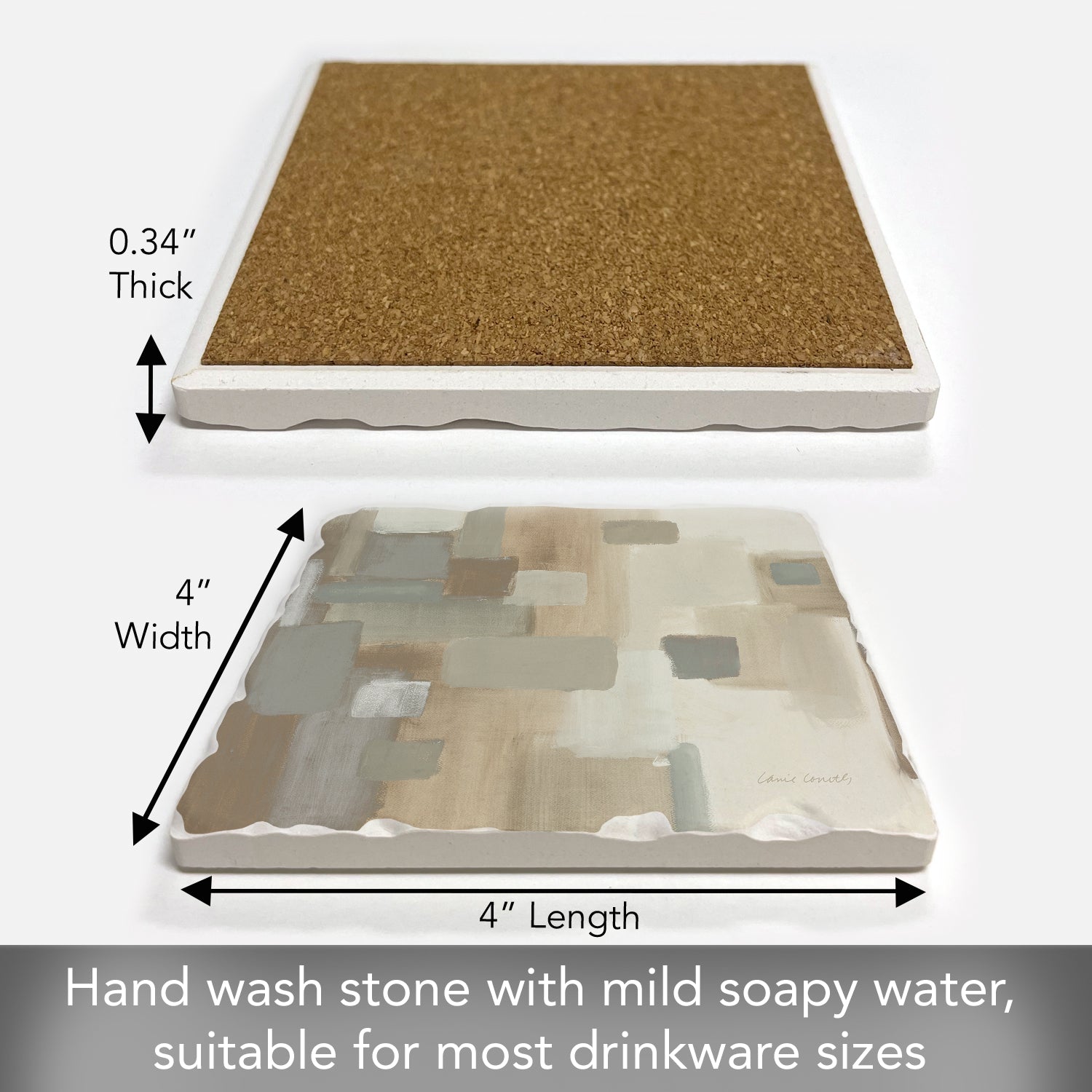 - ARTISTIC DESIGN-Beautiful artistic design allows the Coaster to remain displayed even when not in use. Each Coaster measures 4" x 4" x .25". Sized to fit larger Mugs & Glasses.
