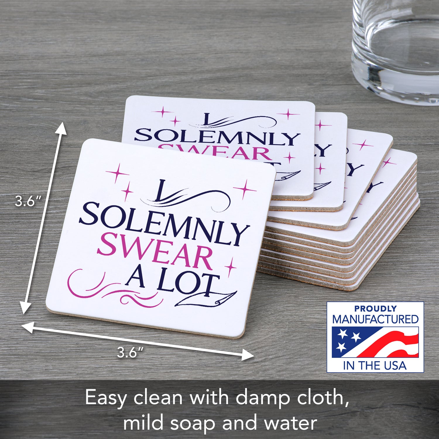 Thirstystone Solemnly Swear 12-Pack Cork Back Paper Bar Coasters Made in The USA Humourous Quotes Attractive Designs