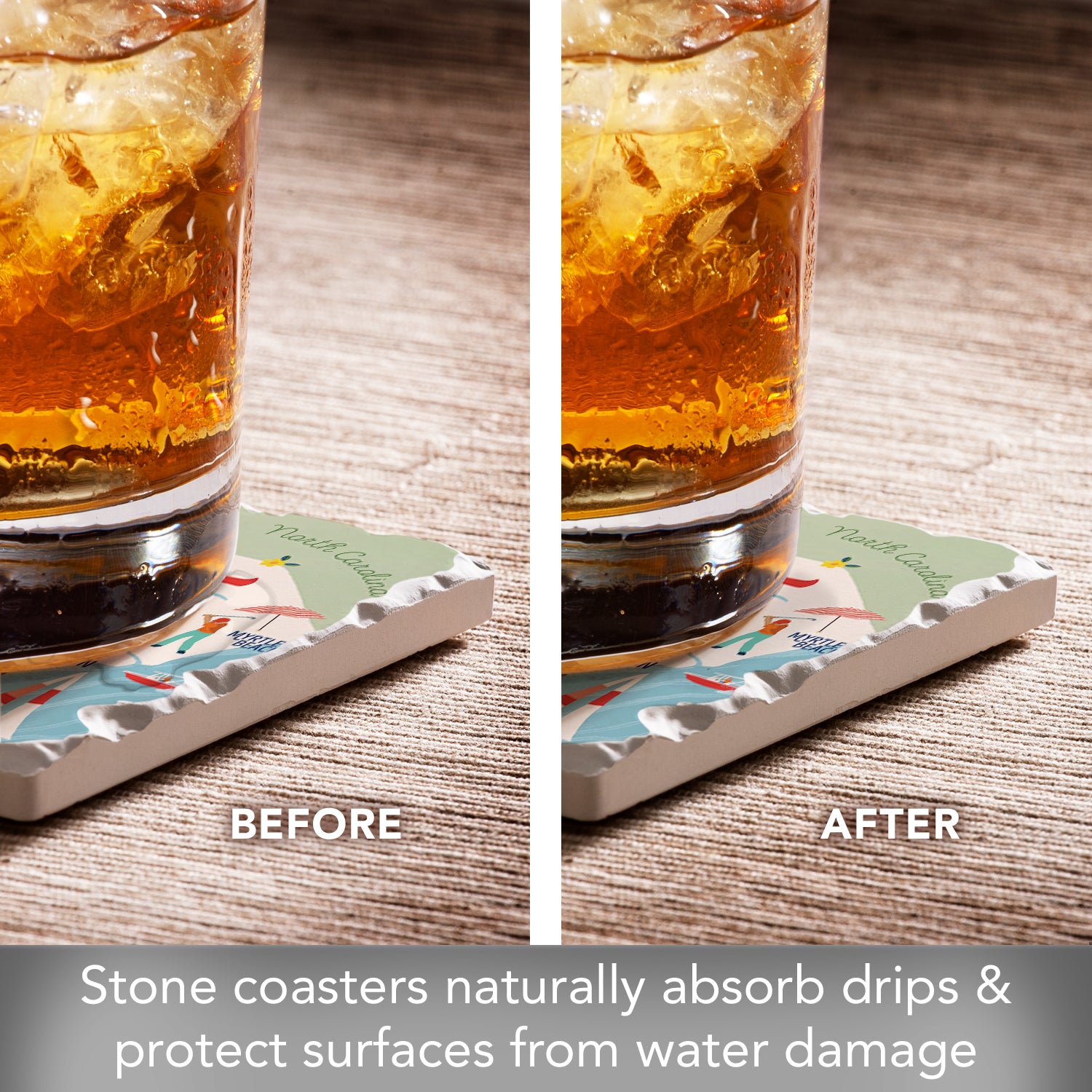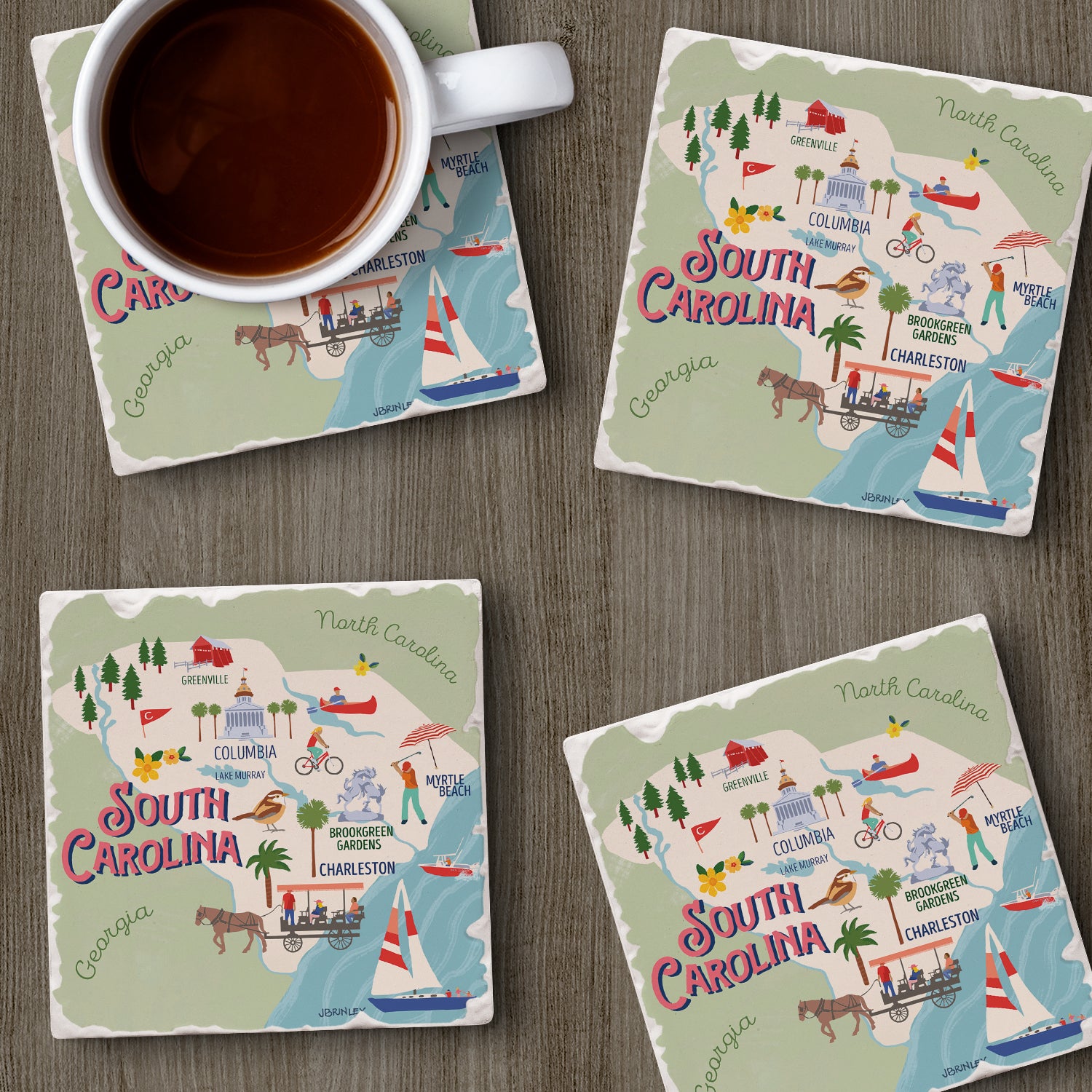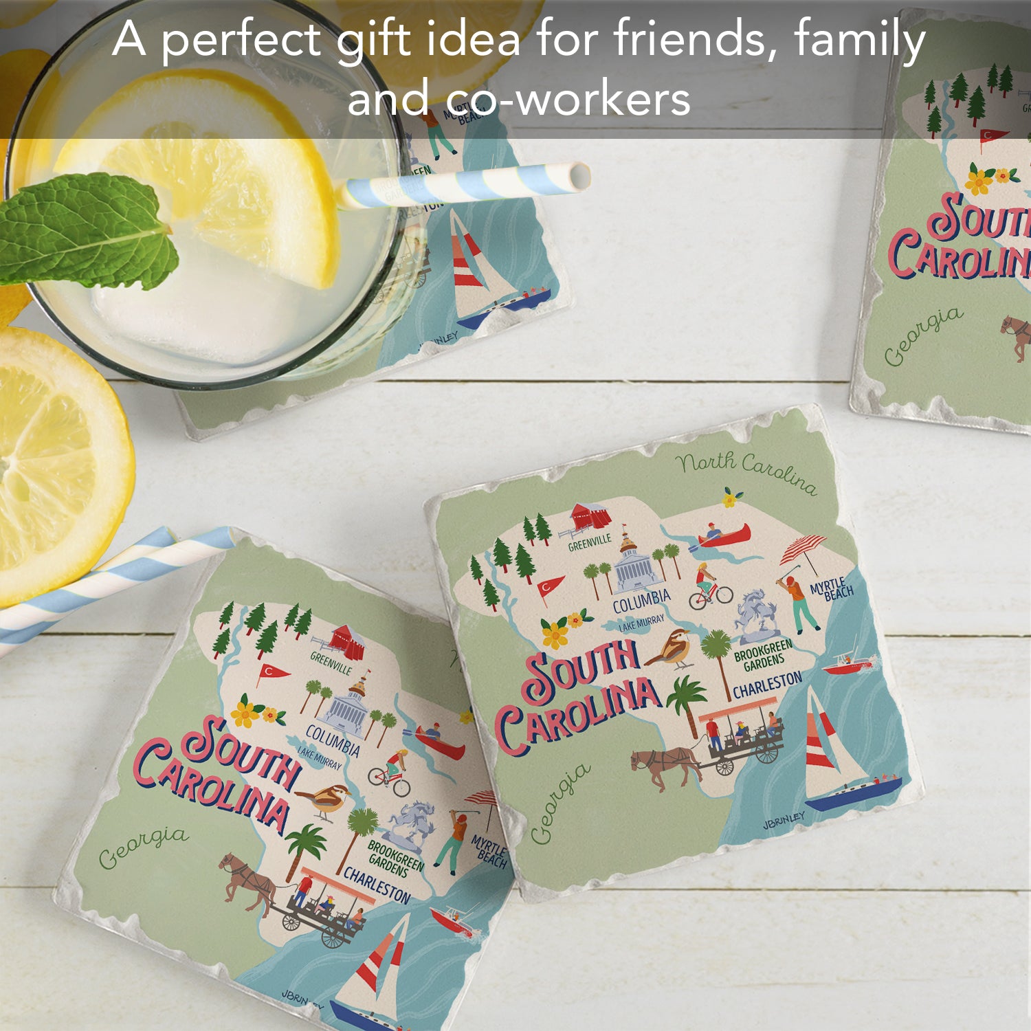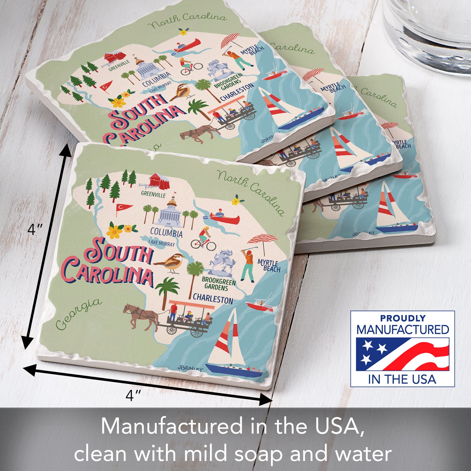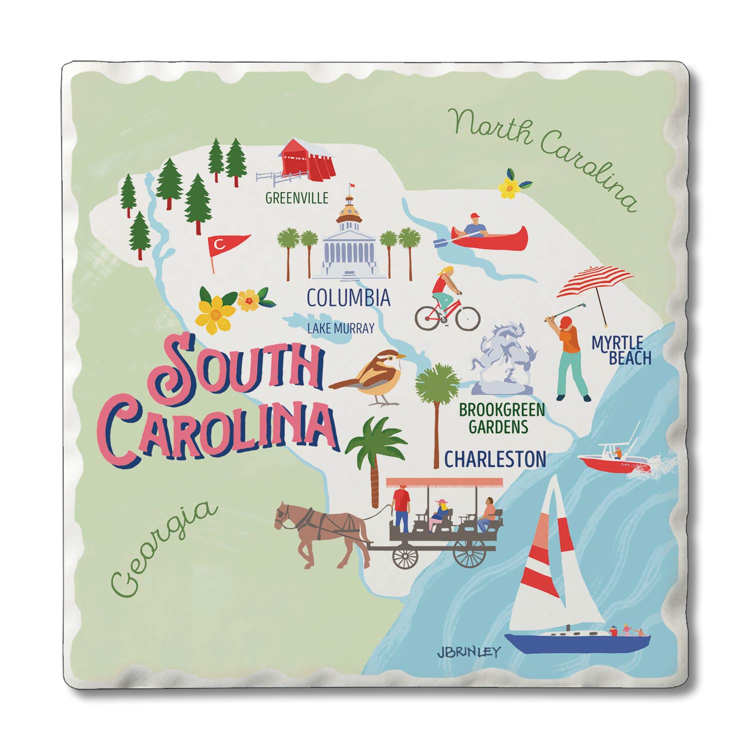 Thirstystone South Carolina Attractions 4 Pack Tumbled Tile Stone Coasters 4" Square Manufactured in the USA