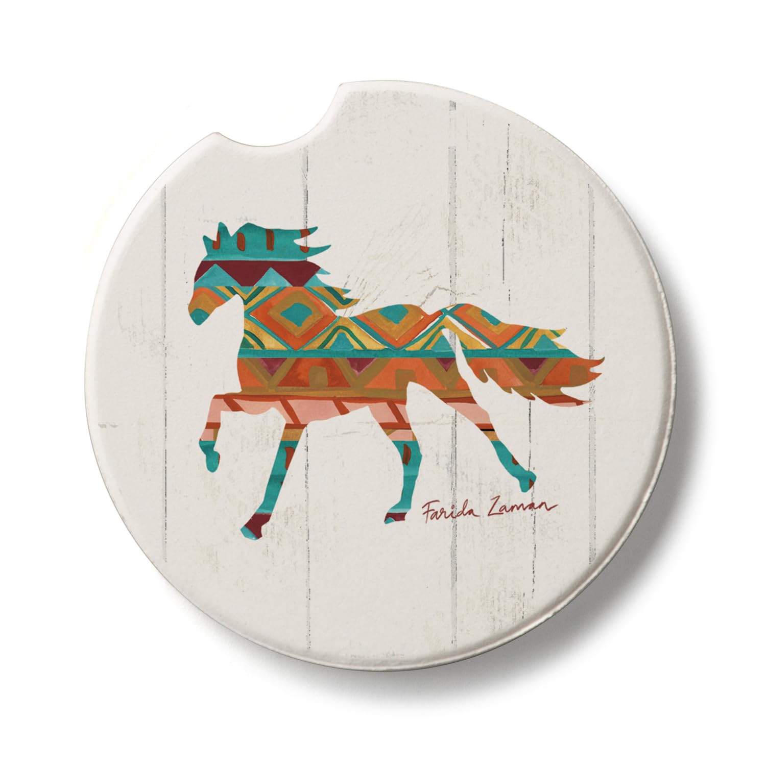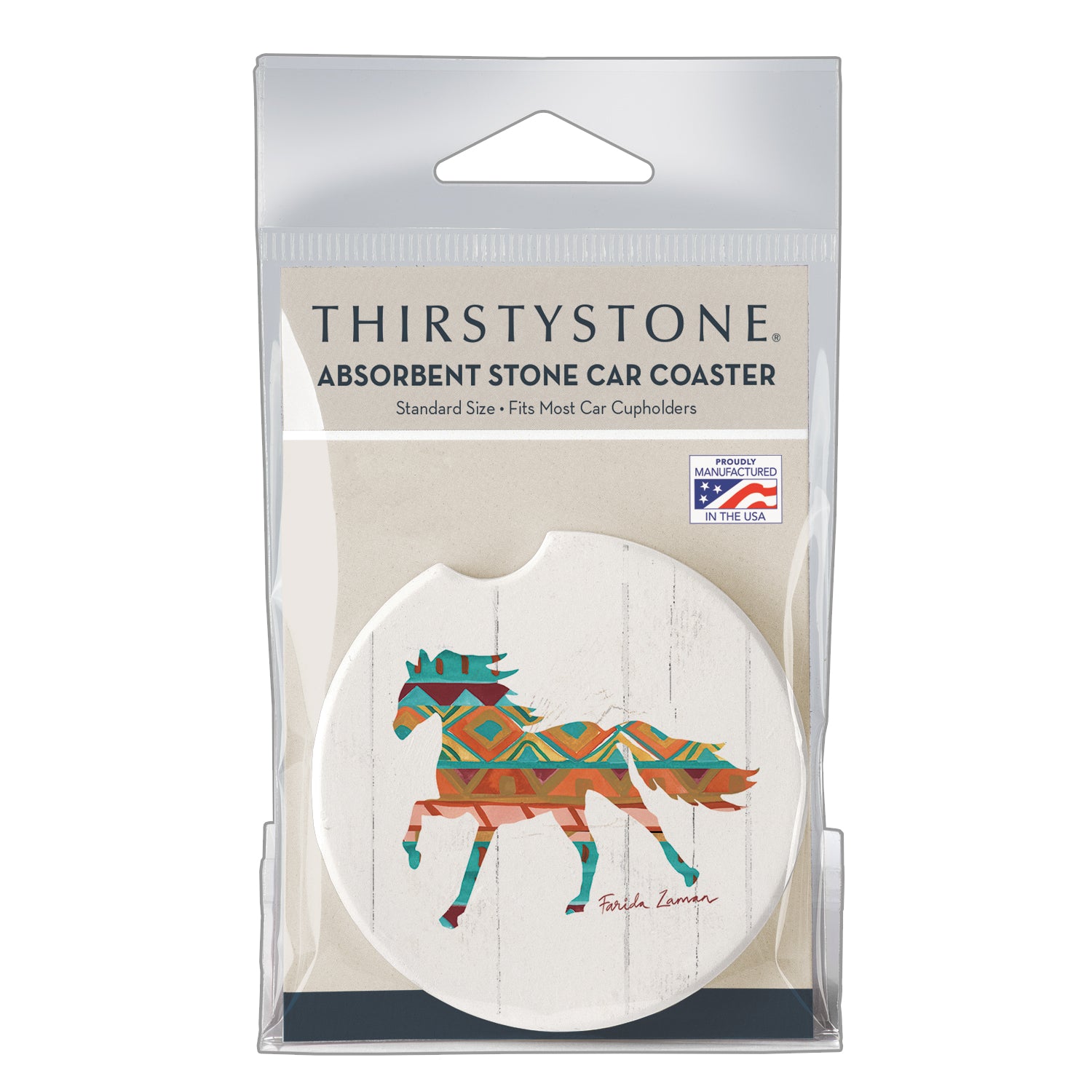 Thirstystone Southwest Horse Single Absorbent Stone Coaster for Vehicle Cup Holder 2.6” Diameter Manufactured in The USA