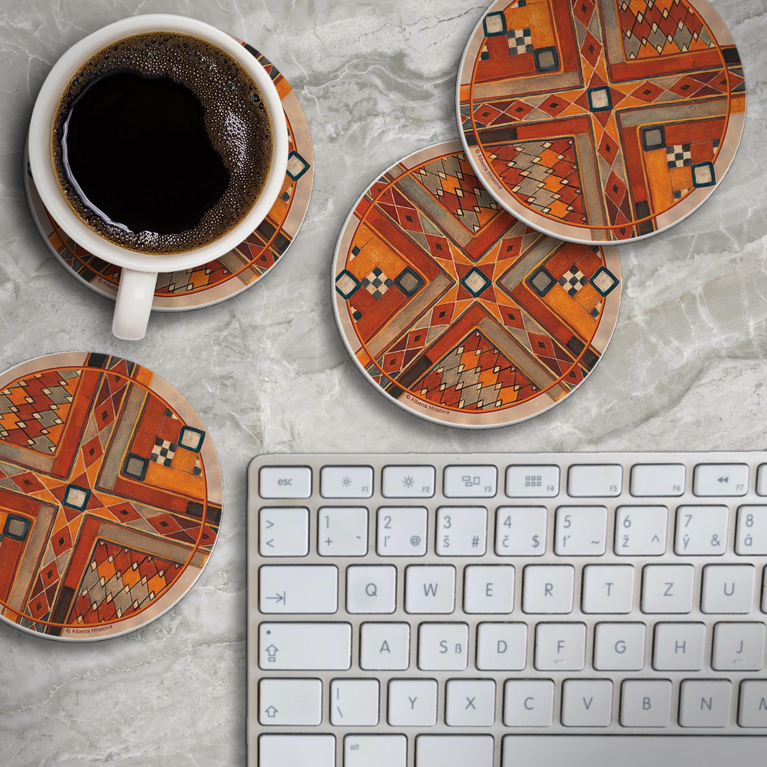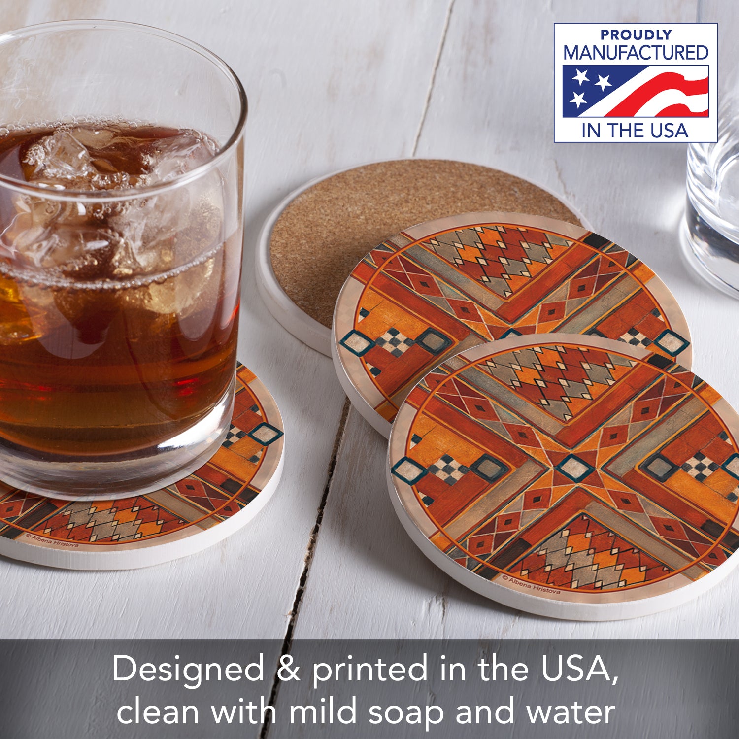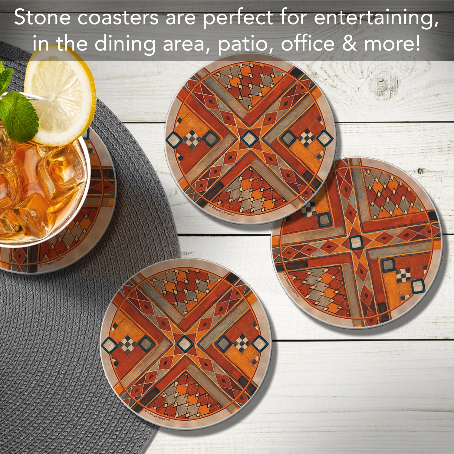Thirstystone Southwest Pattern III 4 Pack Round Absorbent Stone Coasters 4" Diameter Manufactured in the USA