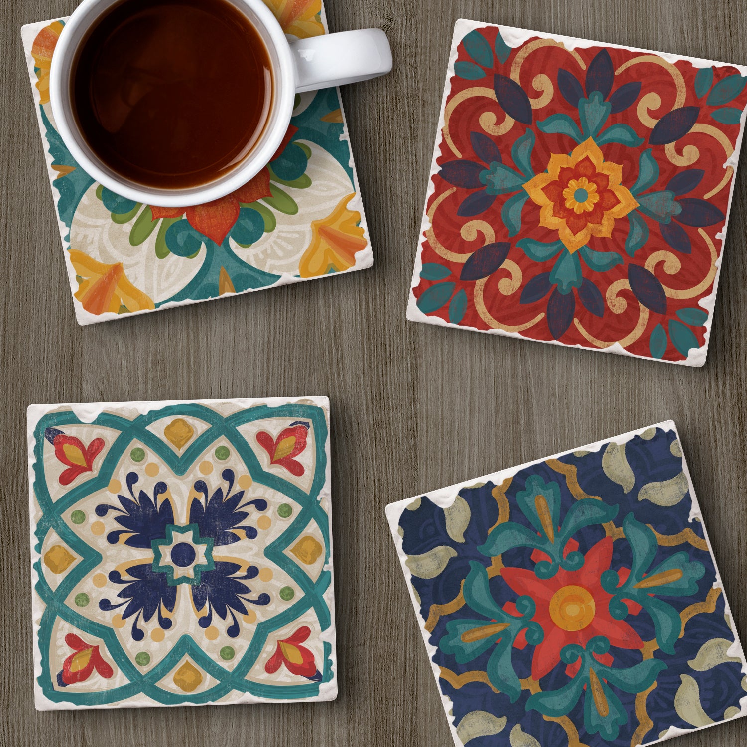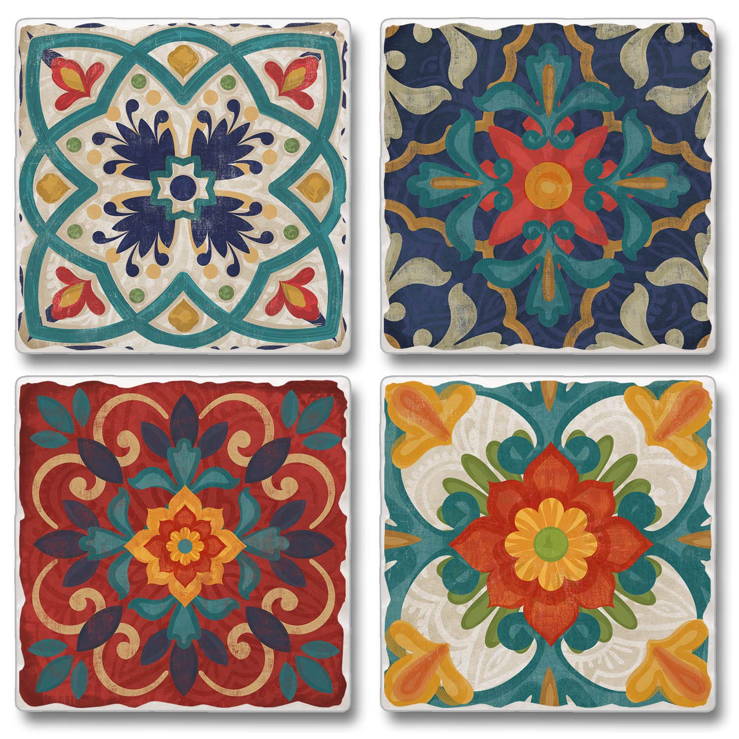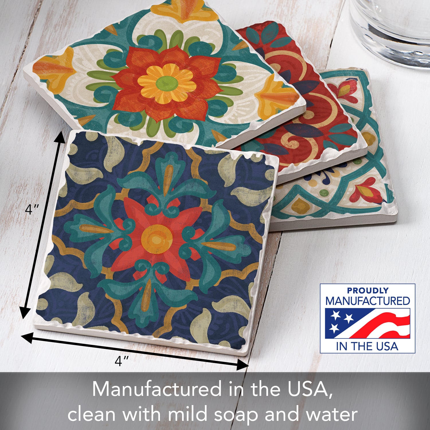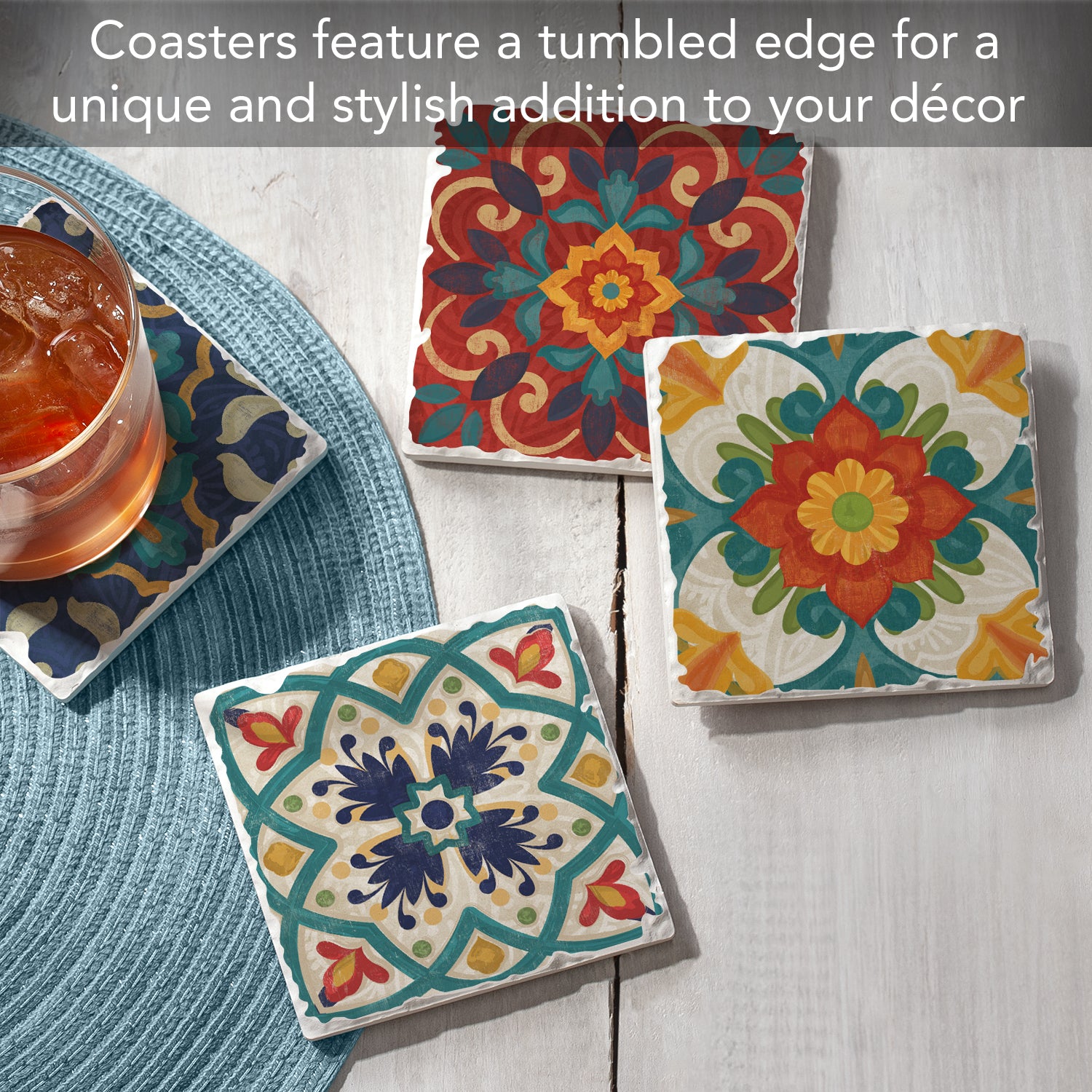 Thirstystone Spanish Villa 4-Pack Tumbled Tile Stone Coasters 4" Square