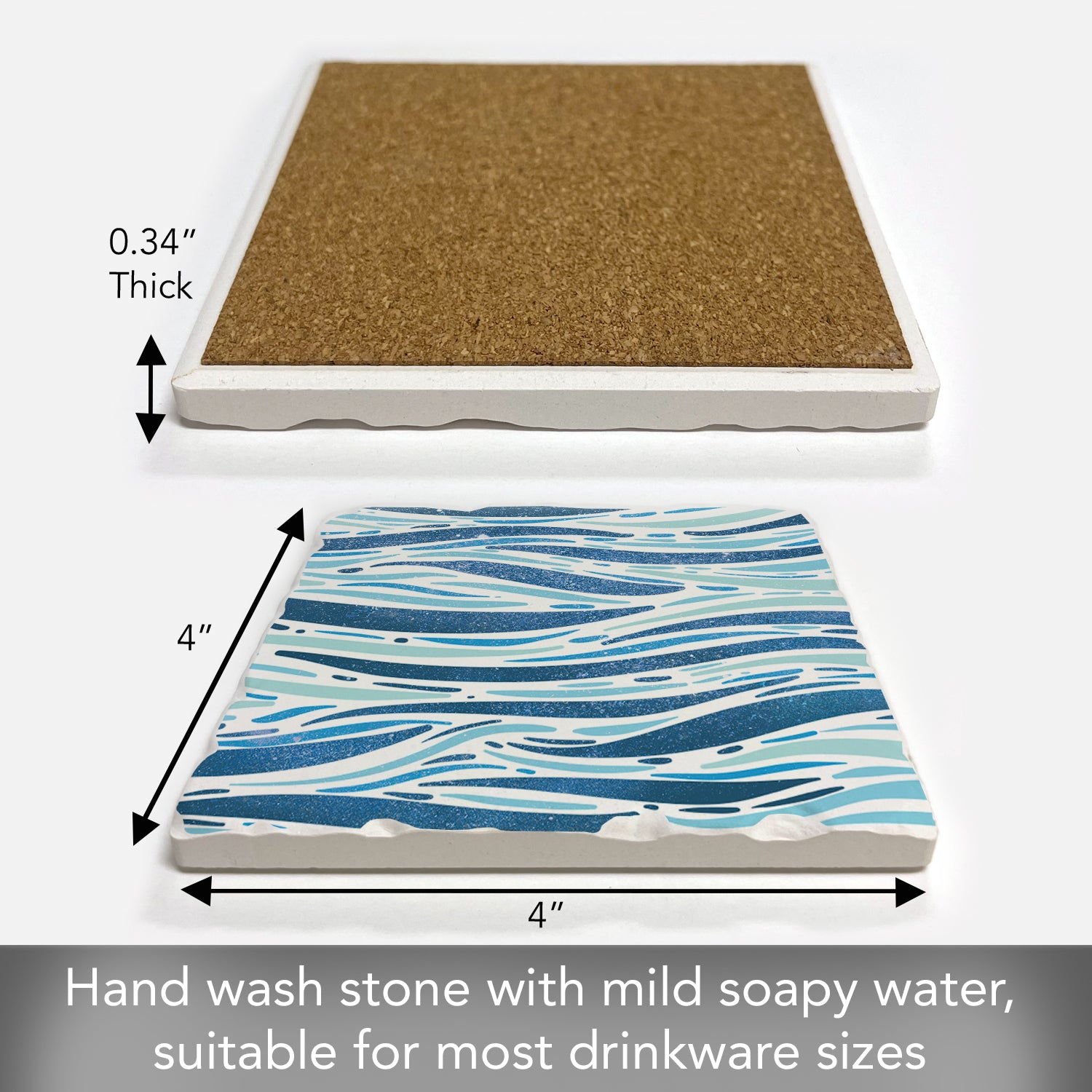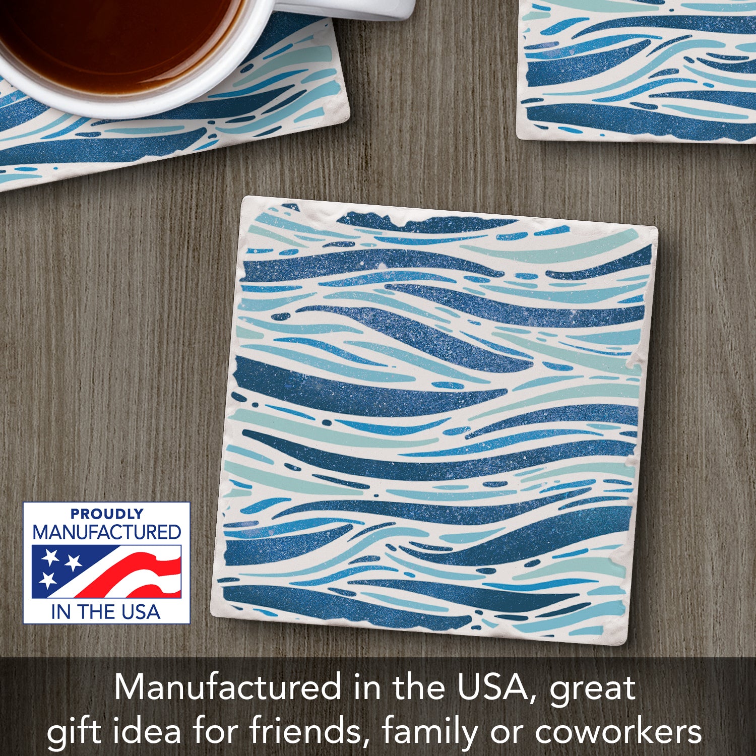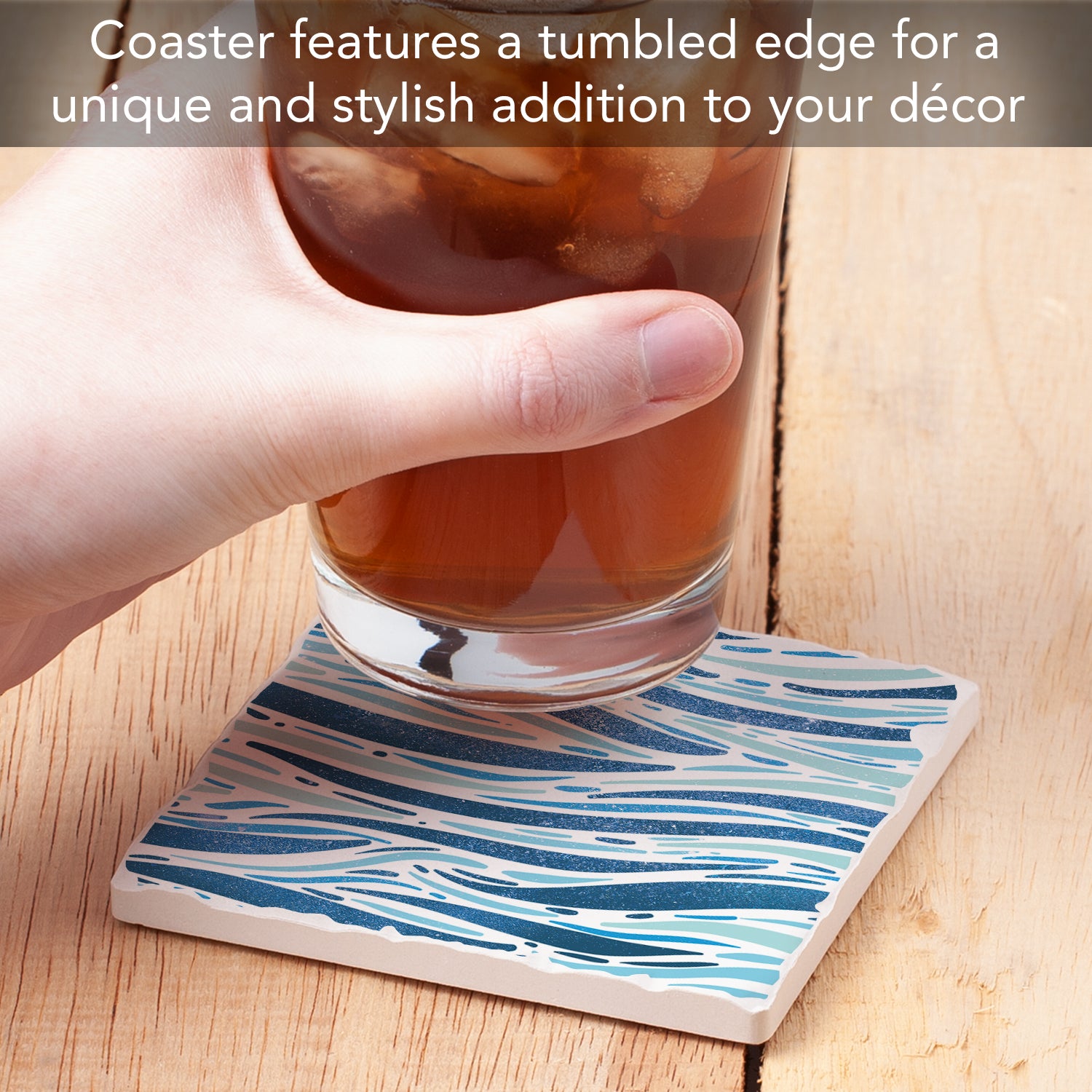 Thirstystone Sparkling Waves Single Tumbled Tile Stone Coaster with Protective Cork Backing Manufactured in The USA 4" Square, Colorful, Artistic, Easily Wipes Clean