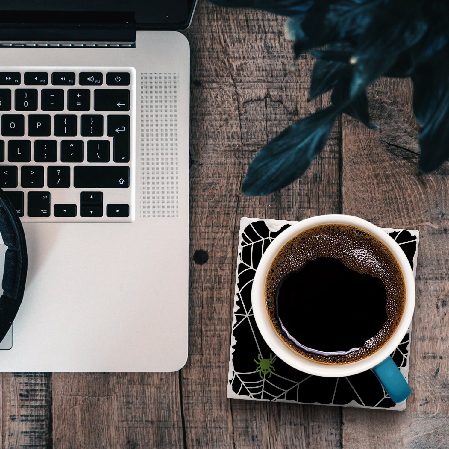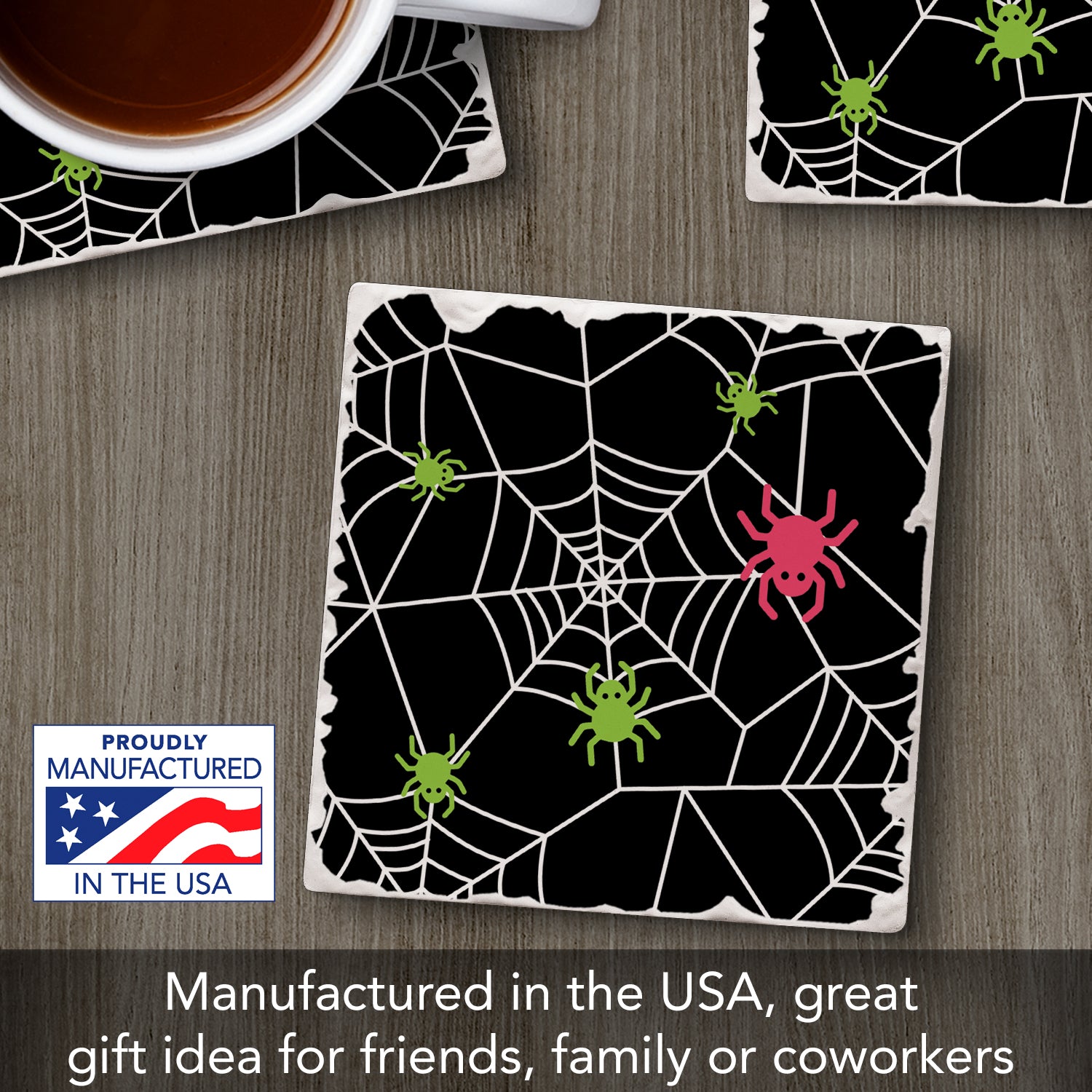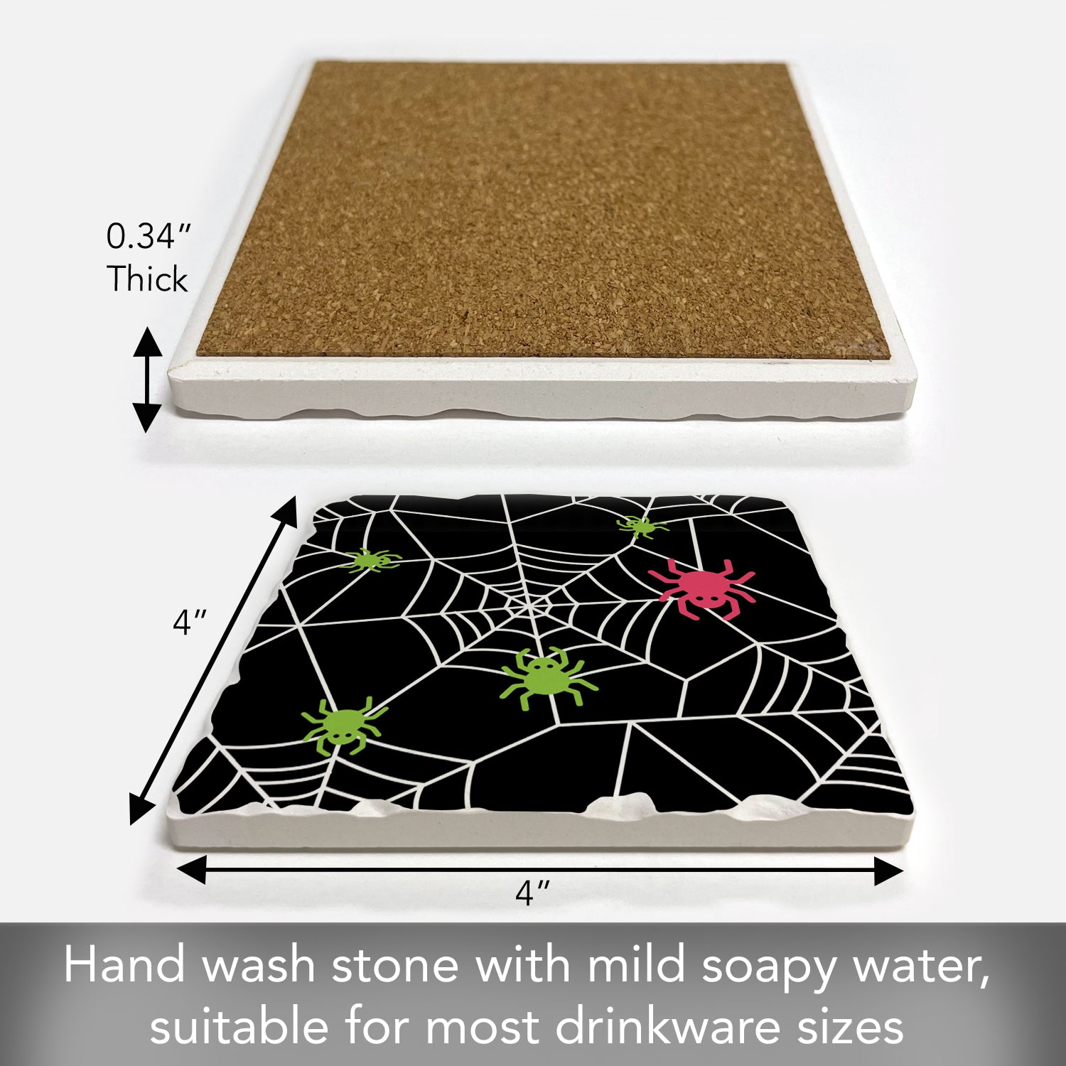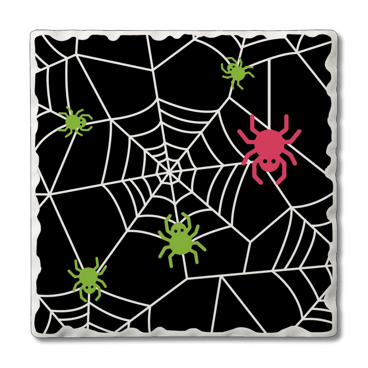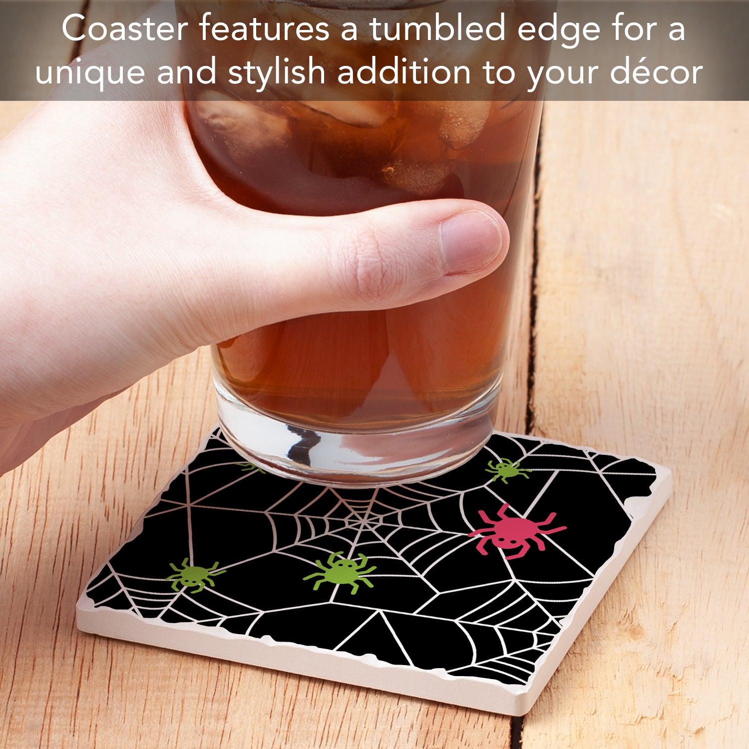 Thirstystone Spider Web Single Tumbled Tile Stone Coaster with Protective Cork Backing Manufactured in The USA 4" Square, Colorful, Artistic, Easily Wipes Clean