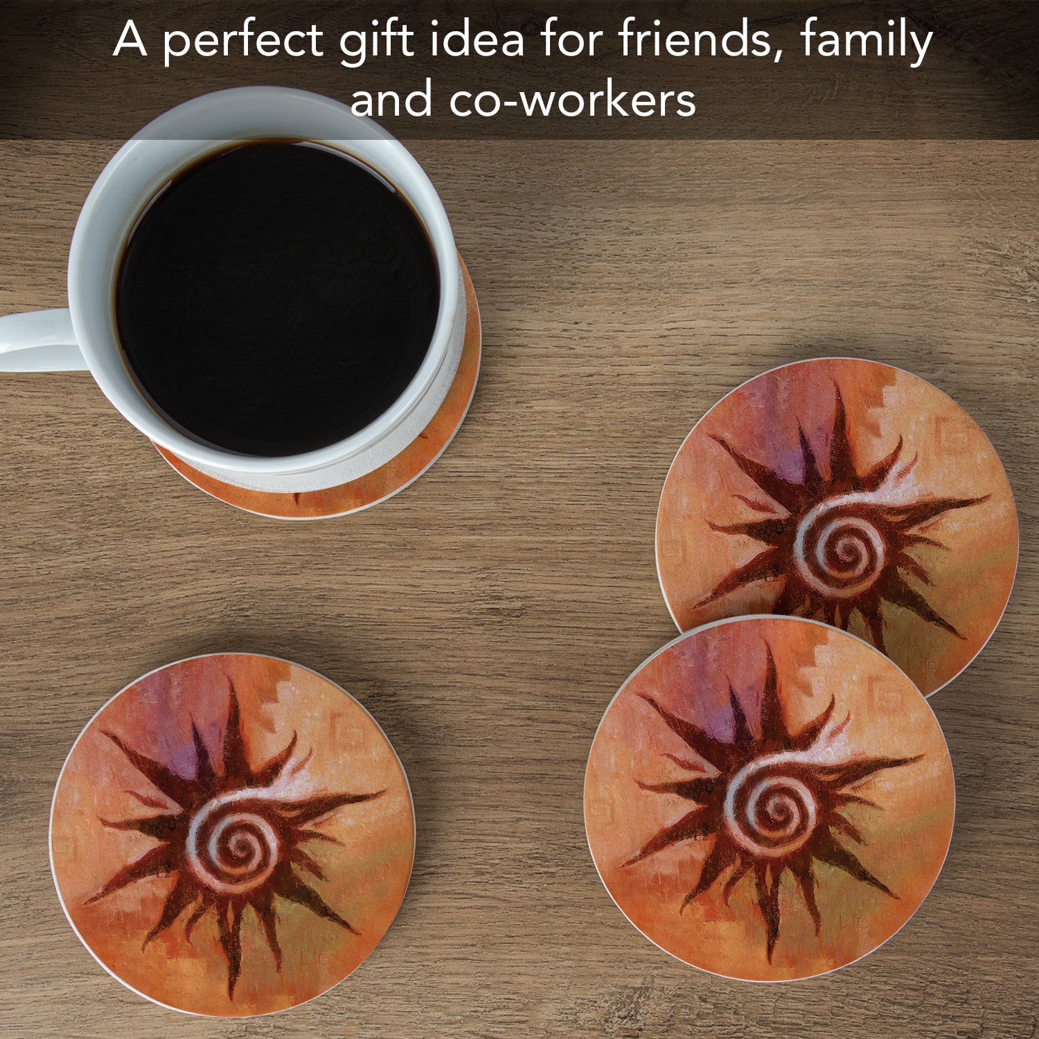 Thirstystone Spiral Sun 4 Pack Natural Sandstone Coaster 4" Round