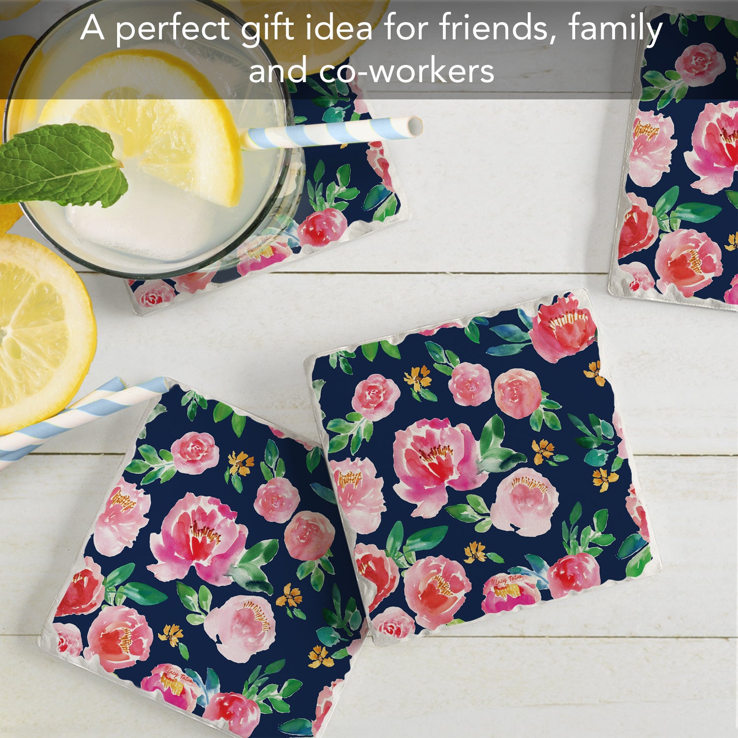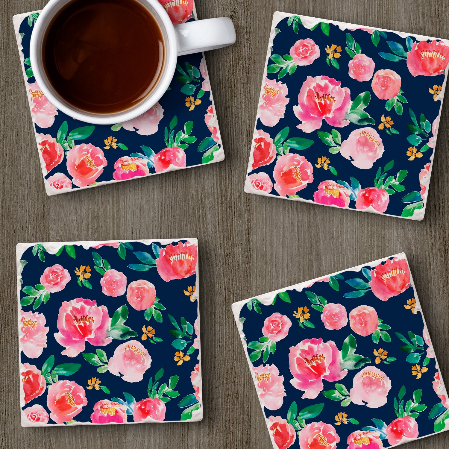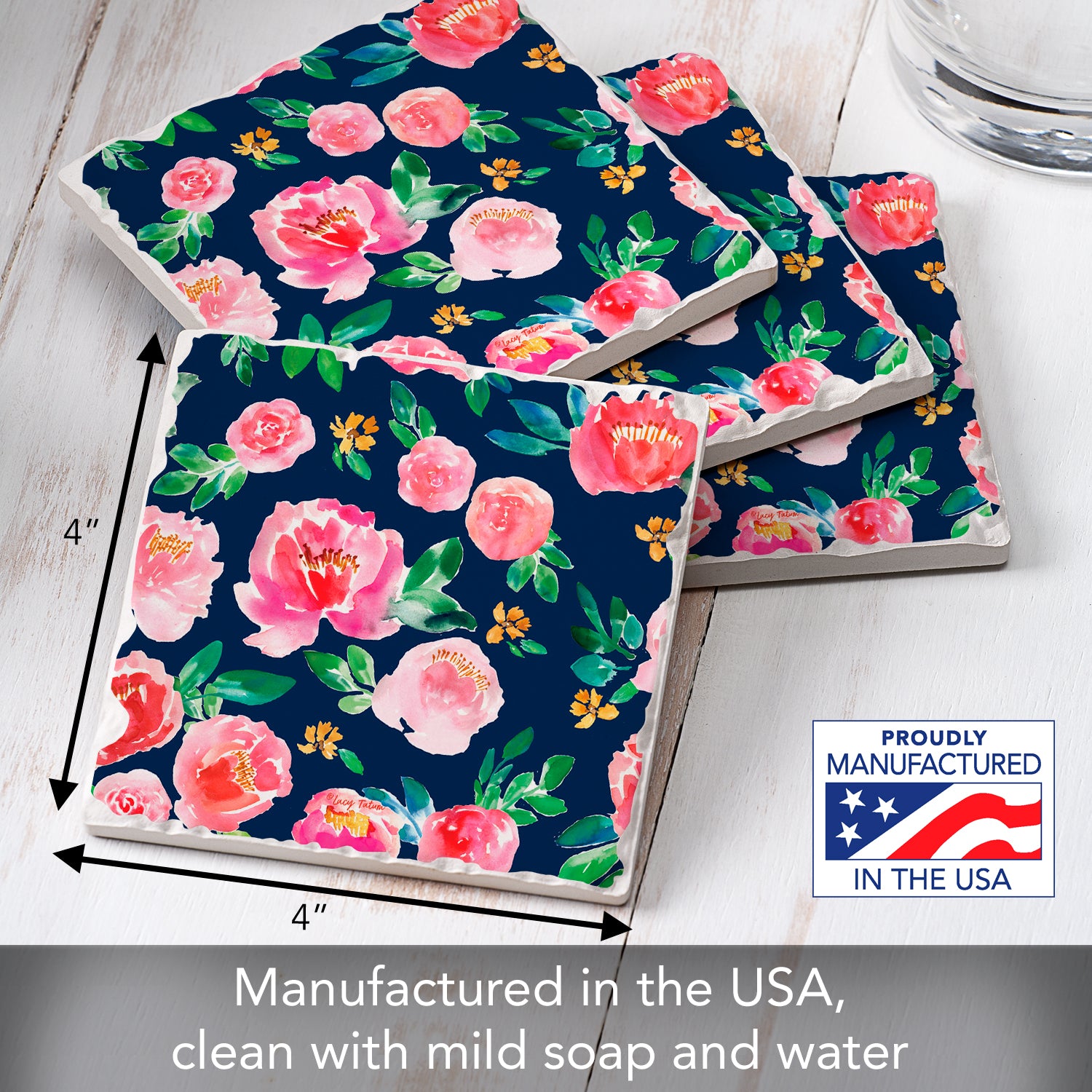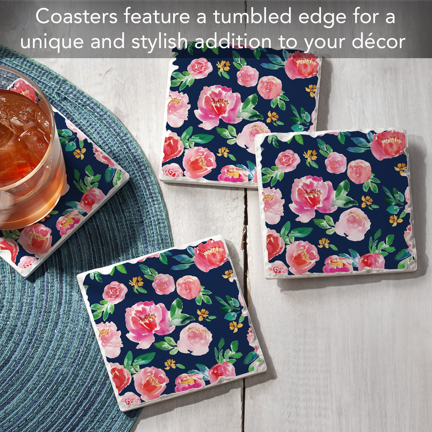 Thirstystone Spring Garden Floral 4 Pack Tumbled Tile Stone Coasters 4" Square Manufactured in the USA
