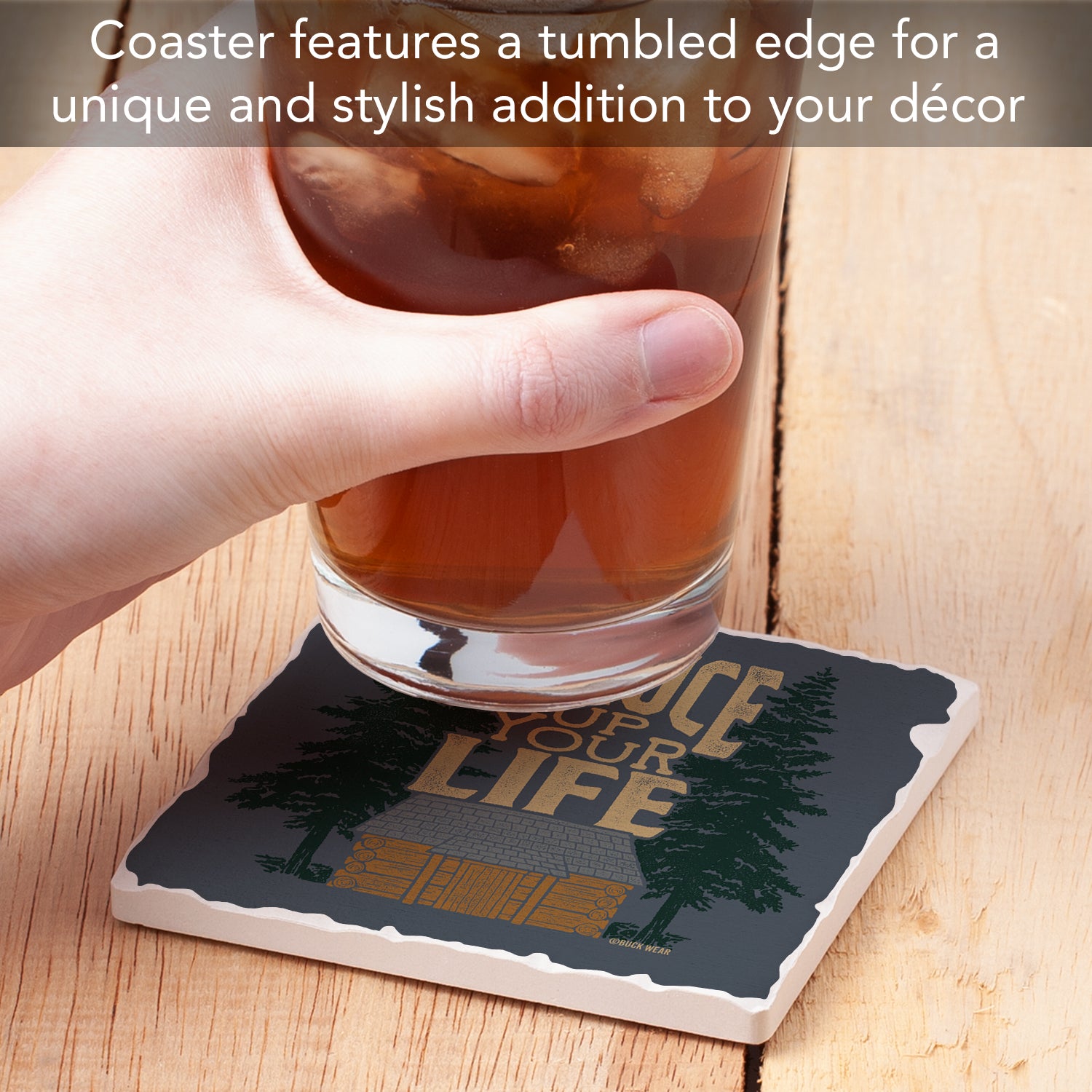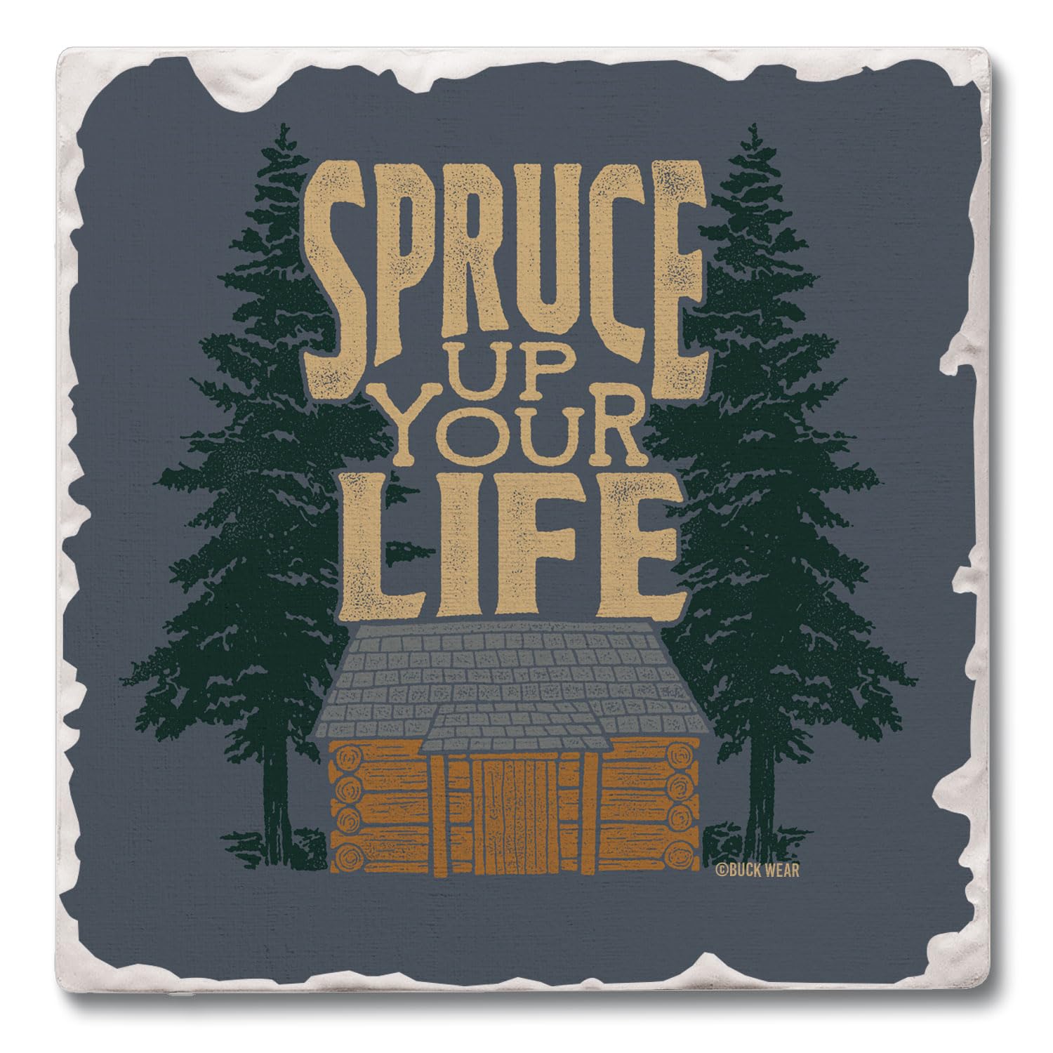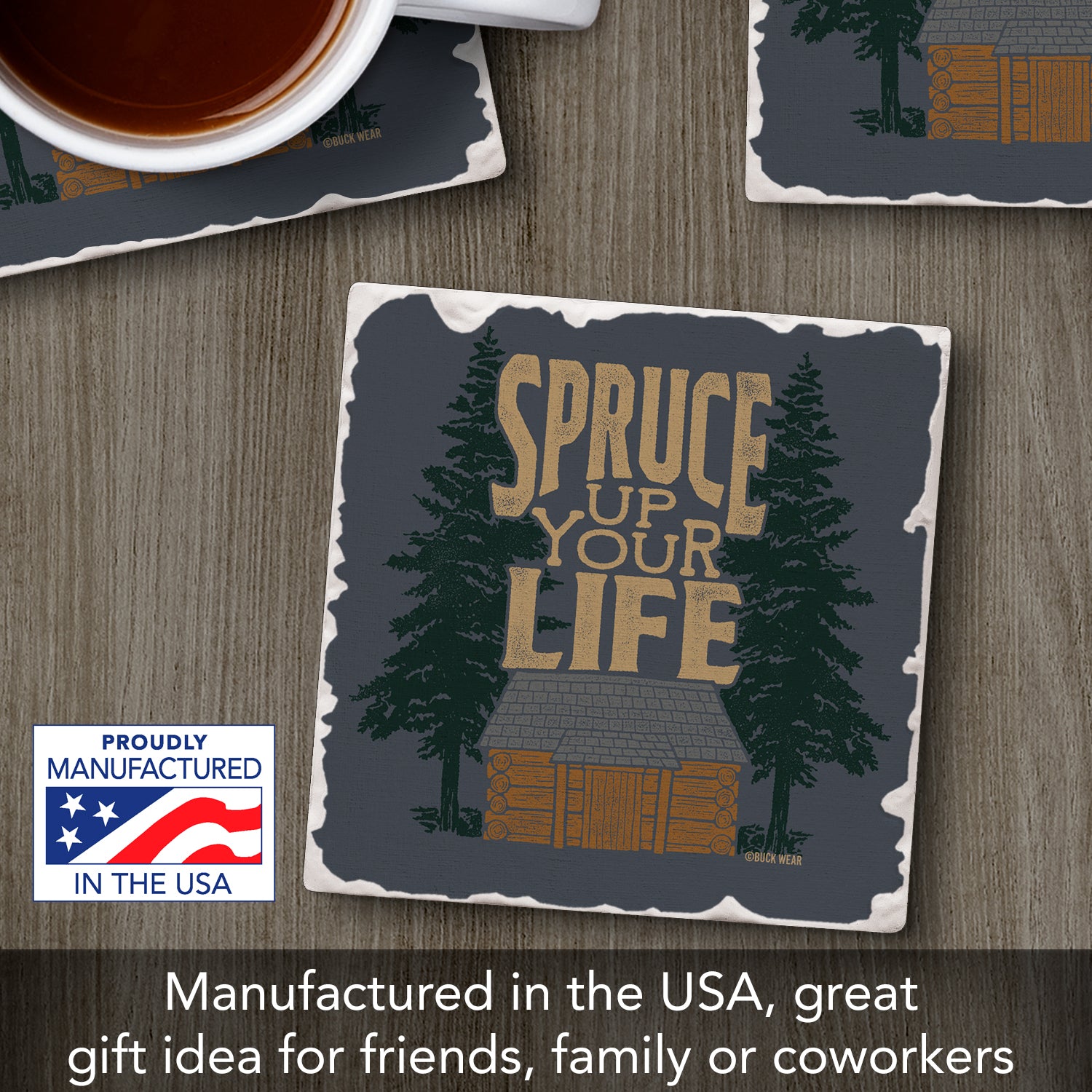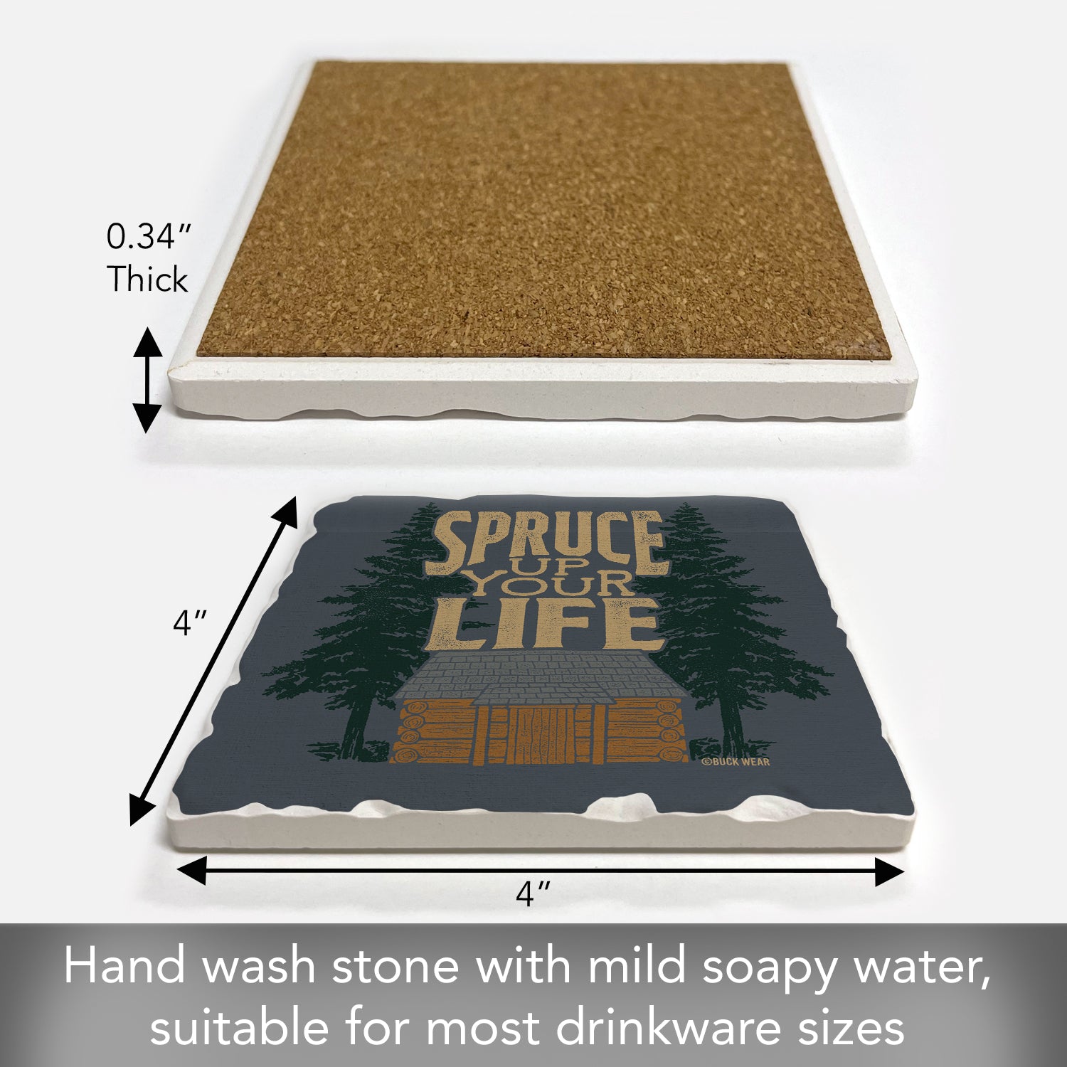 Thirstystone Spruce Up Your Life Single Tumbled Tile Stone Coaster with Protective Cork Backing Manufactured in The USA 4" Square