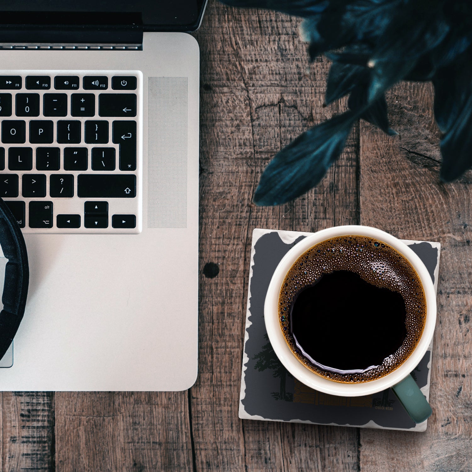 FUNCTIONAL ART-Beautiful artistic design allows the Coaster to remain displayed even when not in use. Each Coaster measures 4” x 4” x .25”. Sized to fit larger Mugs & Glasses.