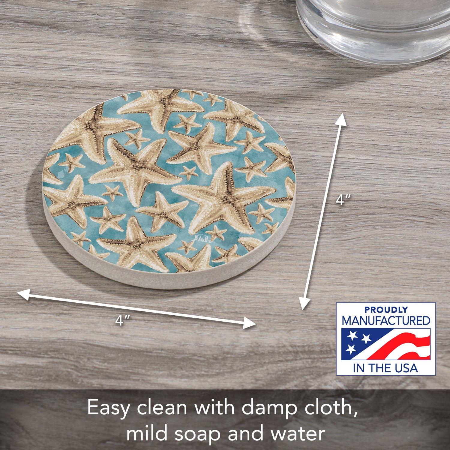 Starfish Galore Single Natural Sandstone Coaster 4" Round Create Your Own Set