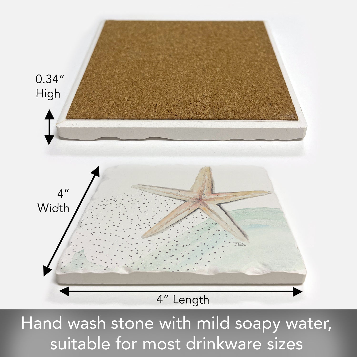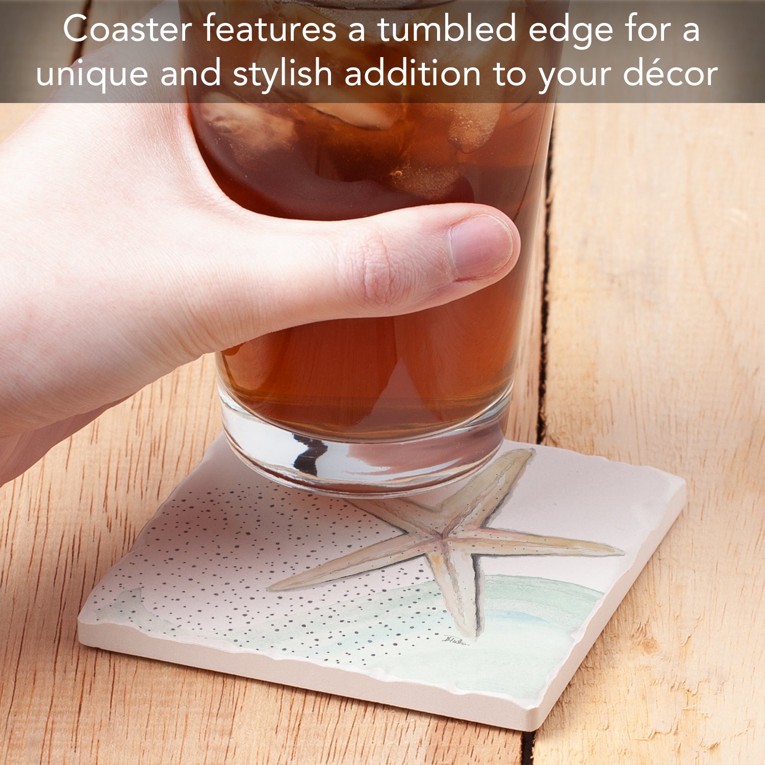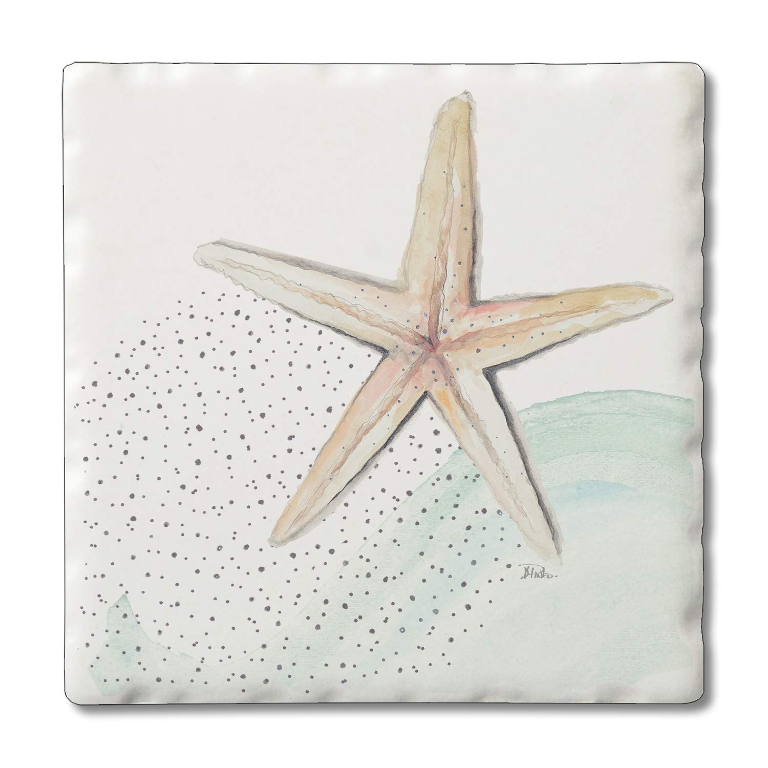 Thirstystone Starfish Single Tumbled Tile Stone Coaster with Protective Cork Backing Manufactured in The USA 4" Square, Colorful, Artistic, Easily Wipes Clean