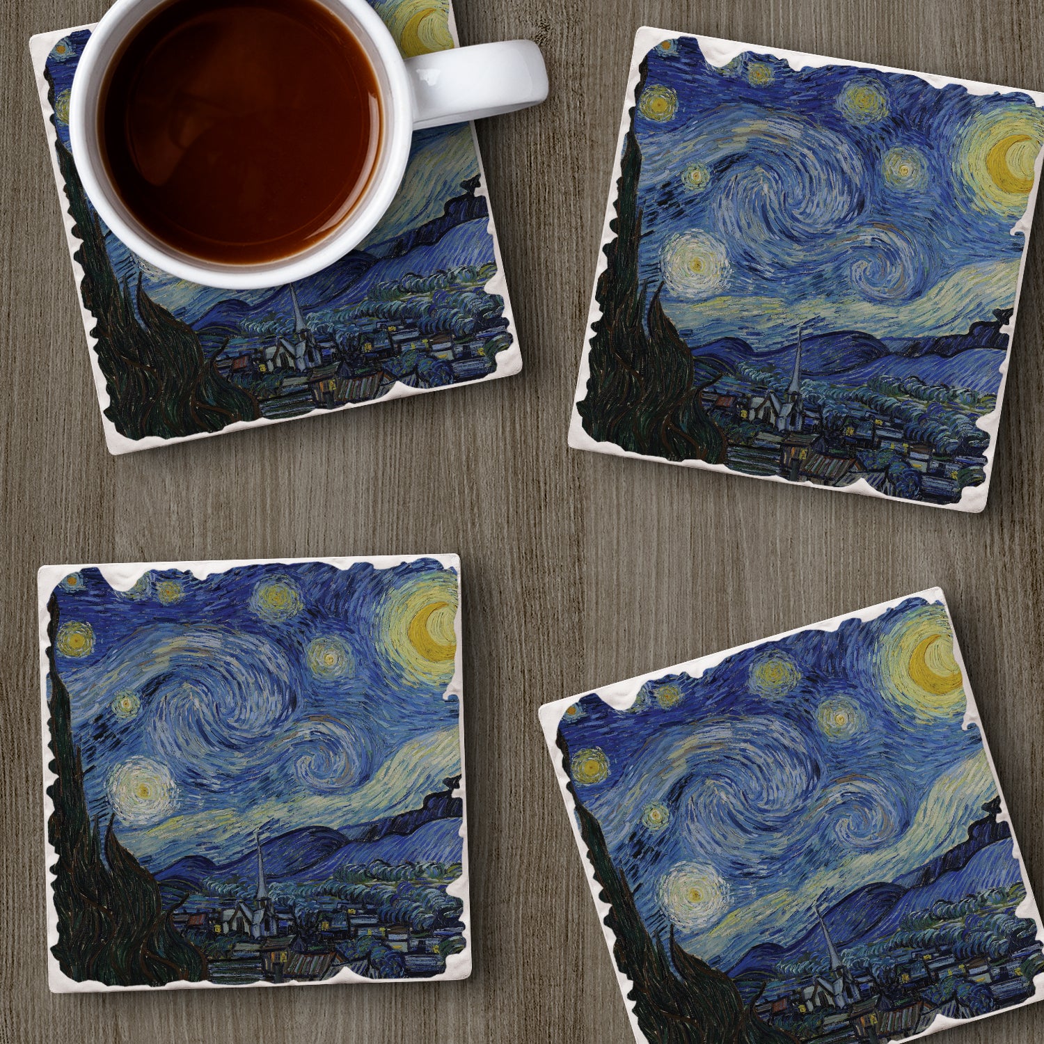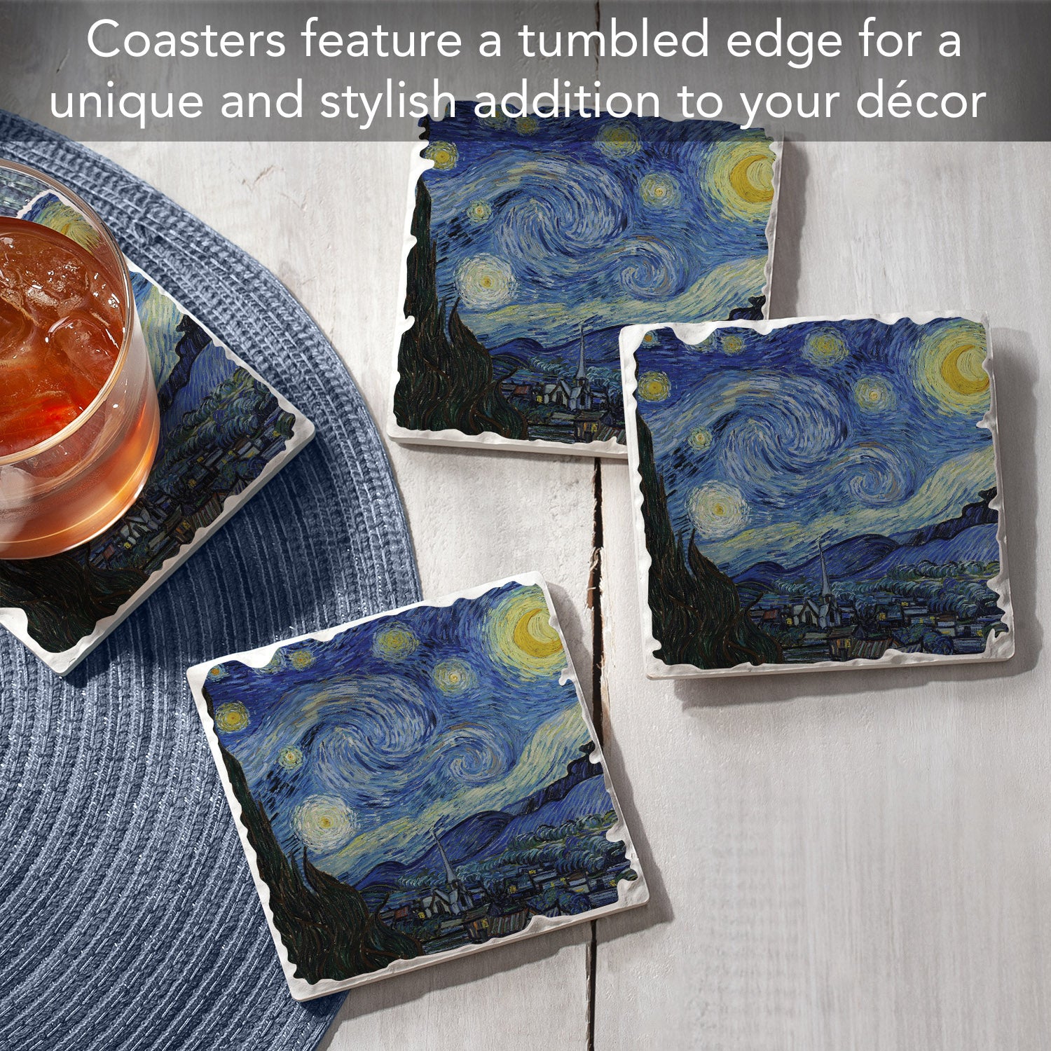 Thirstystone Starry Night 4 Pack Tumbled Tile Stone Coasters 4" Square Manufactured in the USA