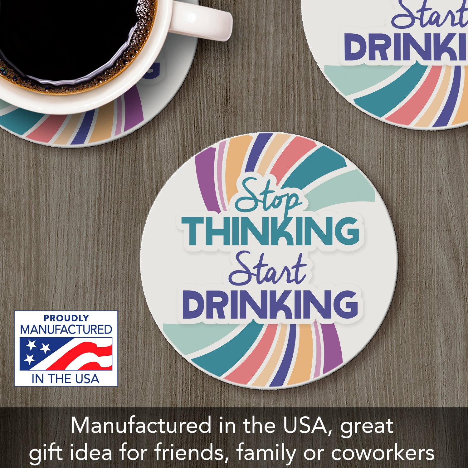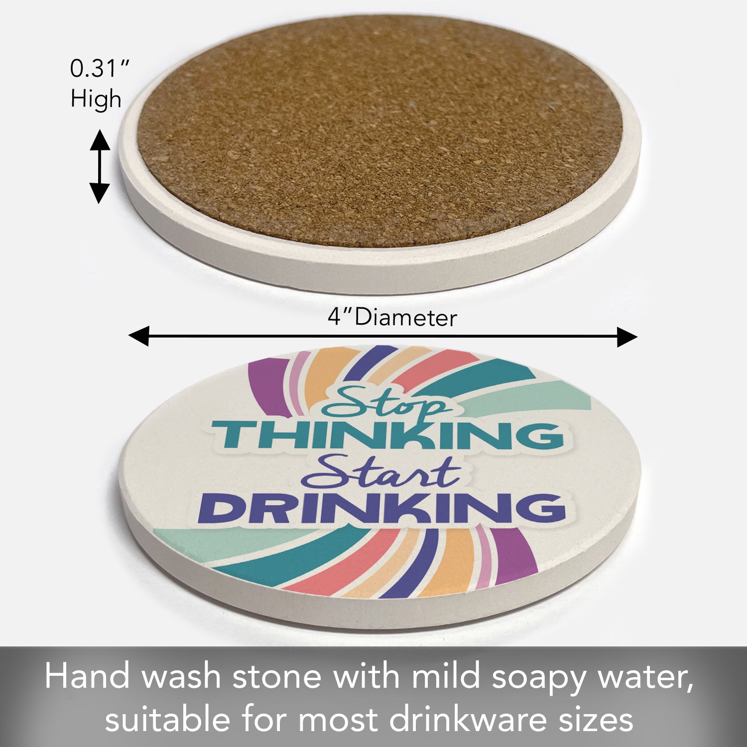 Thirstystone Stop Thinking Start Drinking Single Round Absorbent Stone Coaster 4" Diameter Create Your Own Collection