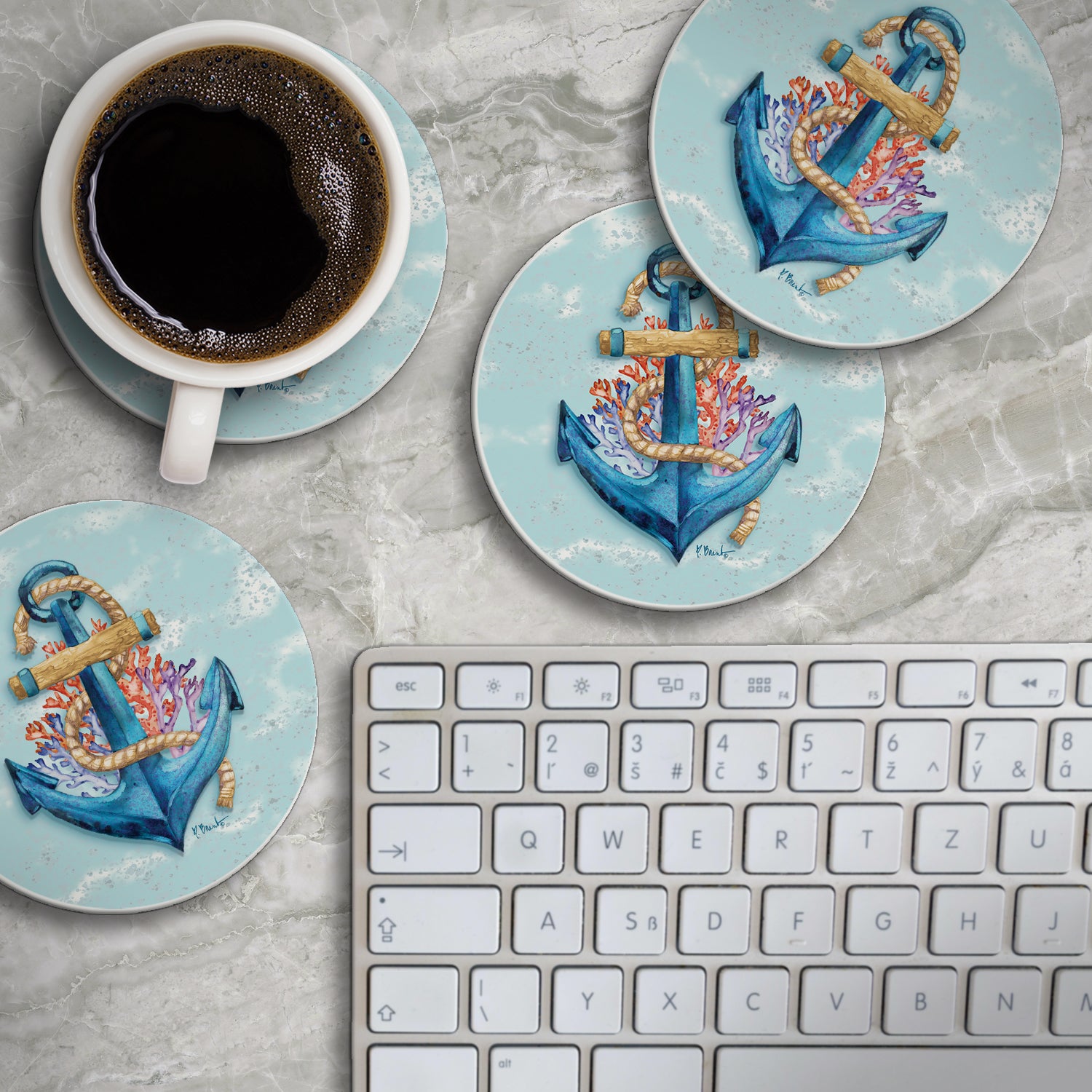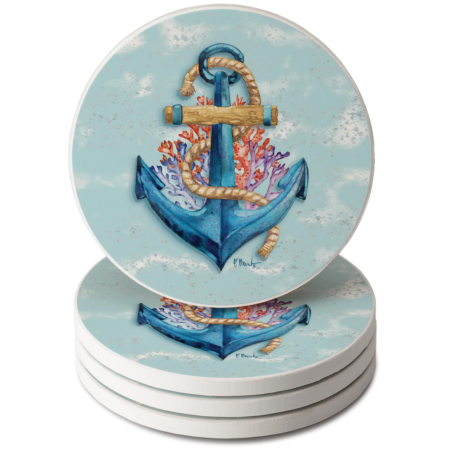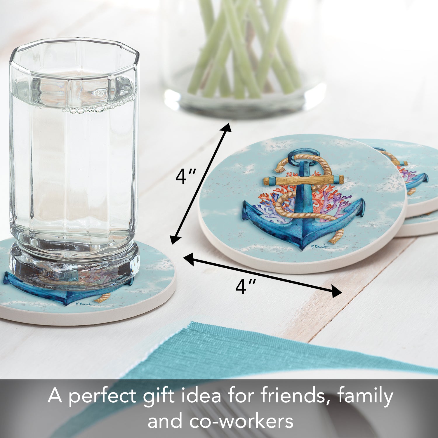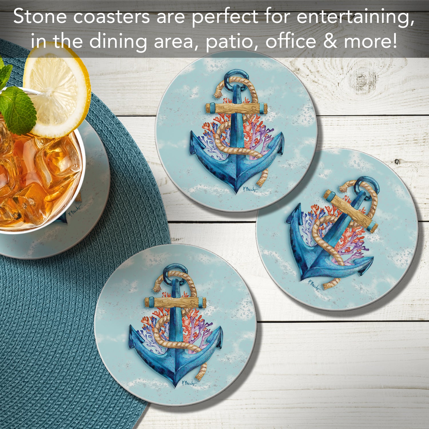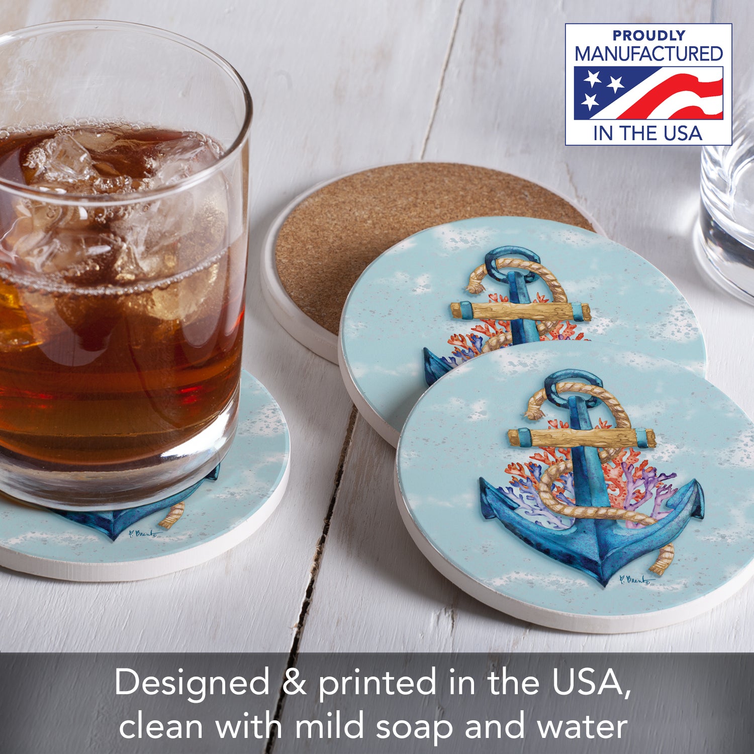 Thirstystone Submerged Anchor 4 Pack Round Absorbent Stone Coasters 4" Diameter Manufactured in the USA