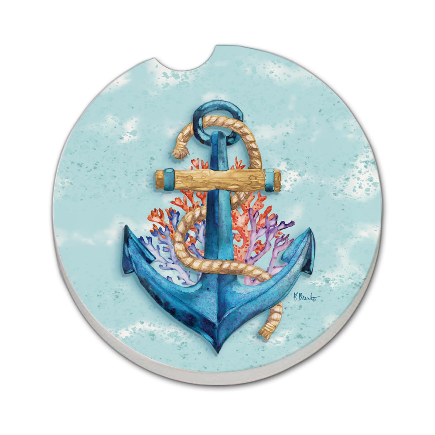 Thirstystone Submerged Anchor Single Absorbent Stone Car Coaster 2.6” Diameter Manufactured in the USA