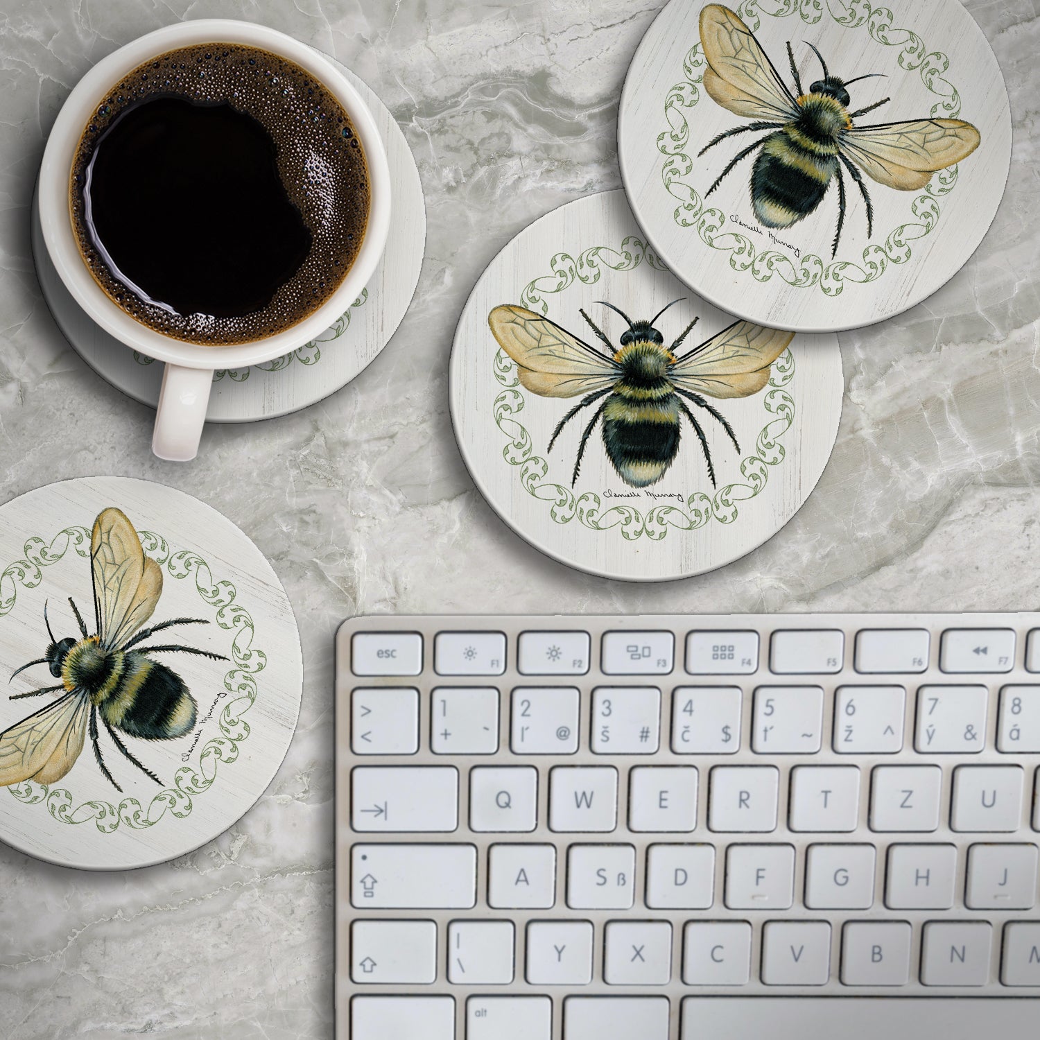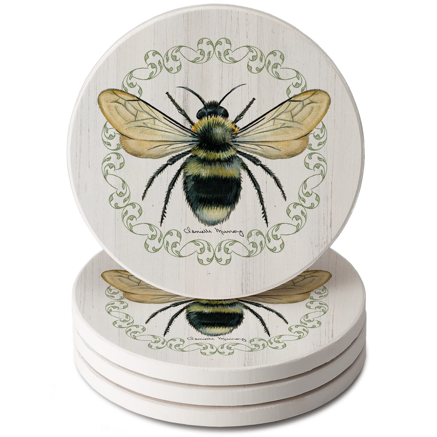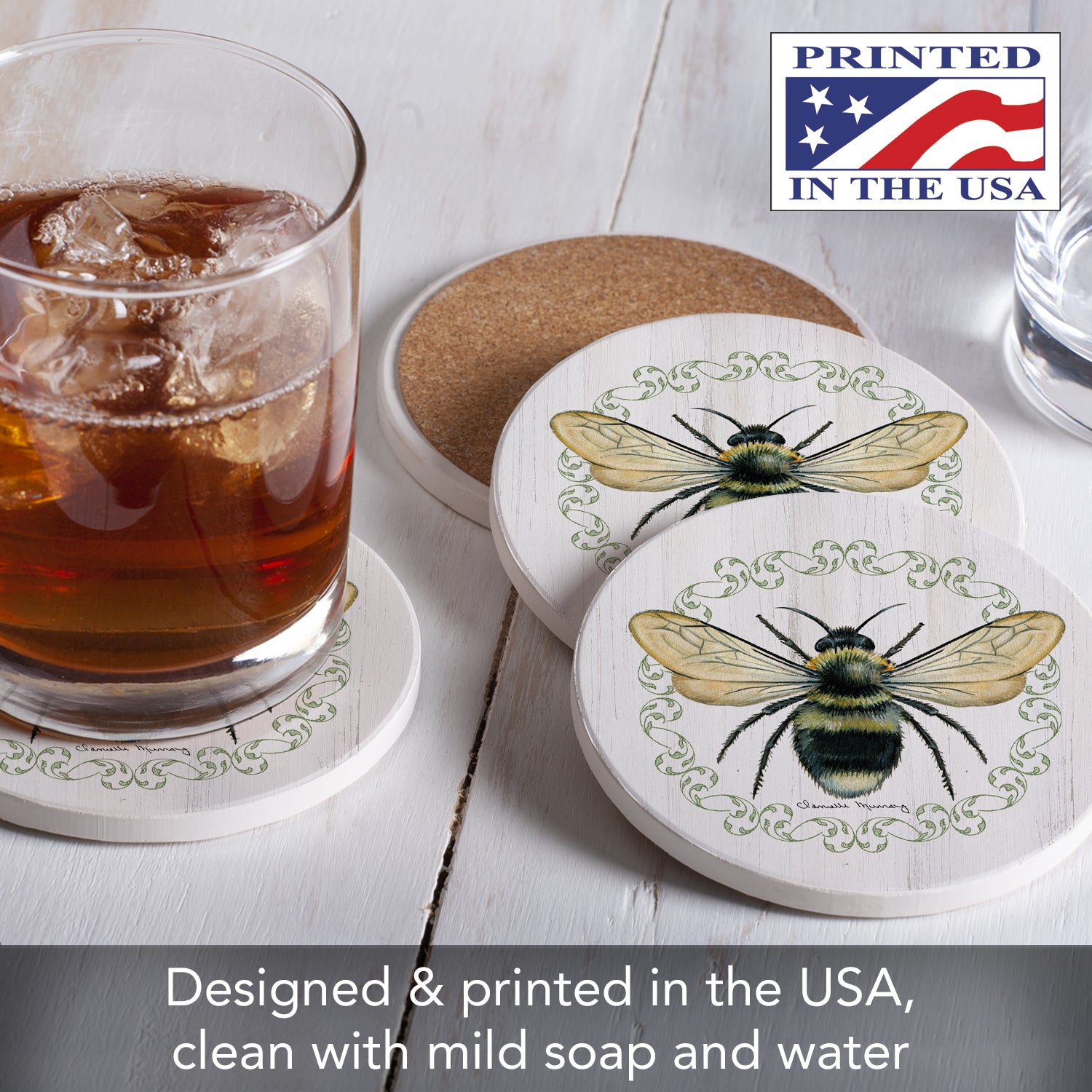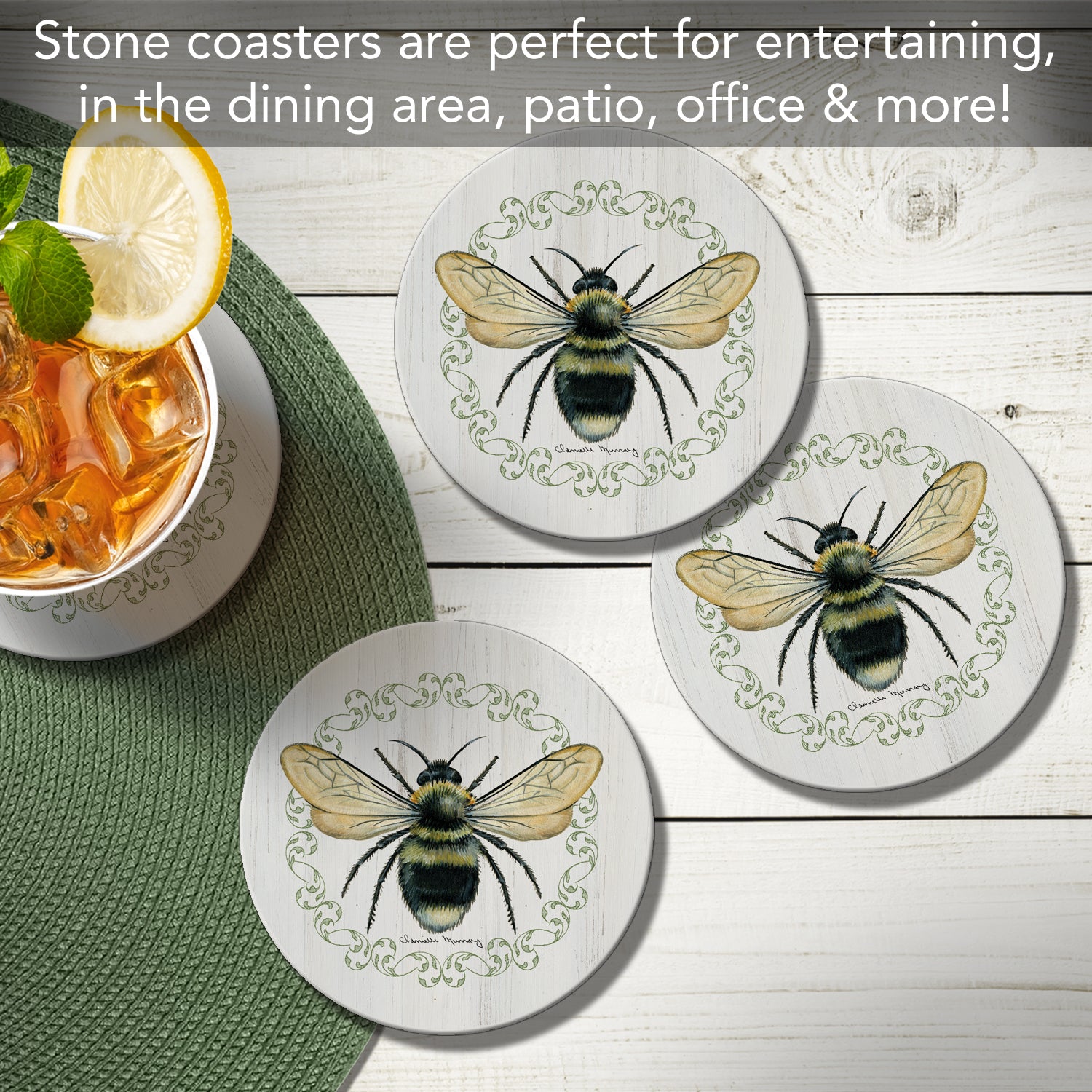 Thirstystone Summer Buzz 4 Pack Round Absorbent Stone Coasters 4" Diameter Manufactured in the USA