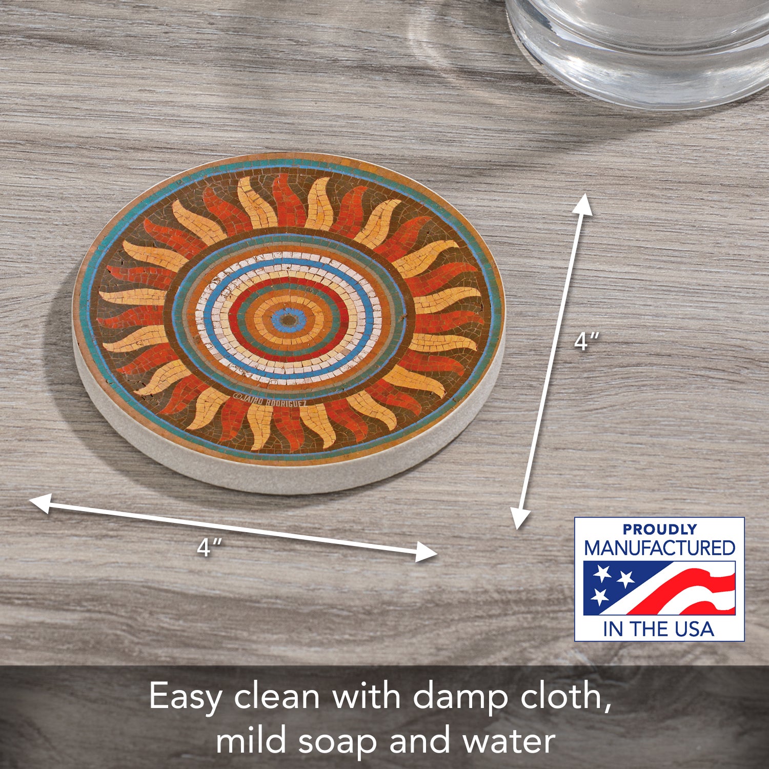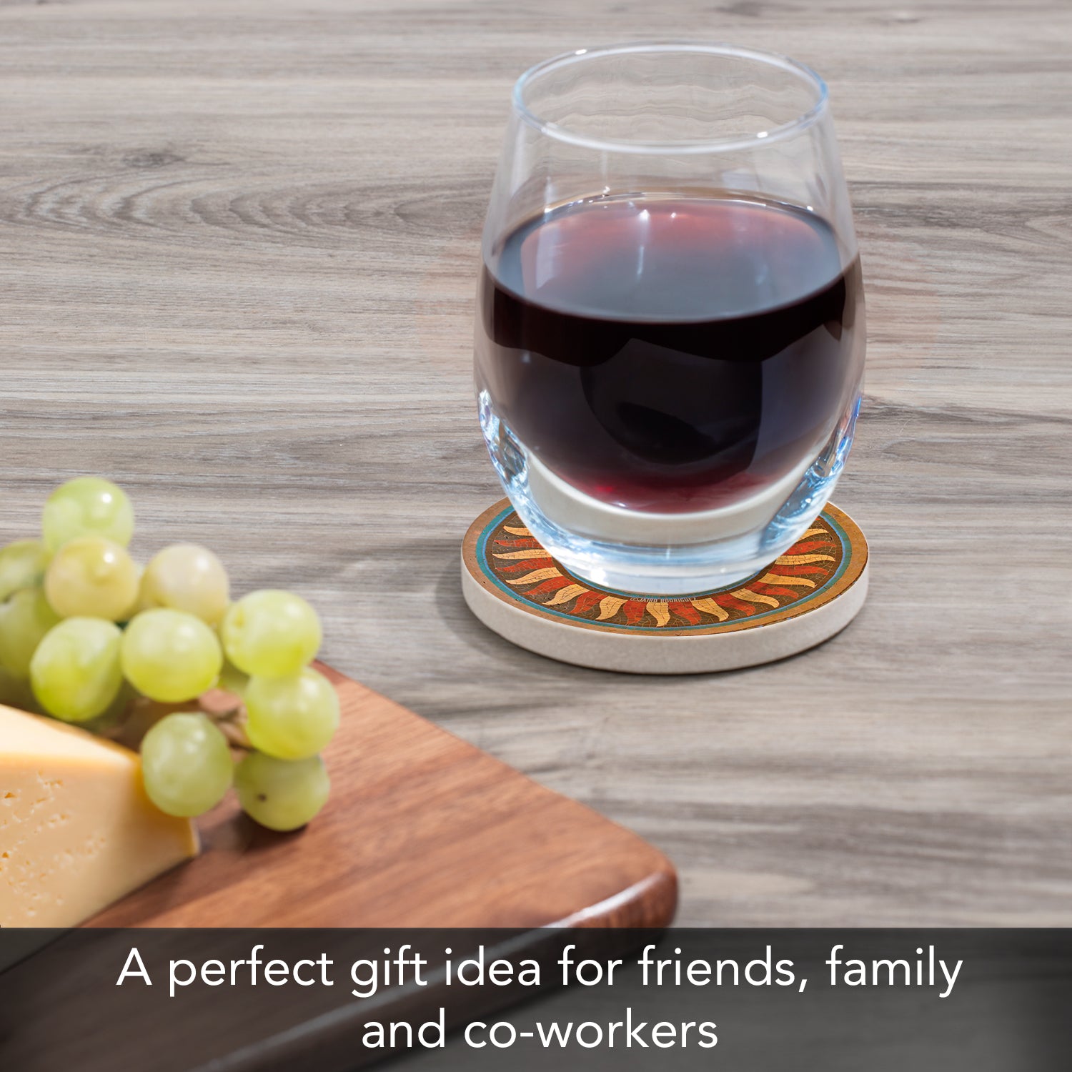 FUNCTIONAL ART-Beautiful artistic design allows the Coaster to remain displayed even when not in use. Each Coaster measures 4” x 4” x .31”. Sized to fit larger Mugs & Glasses.