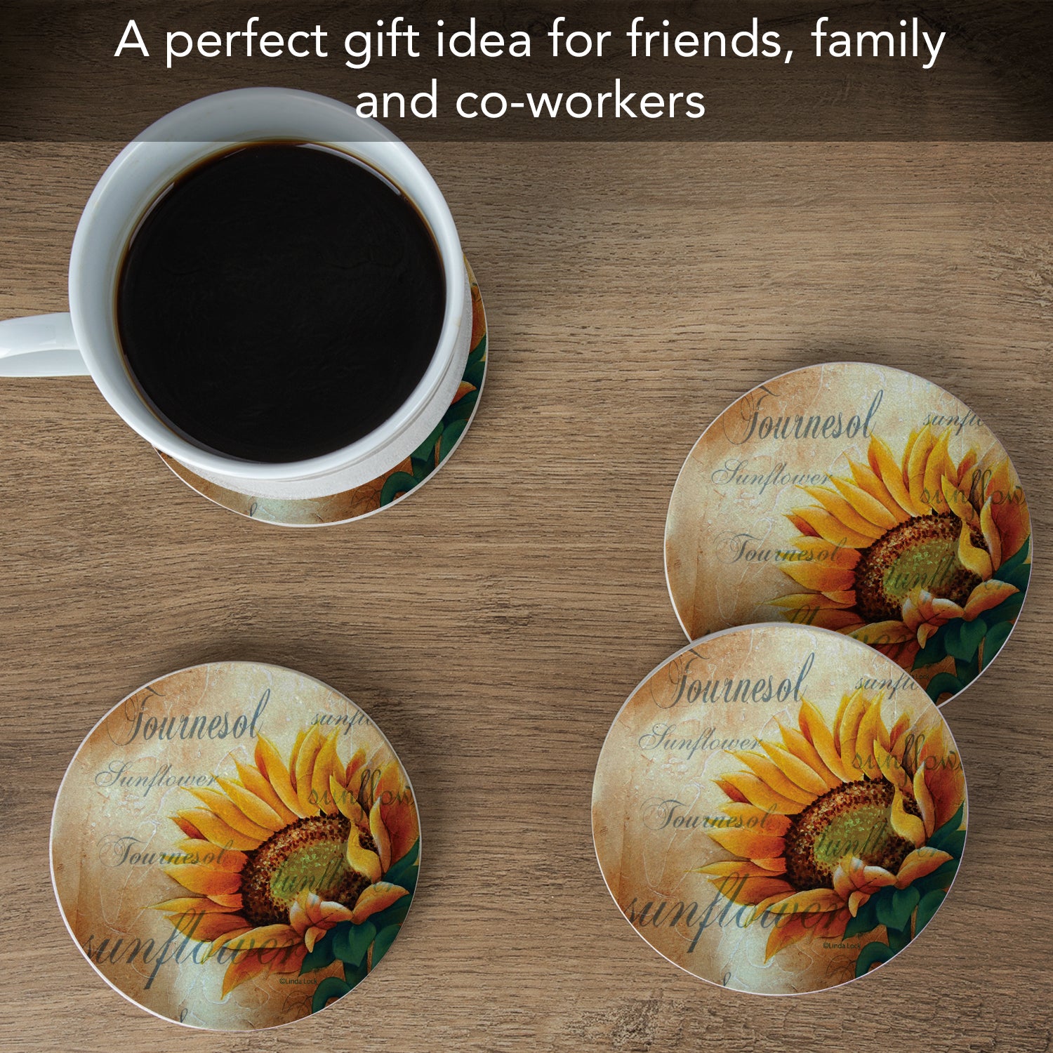 Thirstystone Sunflower II 4 Pack Natural Sandstone Coaster 4" Round