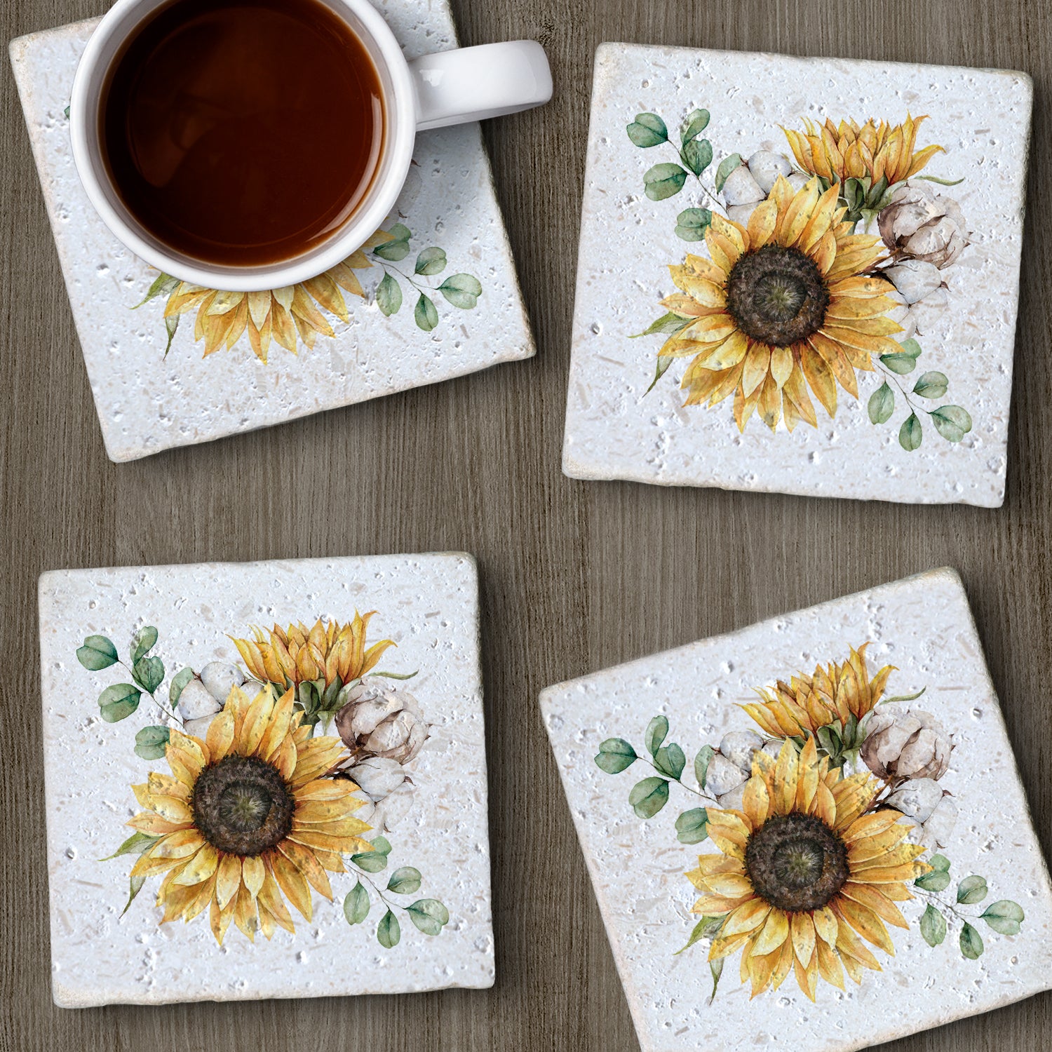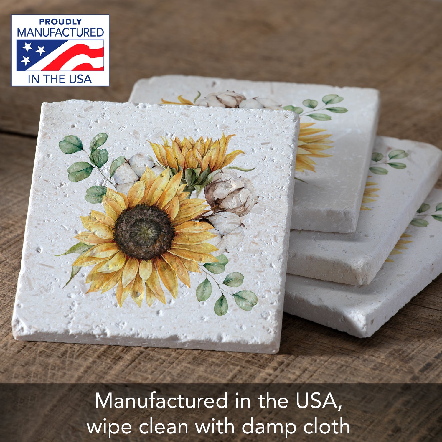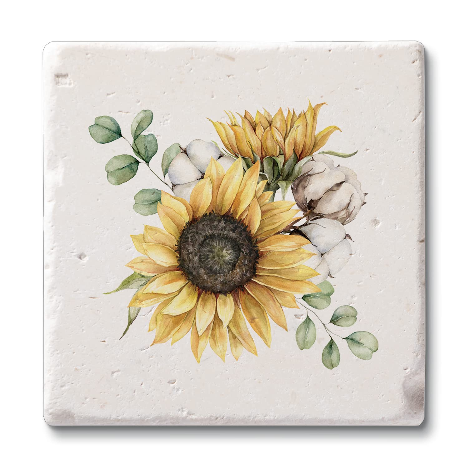 Thirstystone Sunflowers 4 Pack Natural Shell Stone Absorbent Coasters Manufactured in the USA
