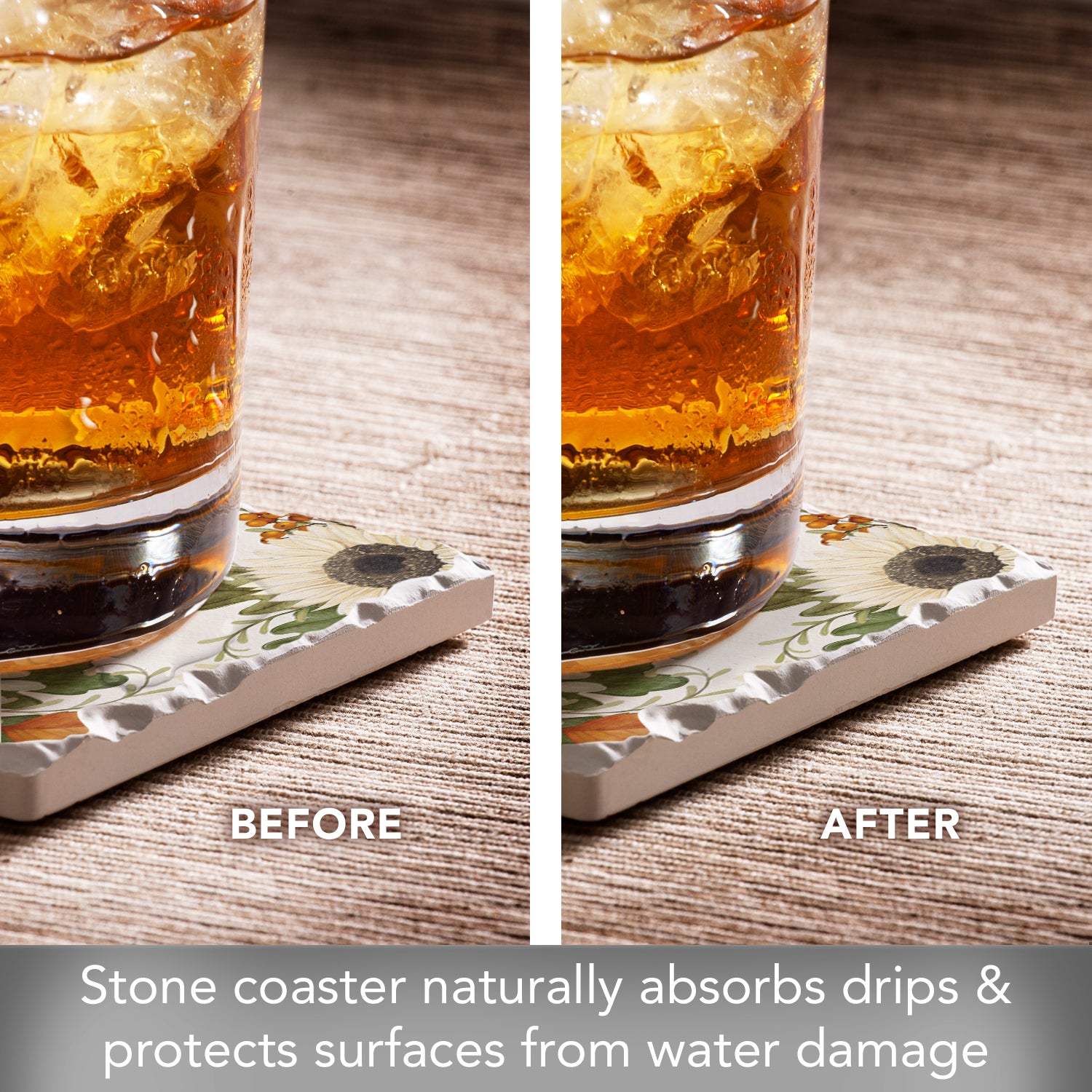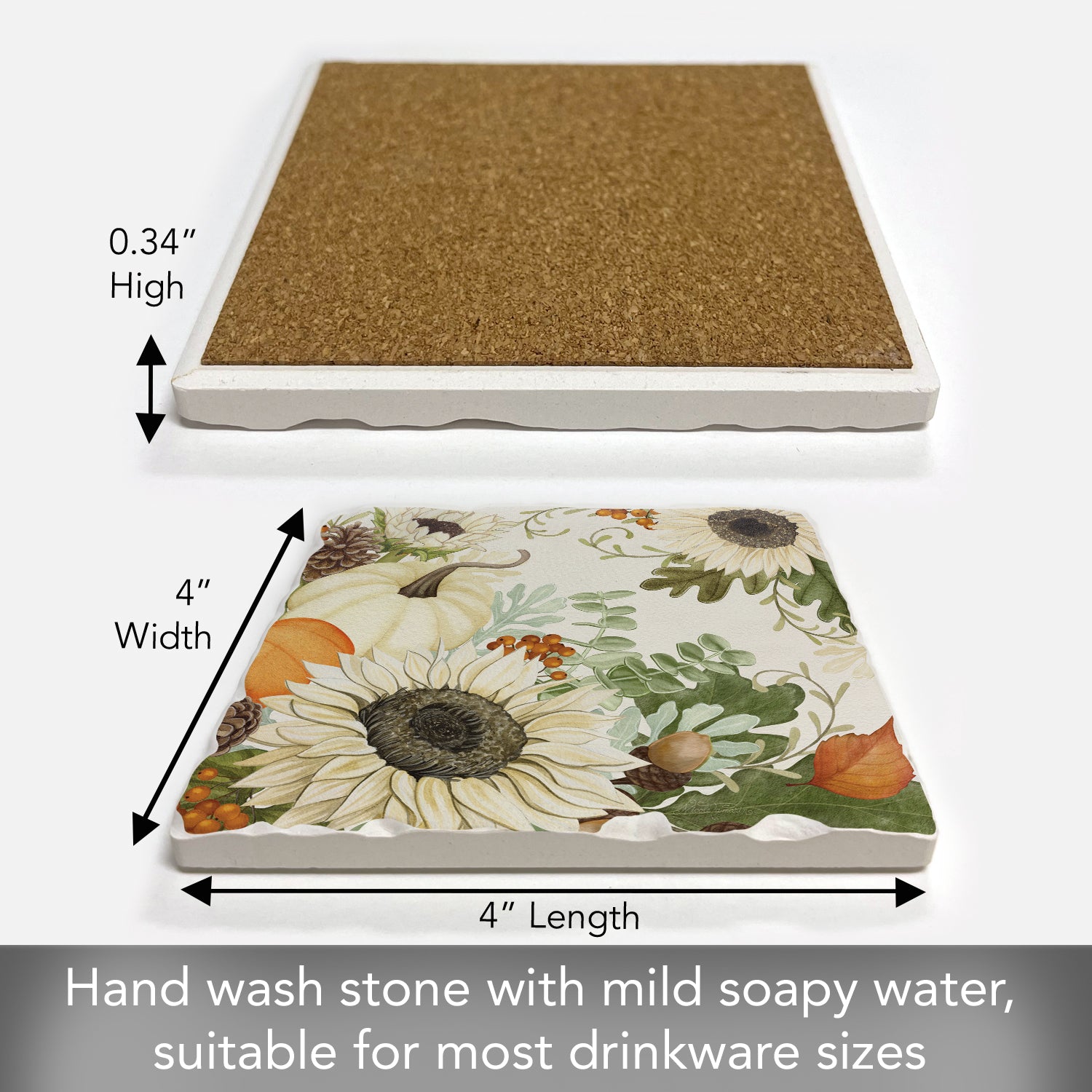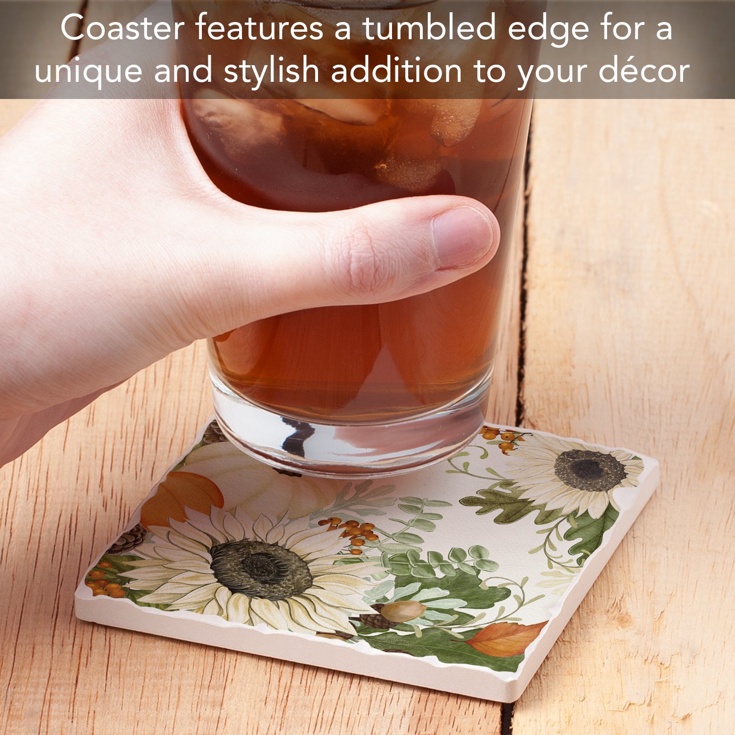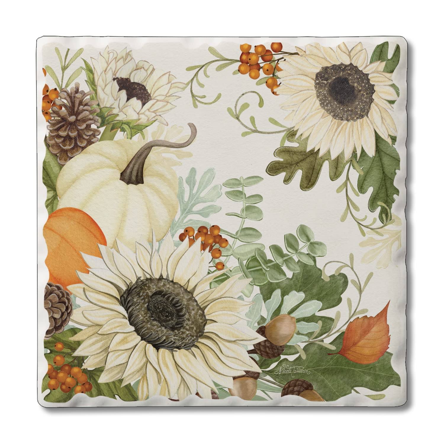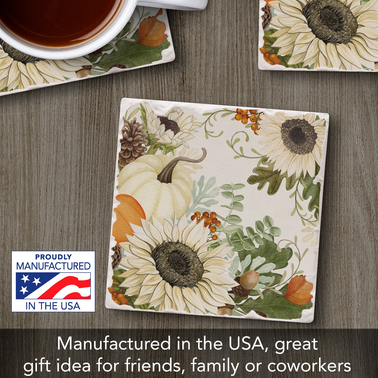 Thirstystone Sunflowers & Pumpkins Single Tumbled Tile Stone Coaster with Protective Cork Backing Manufactured in The USA 4" Square, Colorful, Artistic, Easily Wipes Clean