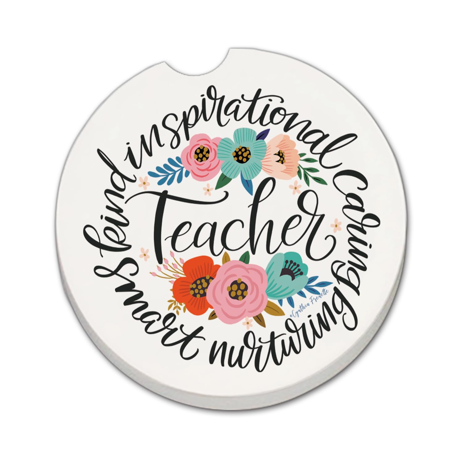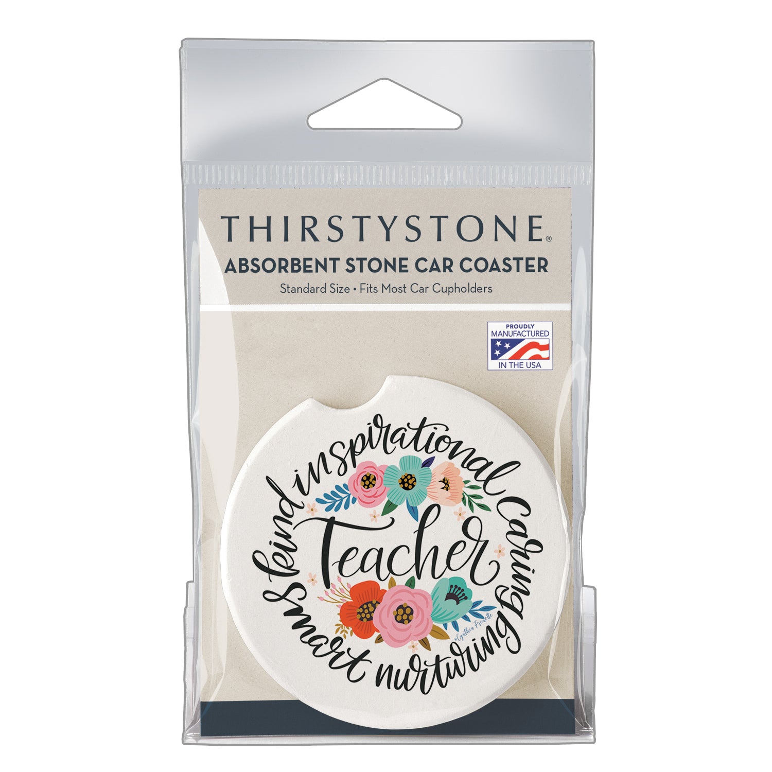 Thirstystone Teacher Words Single Absorbent Stone Car Coaster 2.6” Diameter Manufactured in the USA
