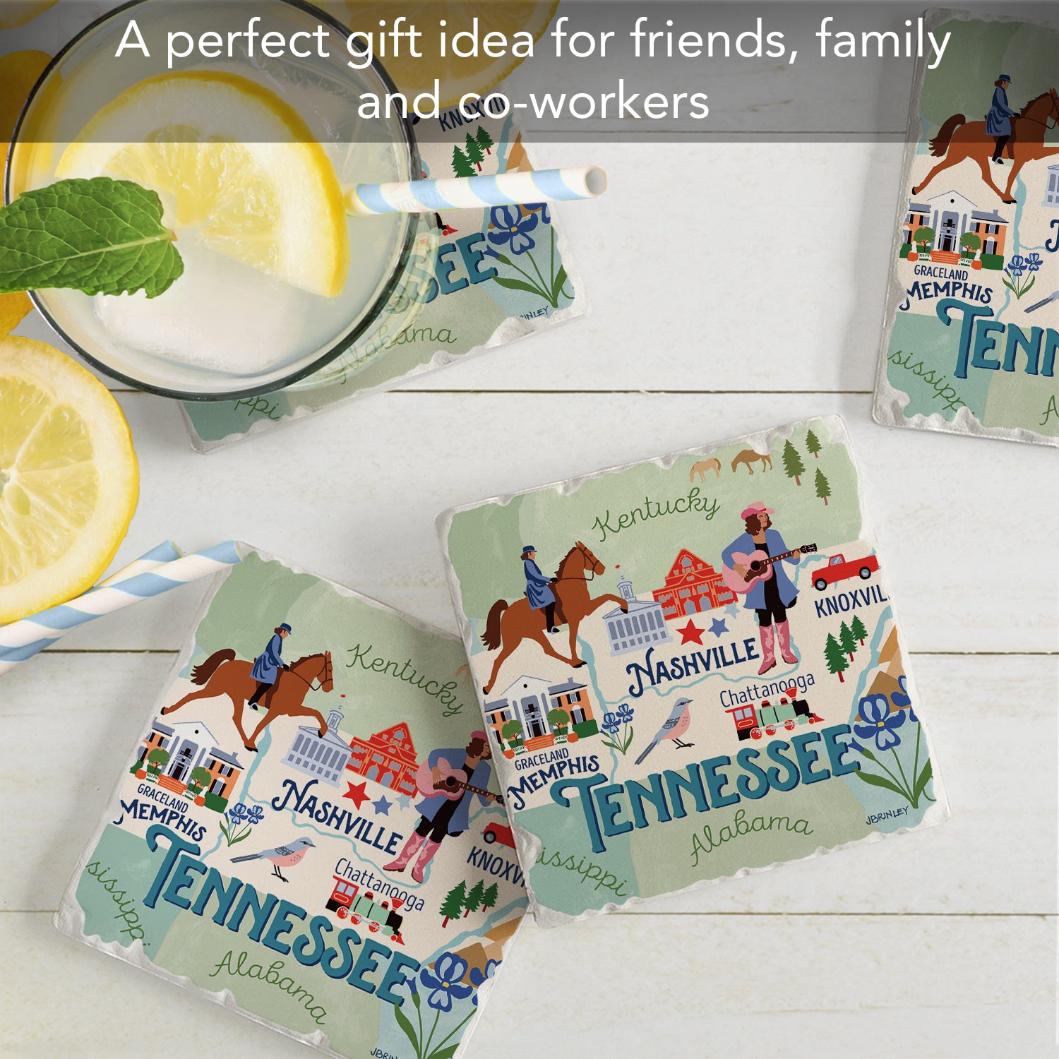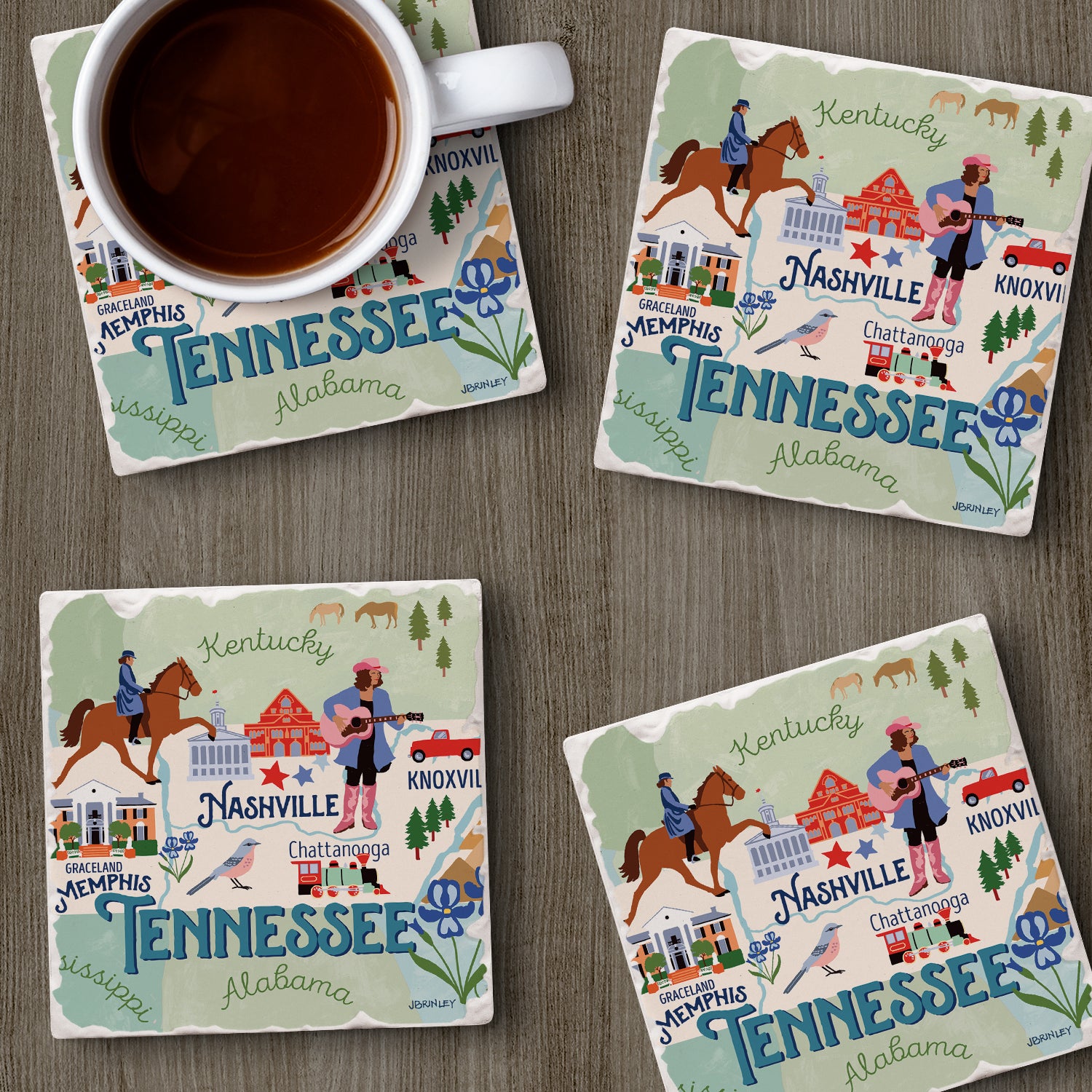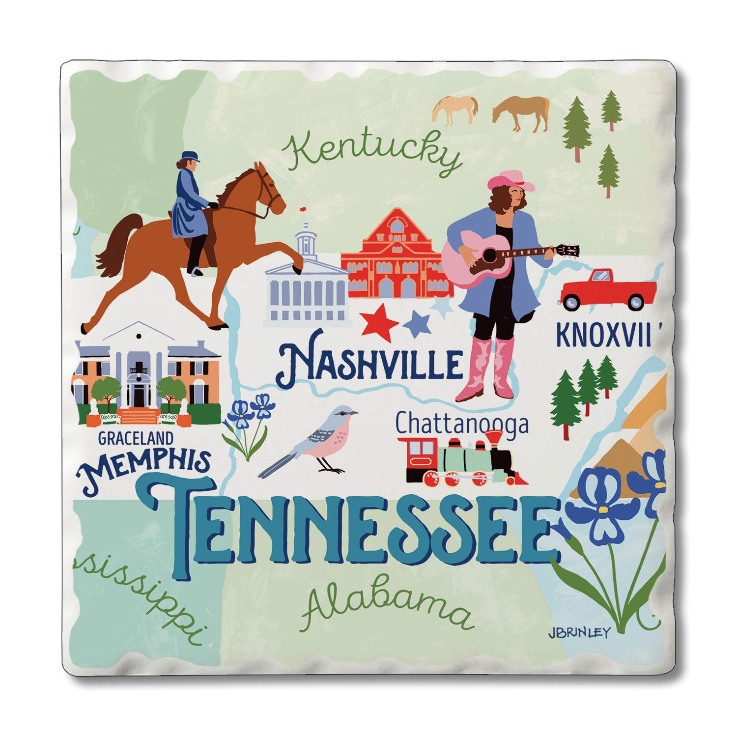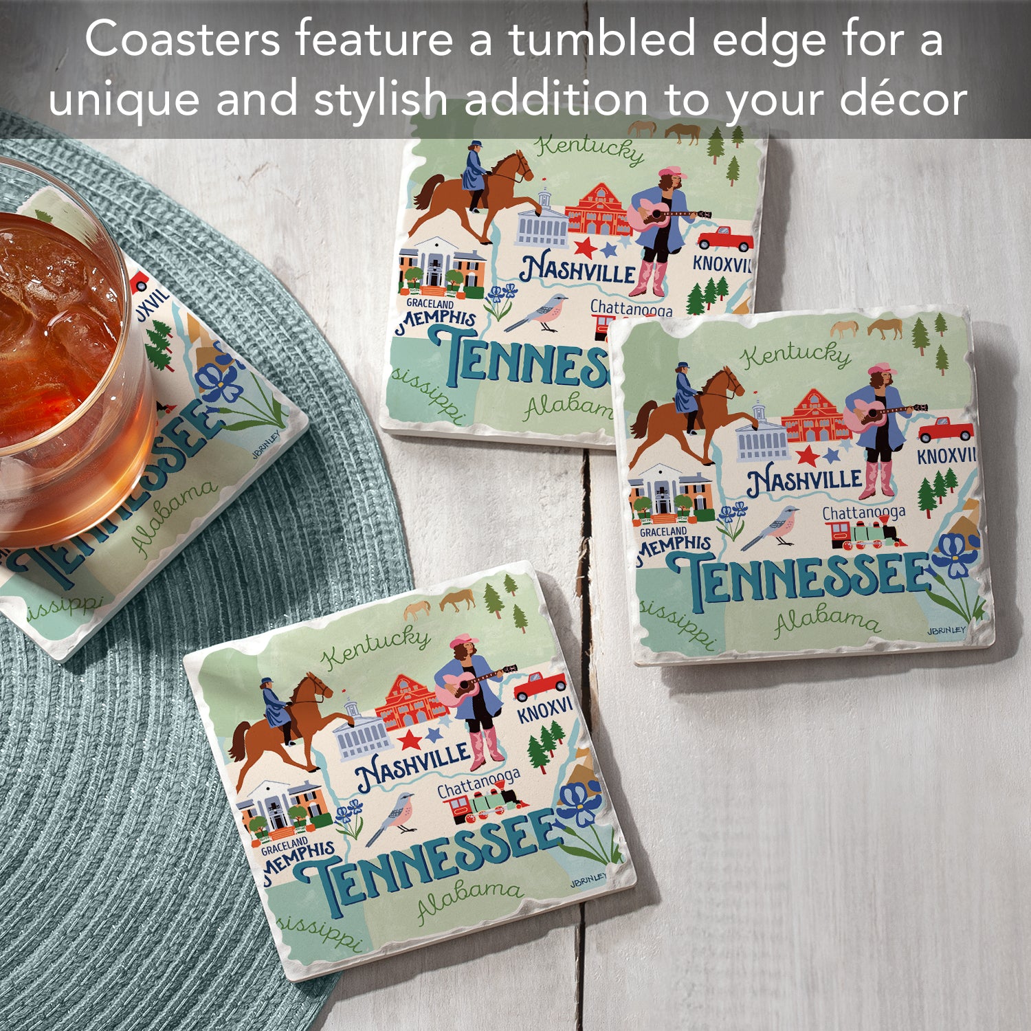 Thirstystone Tennessee State Attractions 4 Pack Tumbled Tile Stone Coasters 4” Square Manufactured in the USA