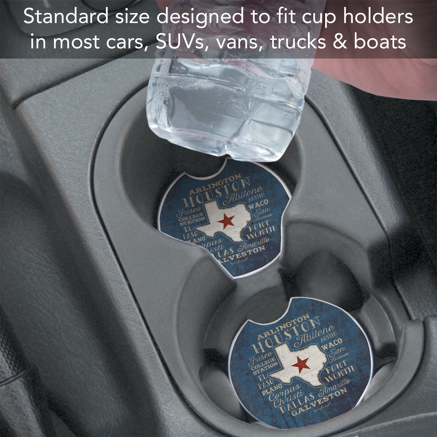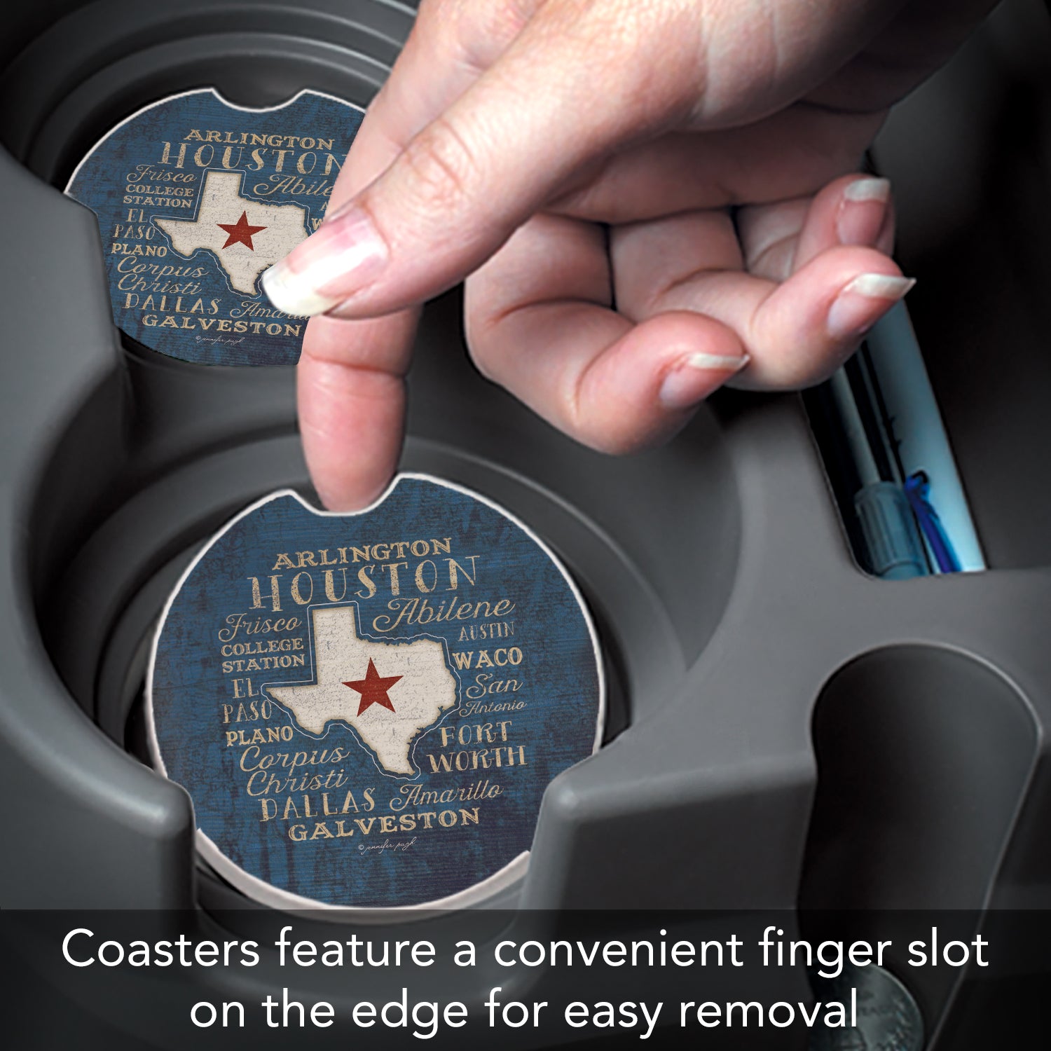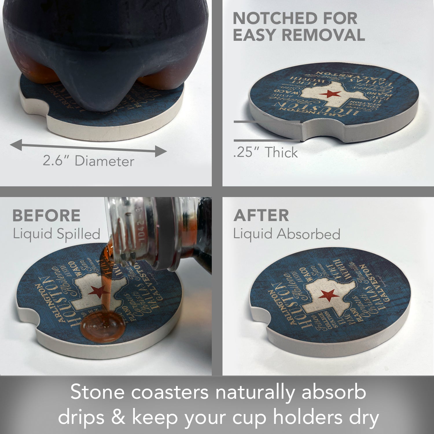Thirstystone Texas Cities Single Absorbent Stone Car Coaster 2.6” Diameter Manufactured in the USA