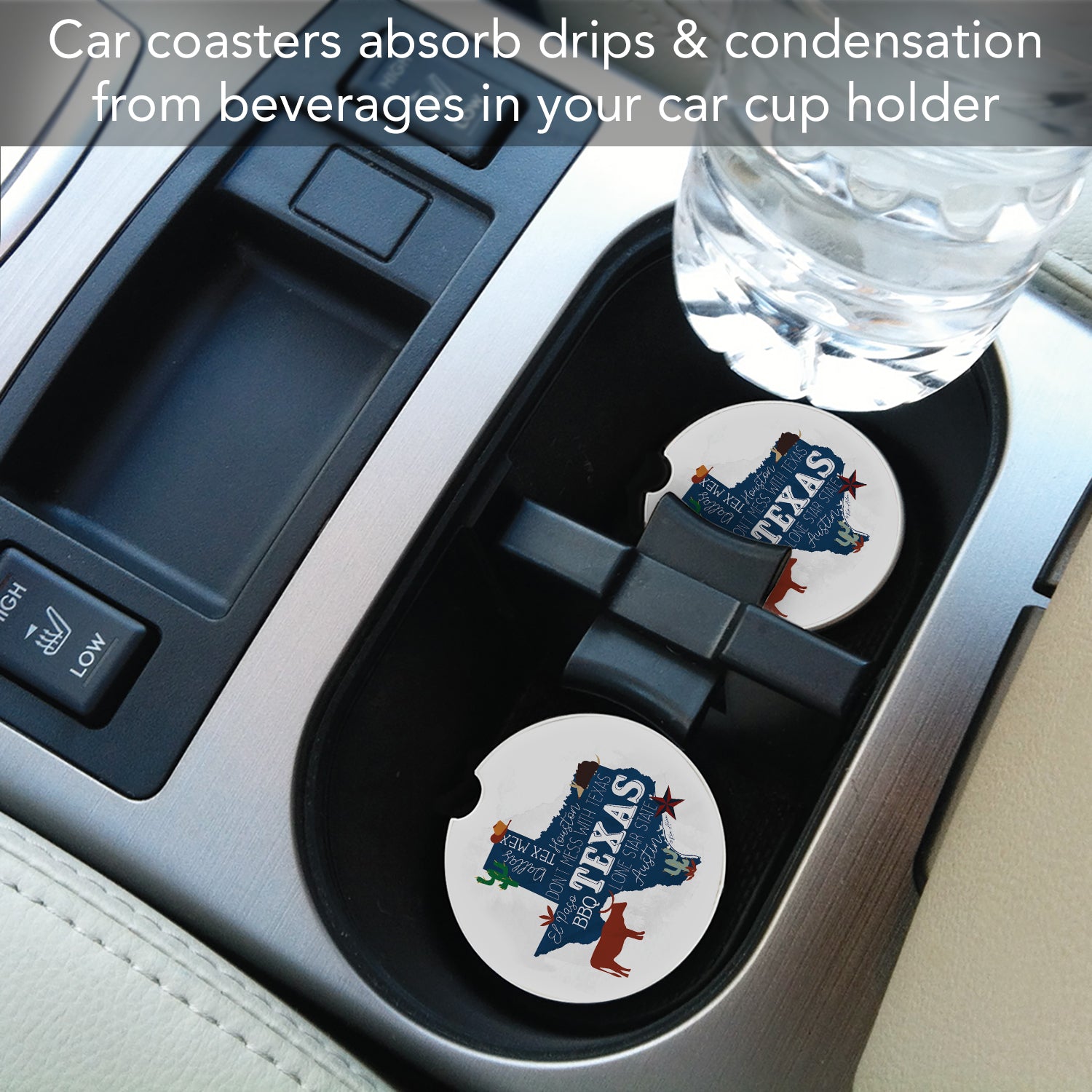 ABSORBENT STONE-Car Coaster is constructed of natural absorbent stone that absorbs drips and condensation from beverages in your vehicle’s cup holder.
