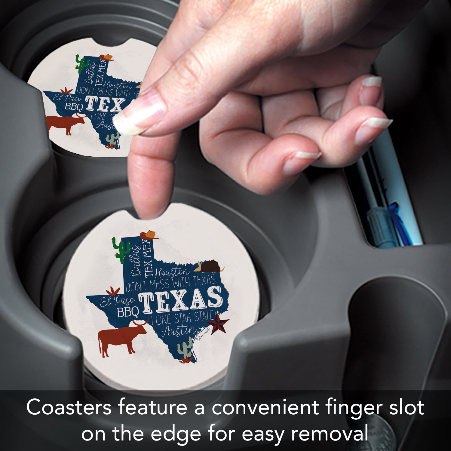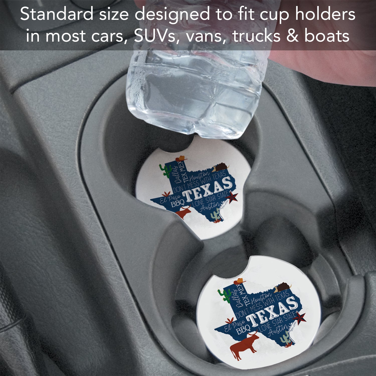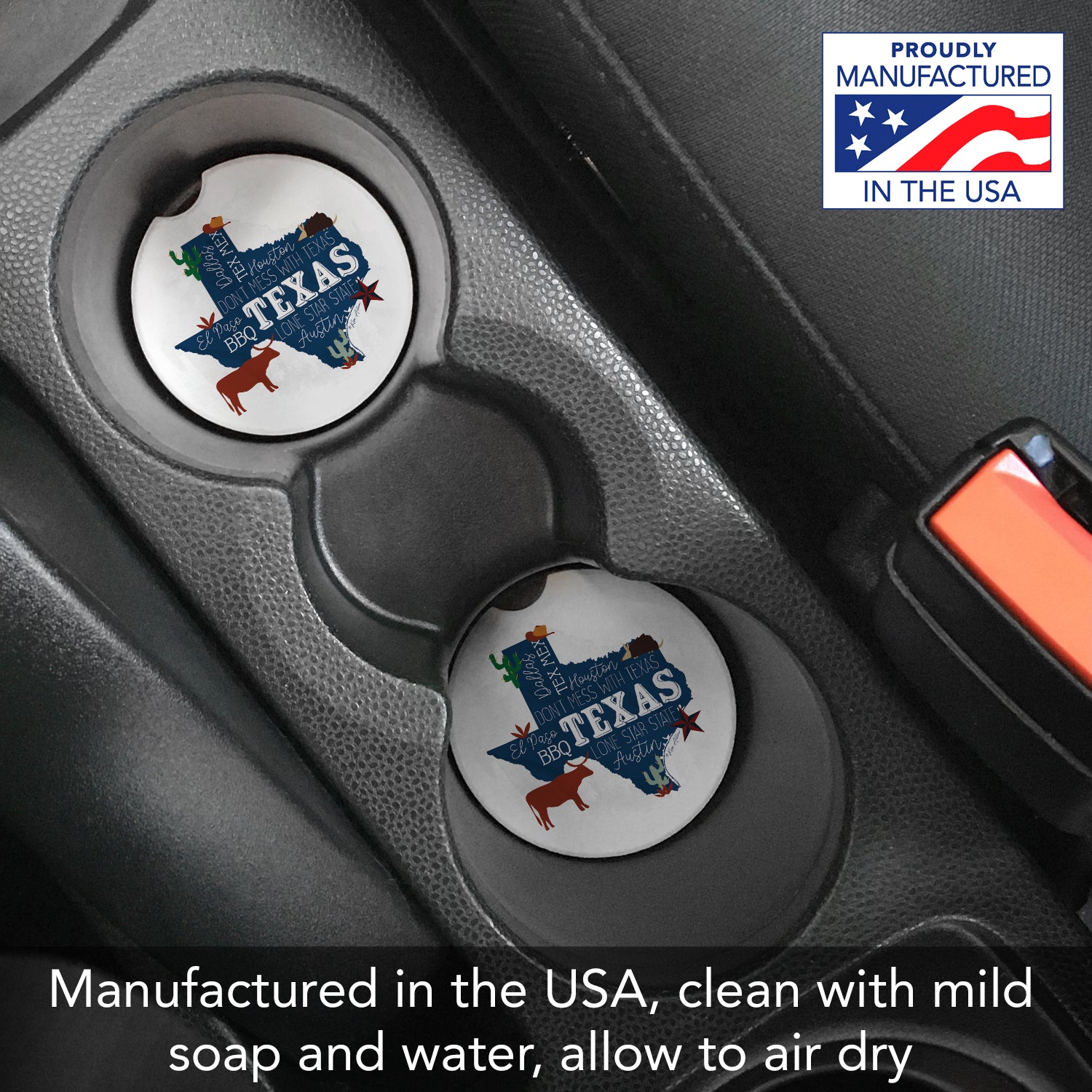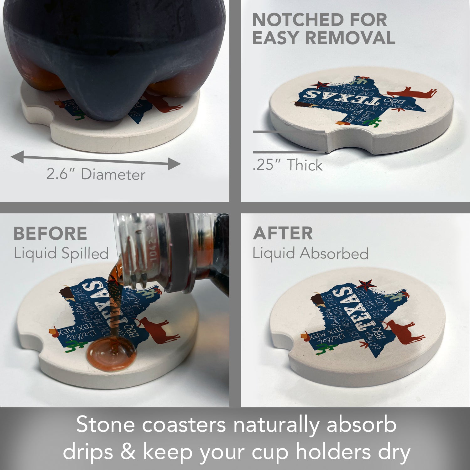 Thirstystone Texas Favorites Single Absorbent Stone Car Coaster 2.6” Diameter Manufactured in the USA