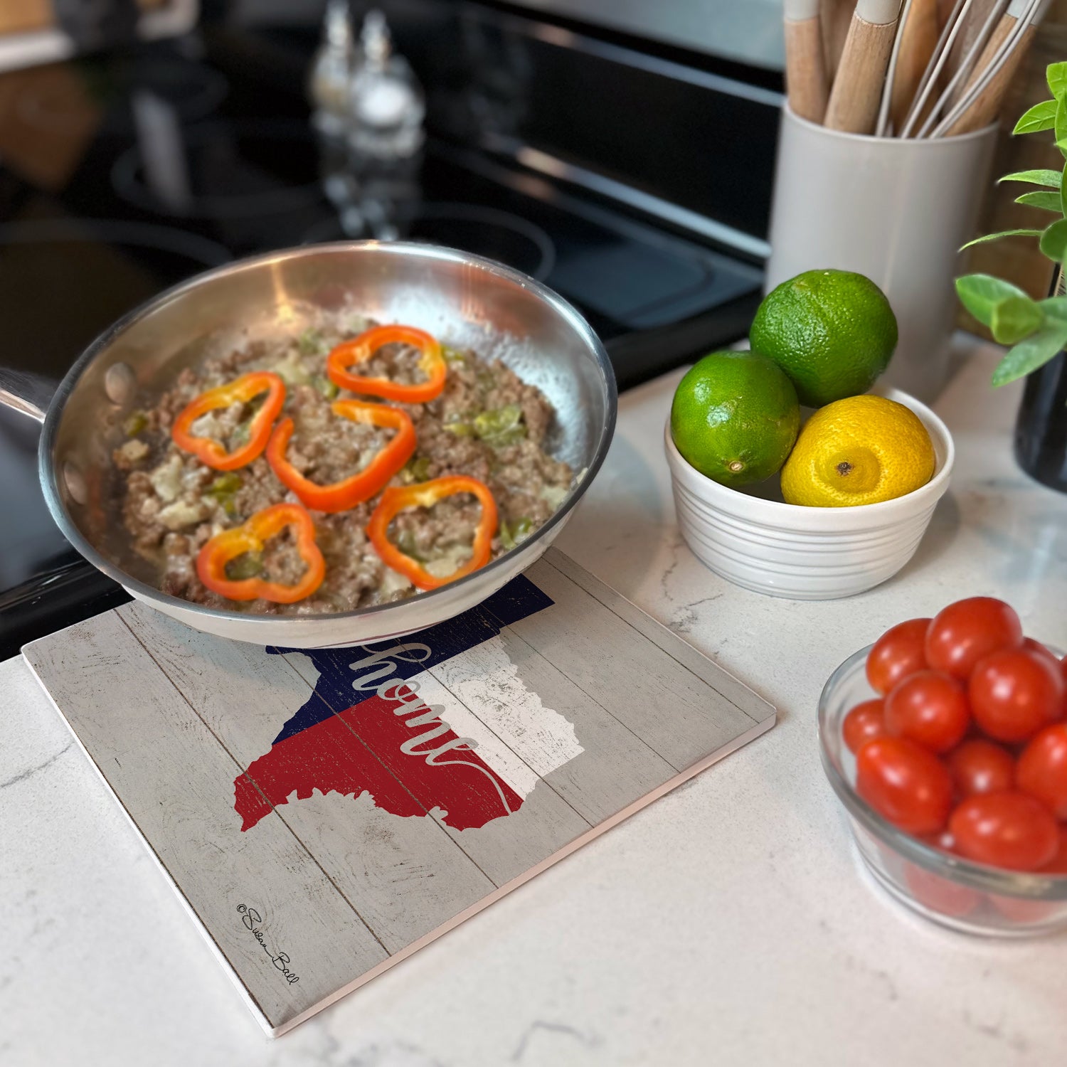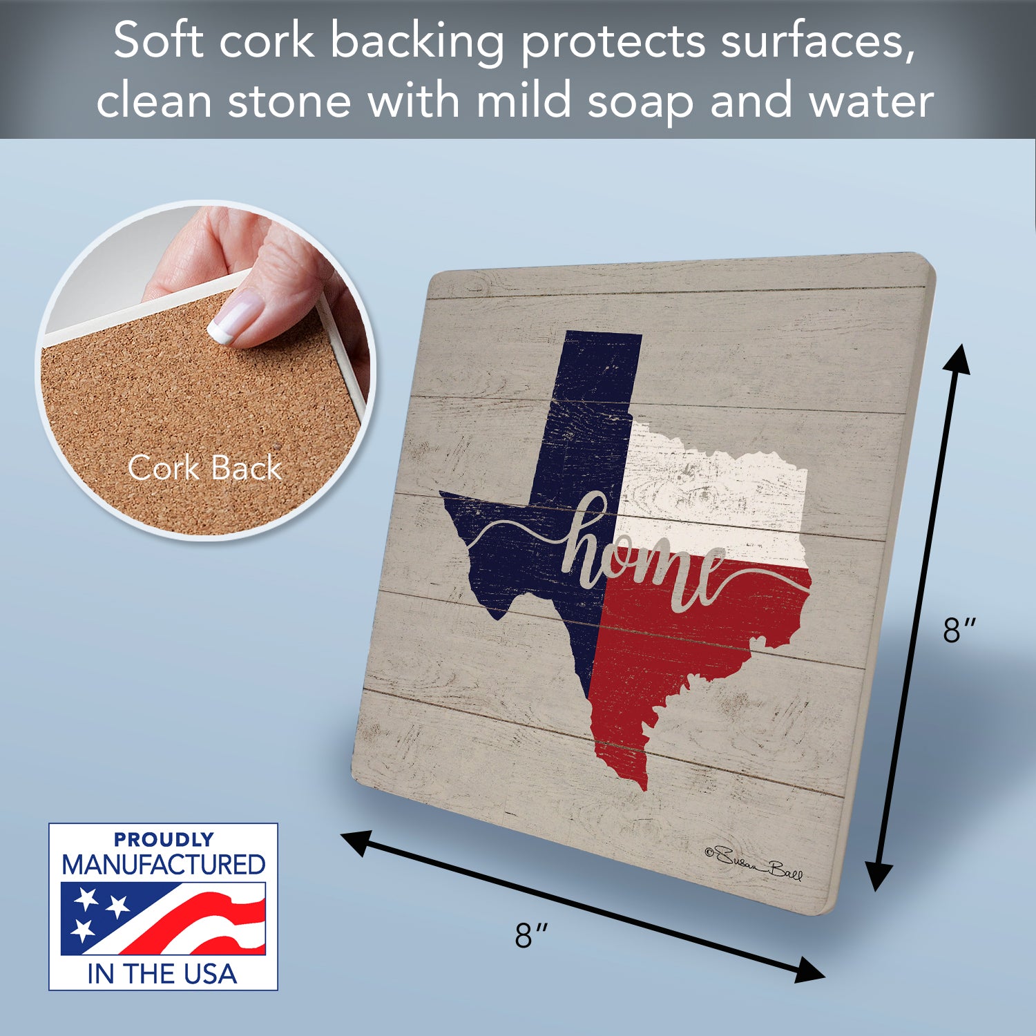 Thirstystone Texas Flag Home Decorative Heat Tolerant Stone Trivet with Non-Skid Cork Backing 8” Square