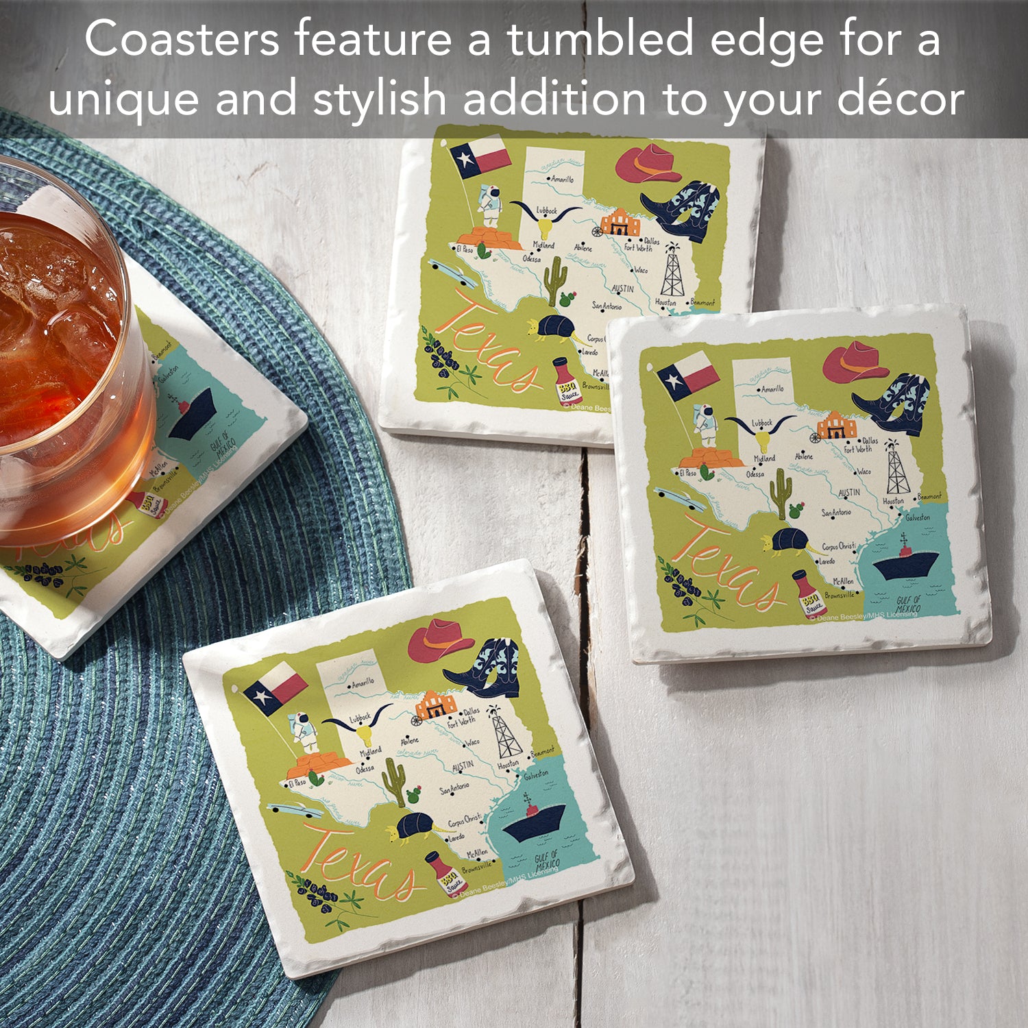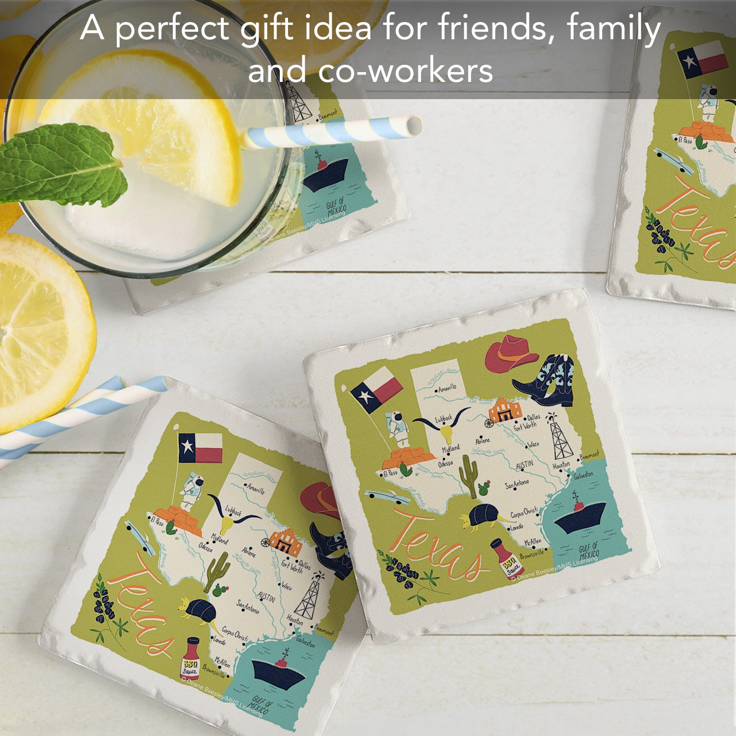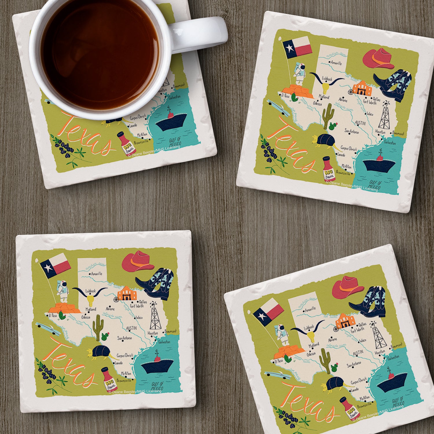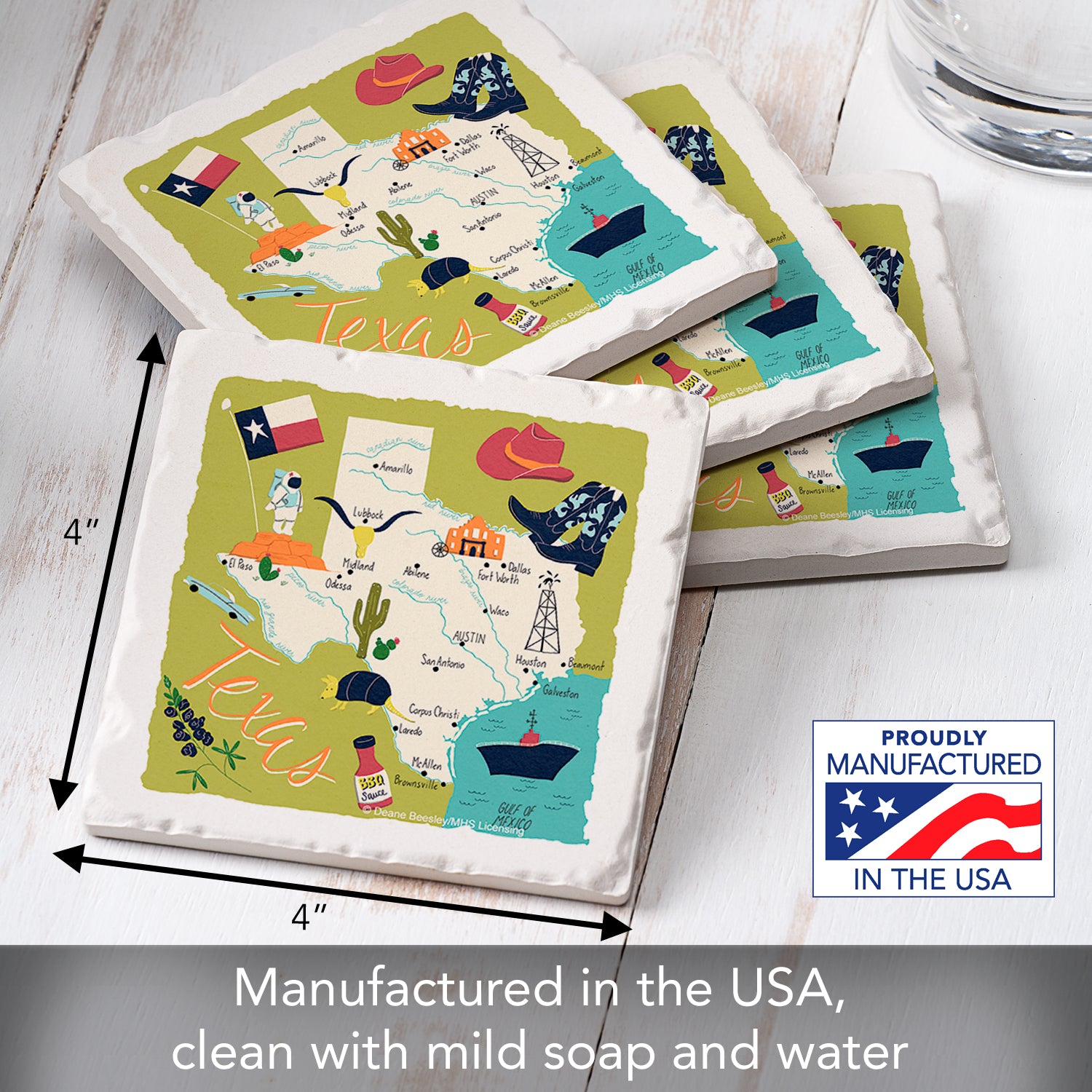 Thirstystone Texas Home State 4 Pack Tumbled Tile Stone Coasters 4" Square Manufactured in the USA