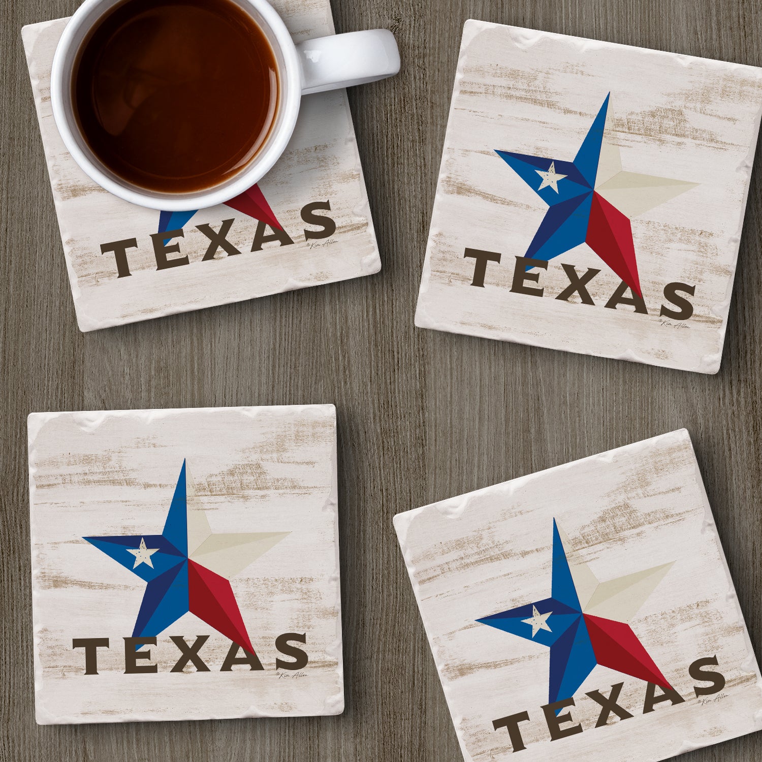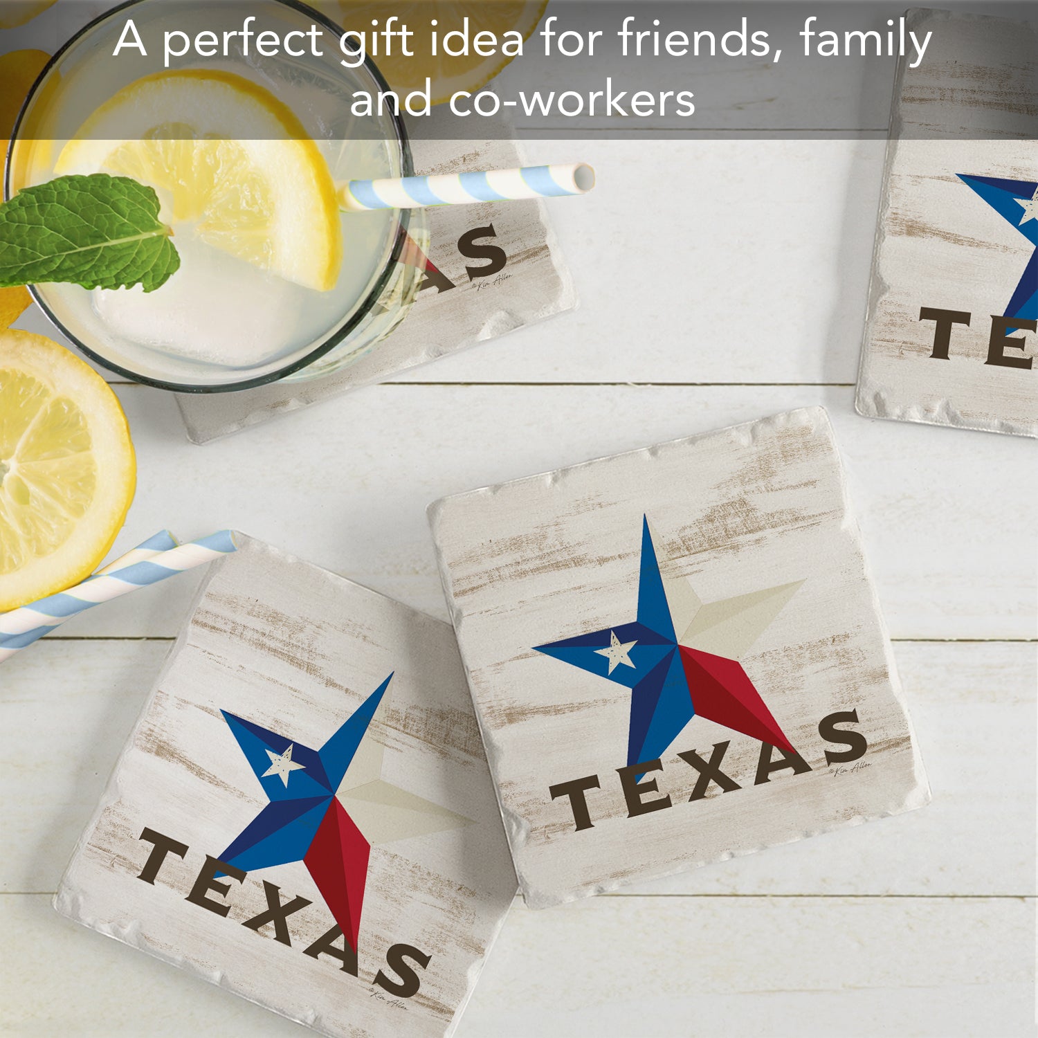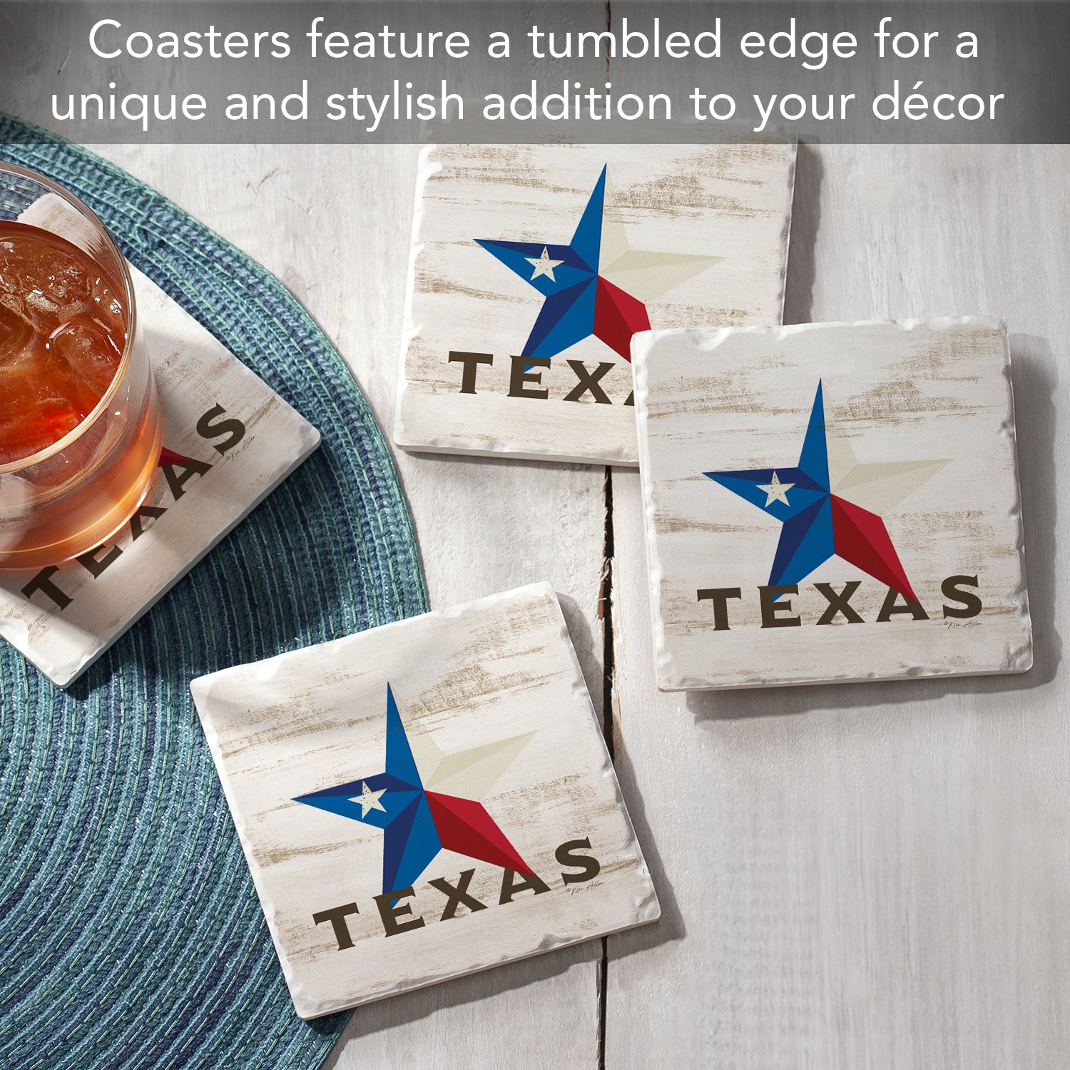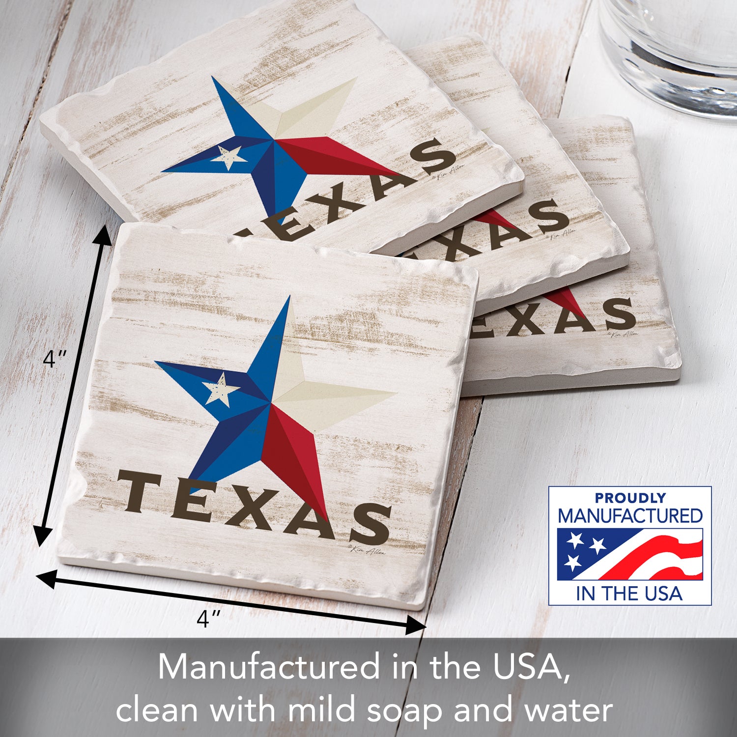 Thirstystone Texas Star 4 Pack Tumbled Tile Stone Coasters 4" Square Manufactured in The USA