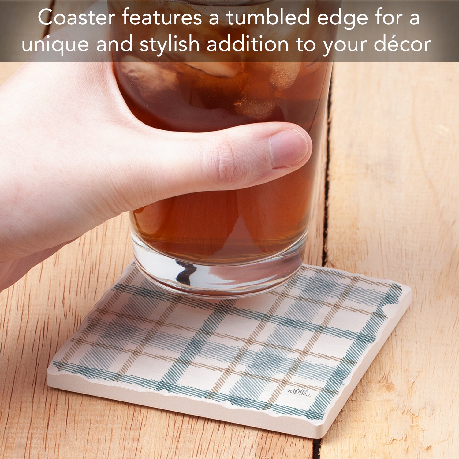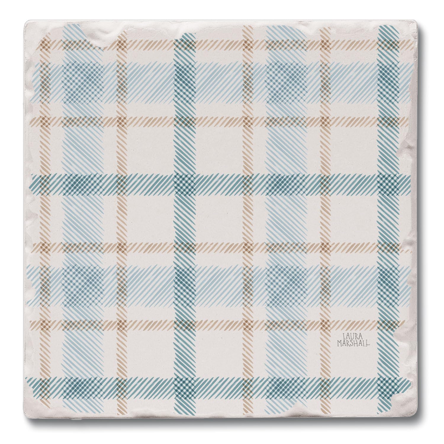 Thirstystone Ticking Plaid Single Tumbled Tile Stone Coaster with Protective Cork Backing Manufactured in The USA 4" Square