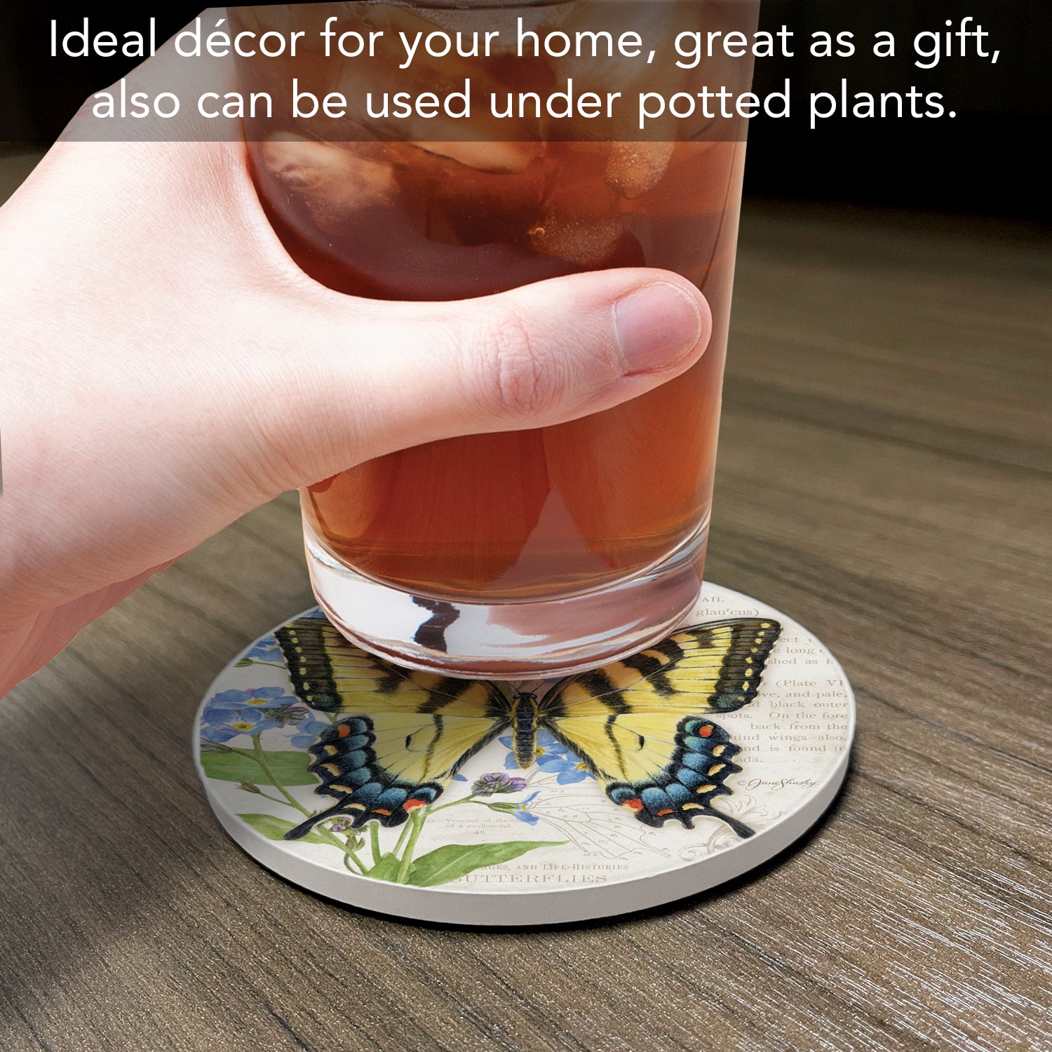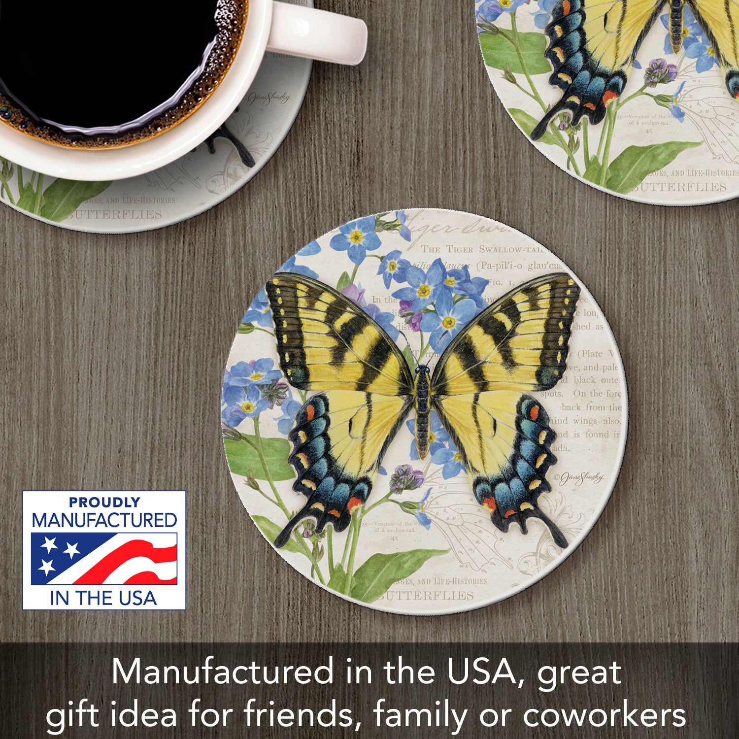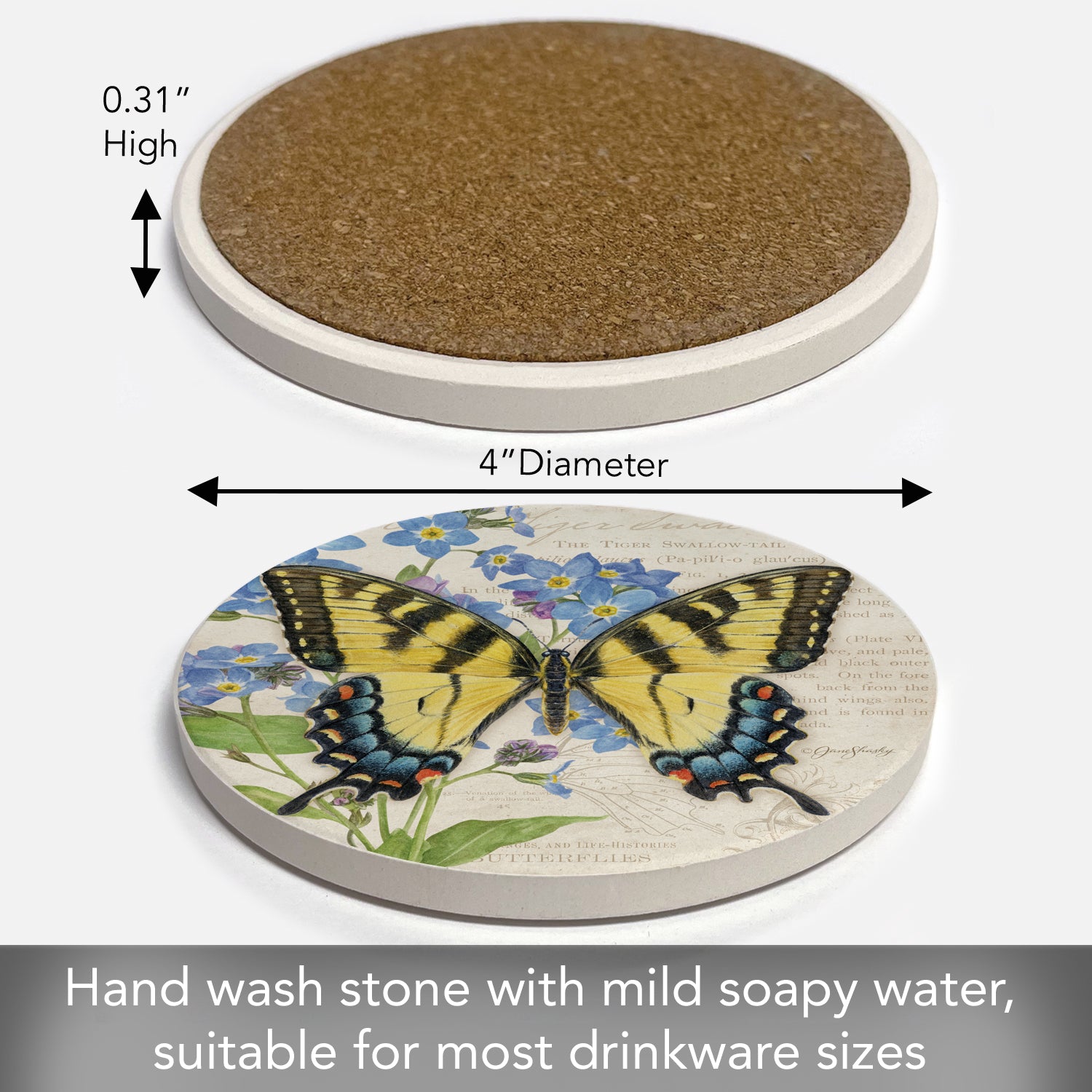 Thirstystone Tiger Swallowtail Butterfly Single Round Absorbent Stone Coaster with Protective Cork Backing Manufactured in The USA 4" Diameter