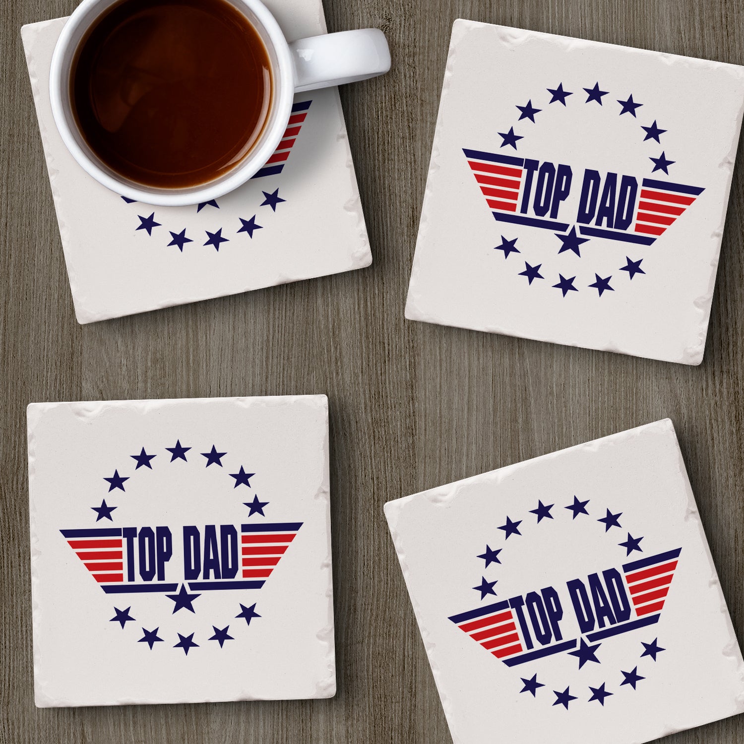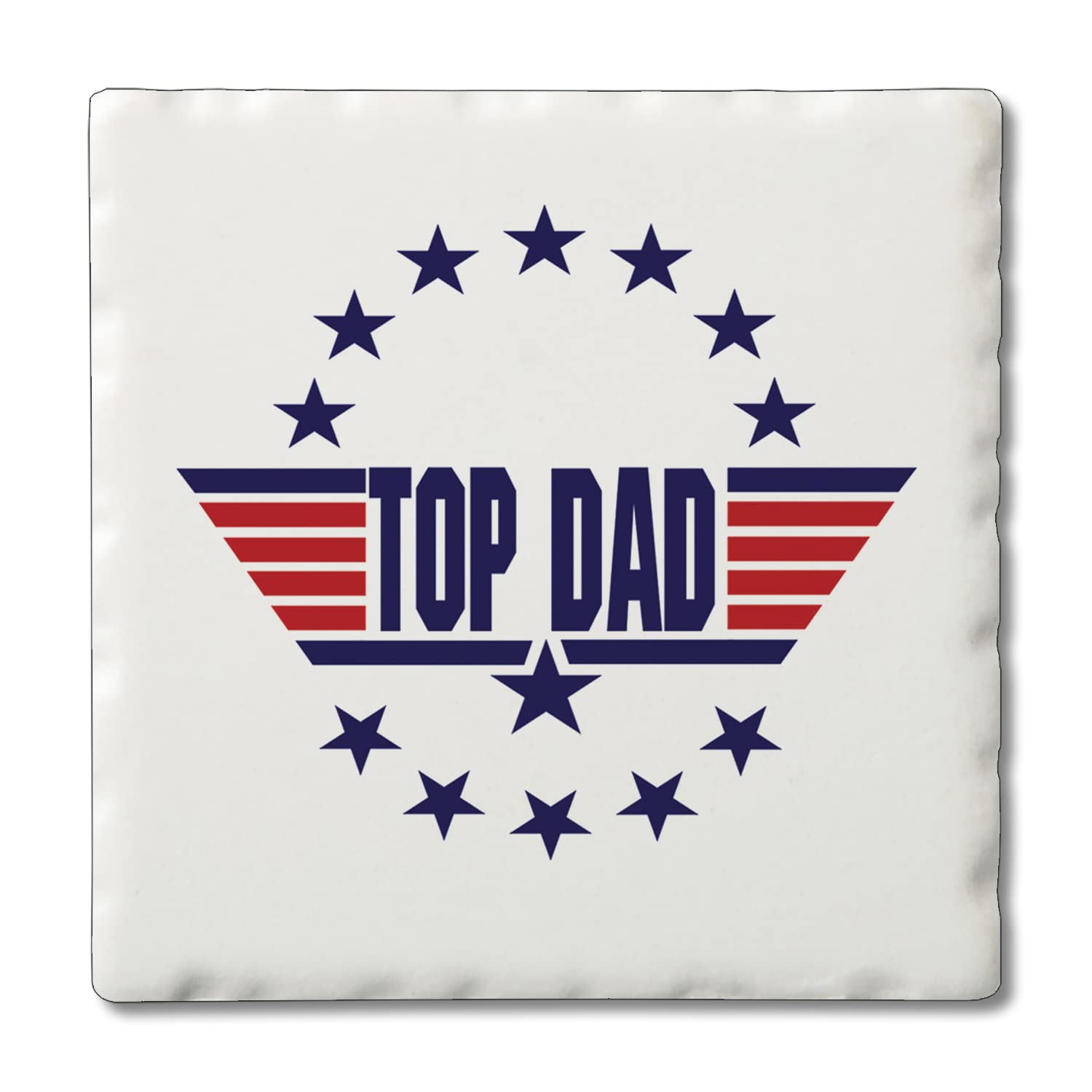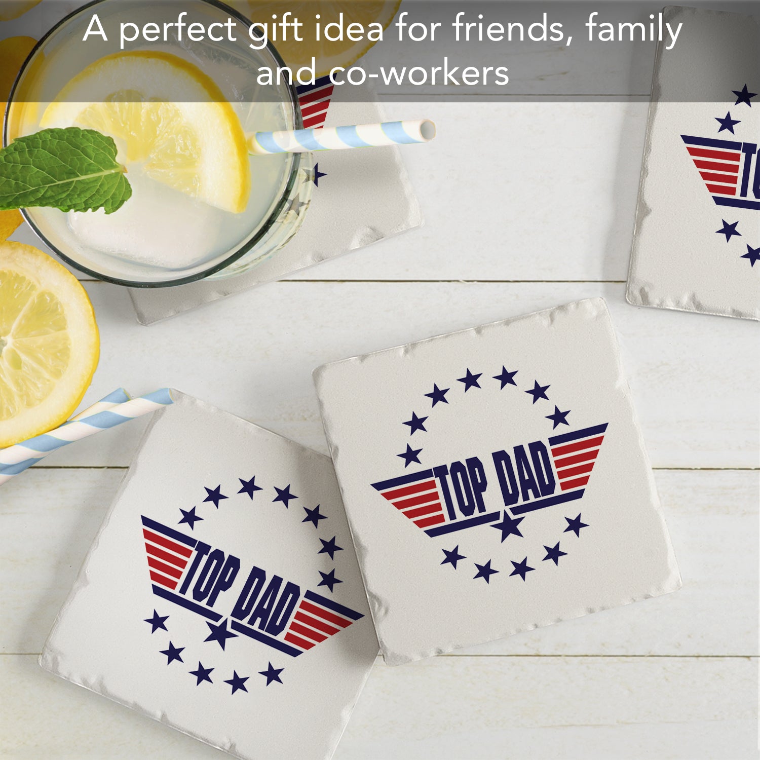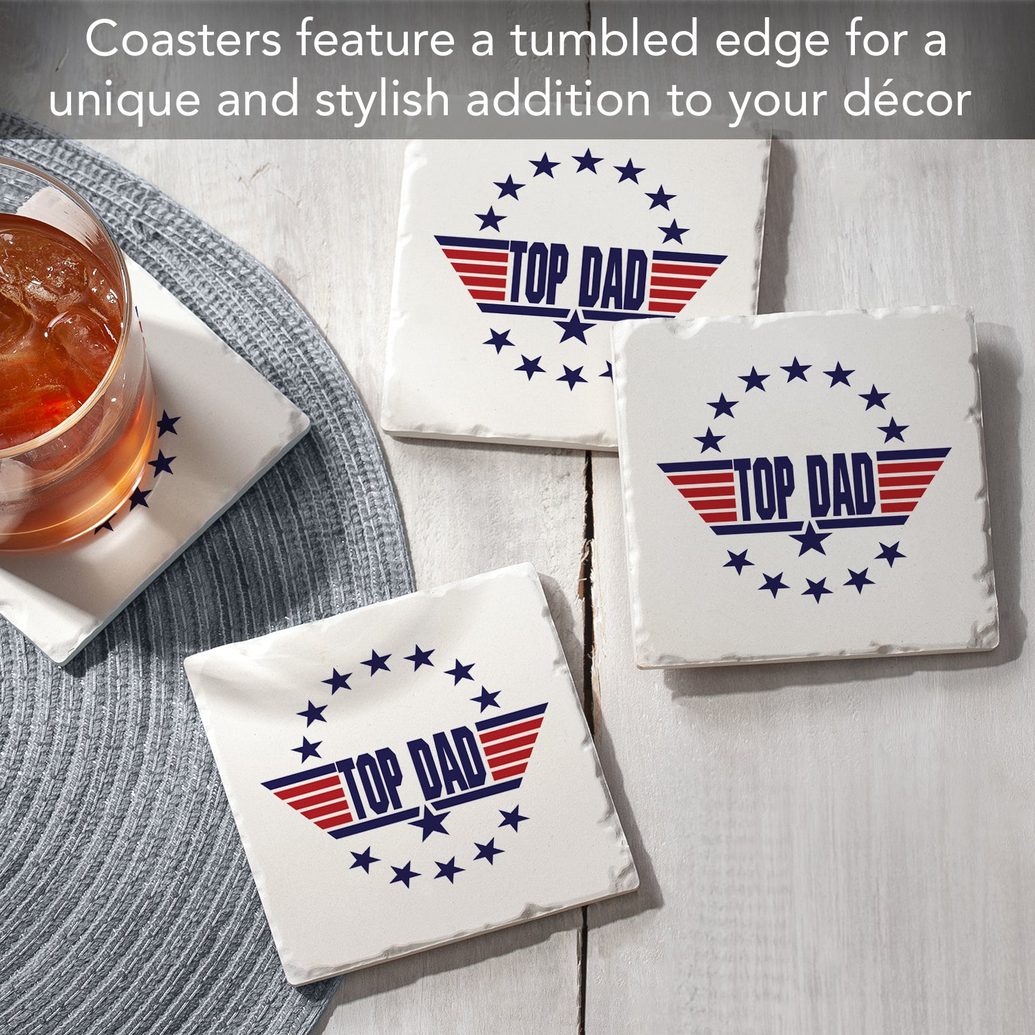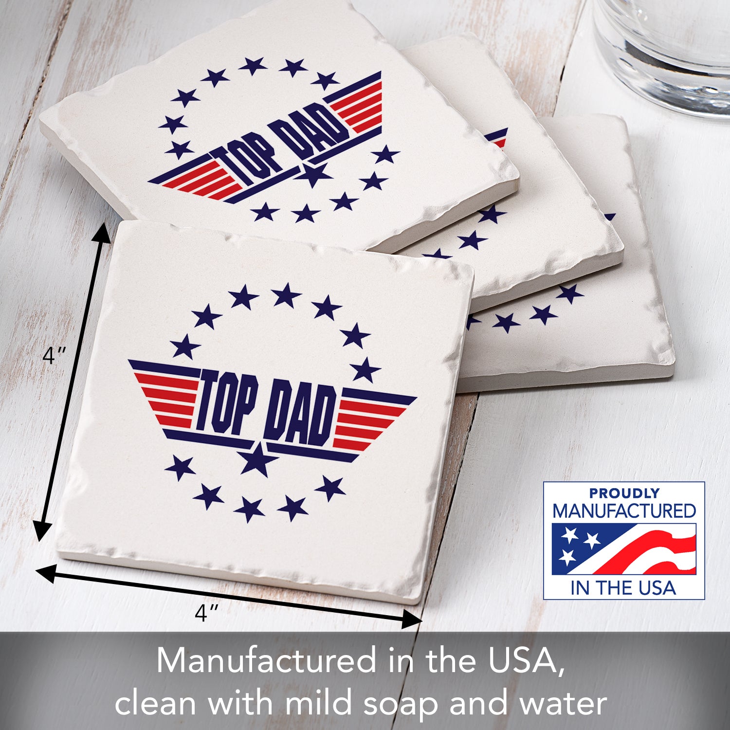 Top Dad 4 Pack Tumbled Tile Stone Coasters 4" Square Manufactured in the USA