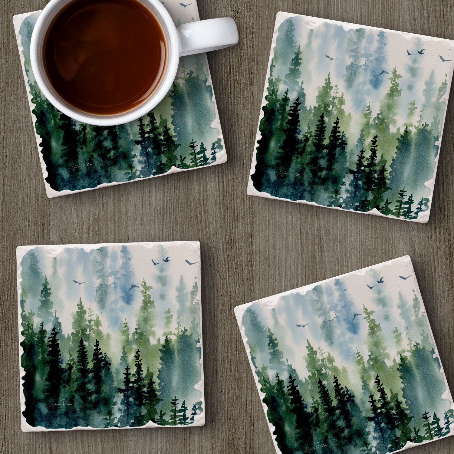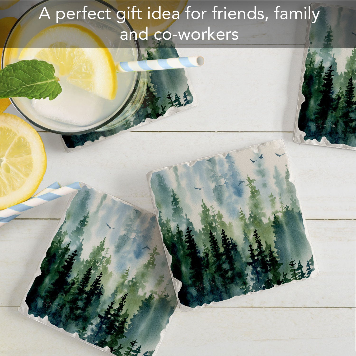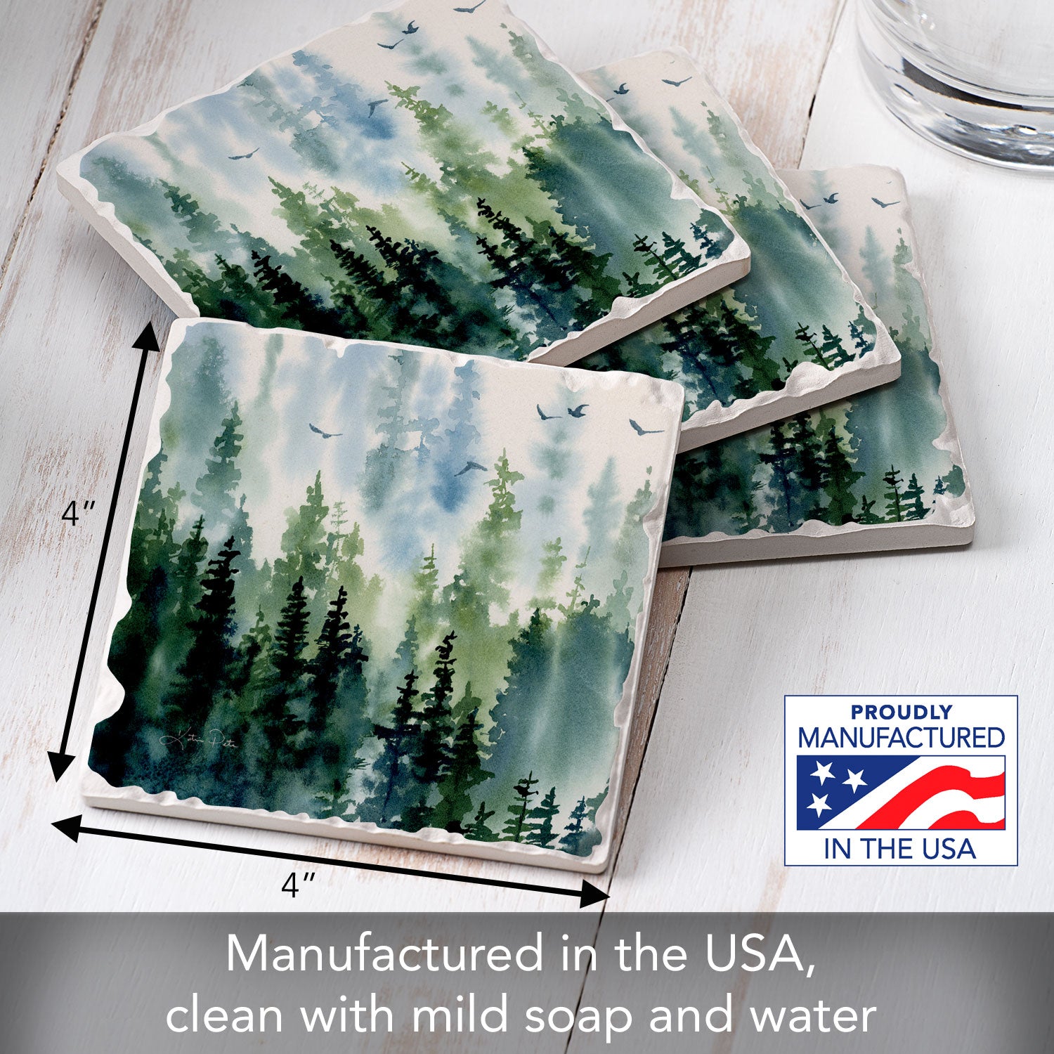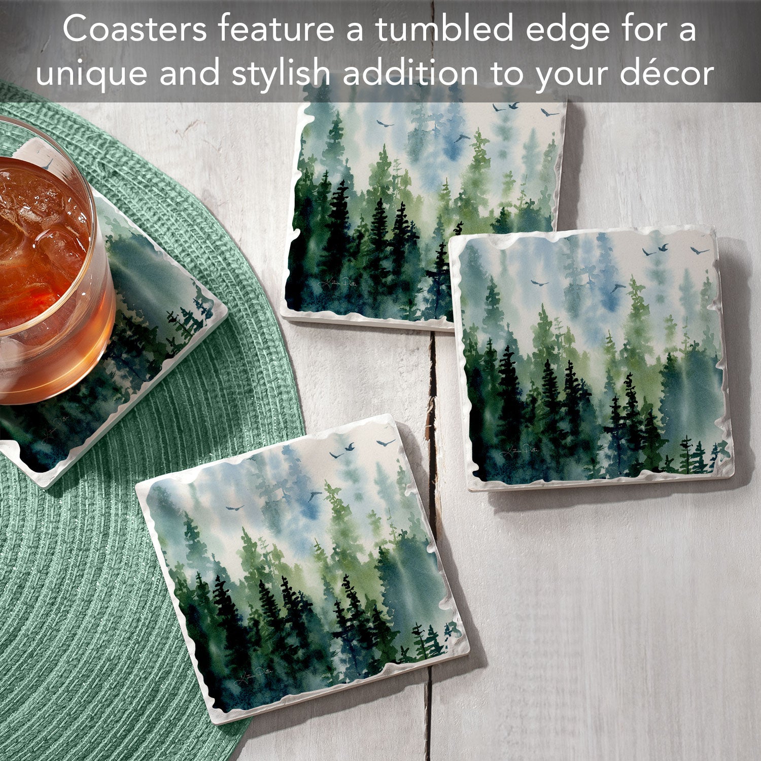 Thirstystone Treeline 4 Pack Tumbled Tile Stone Coasters 4" Square Manufactured in the USA