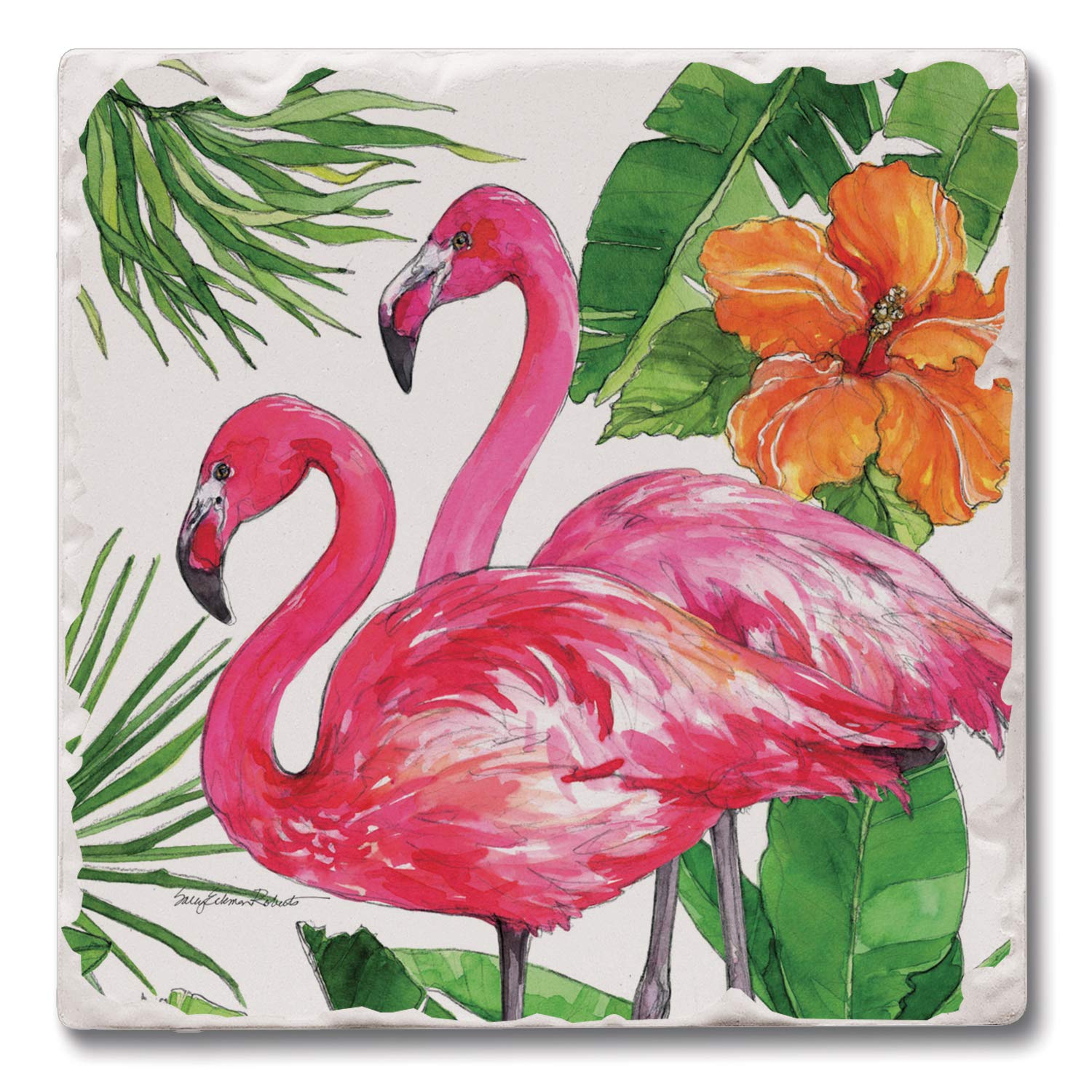 Thirstystone Tropical Flamingo Pair 4 Pack Tumbled Tile Stone Coasters 4" Square Manufactured in the USA