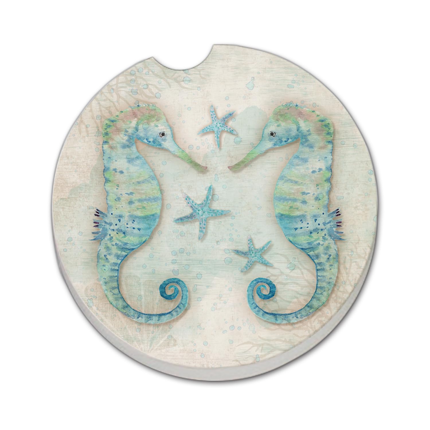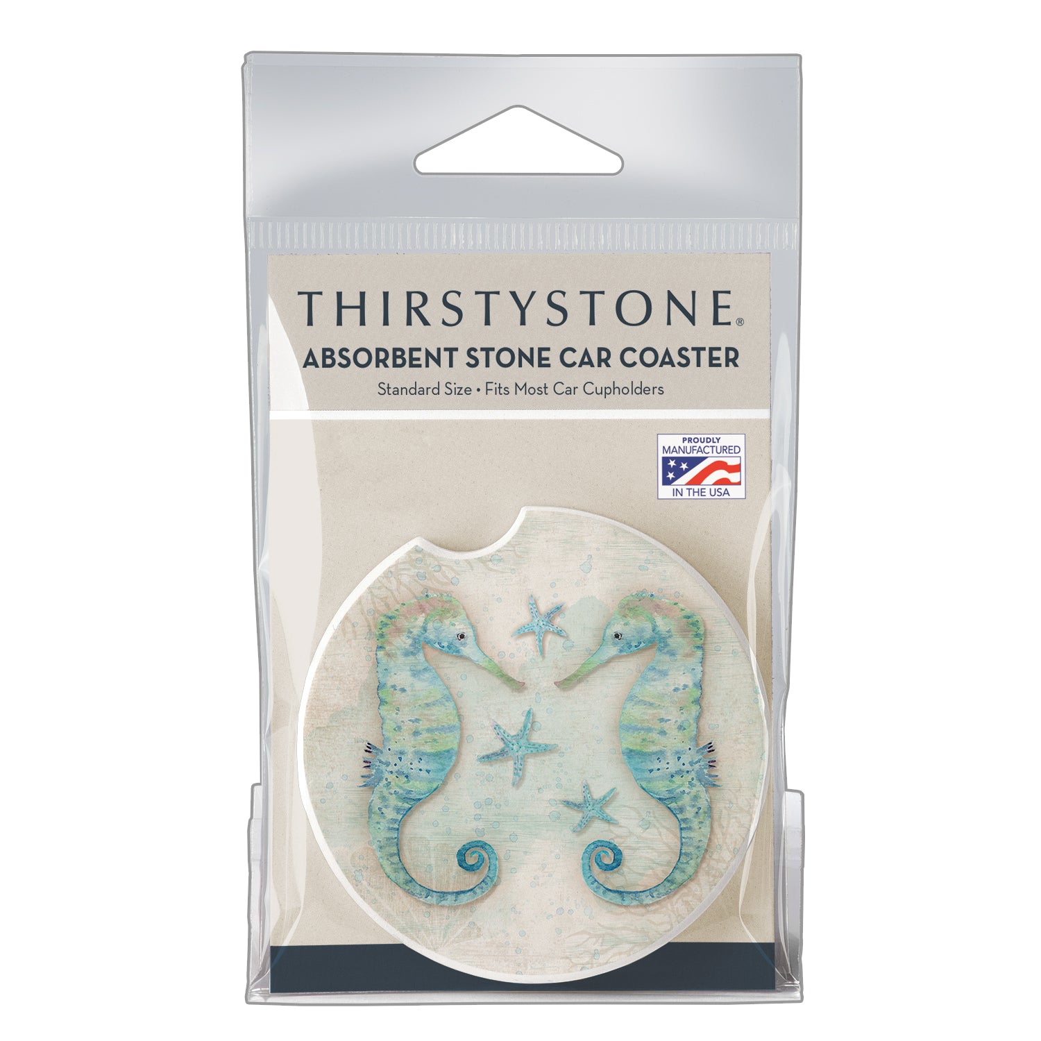 Thirstystone Twin Seahorses Single Absorbent Stone Car Coaster 2.6” Diameter Manufactured in the USA