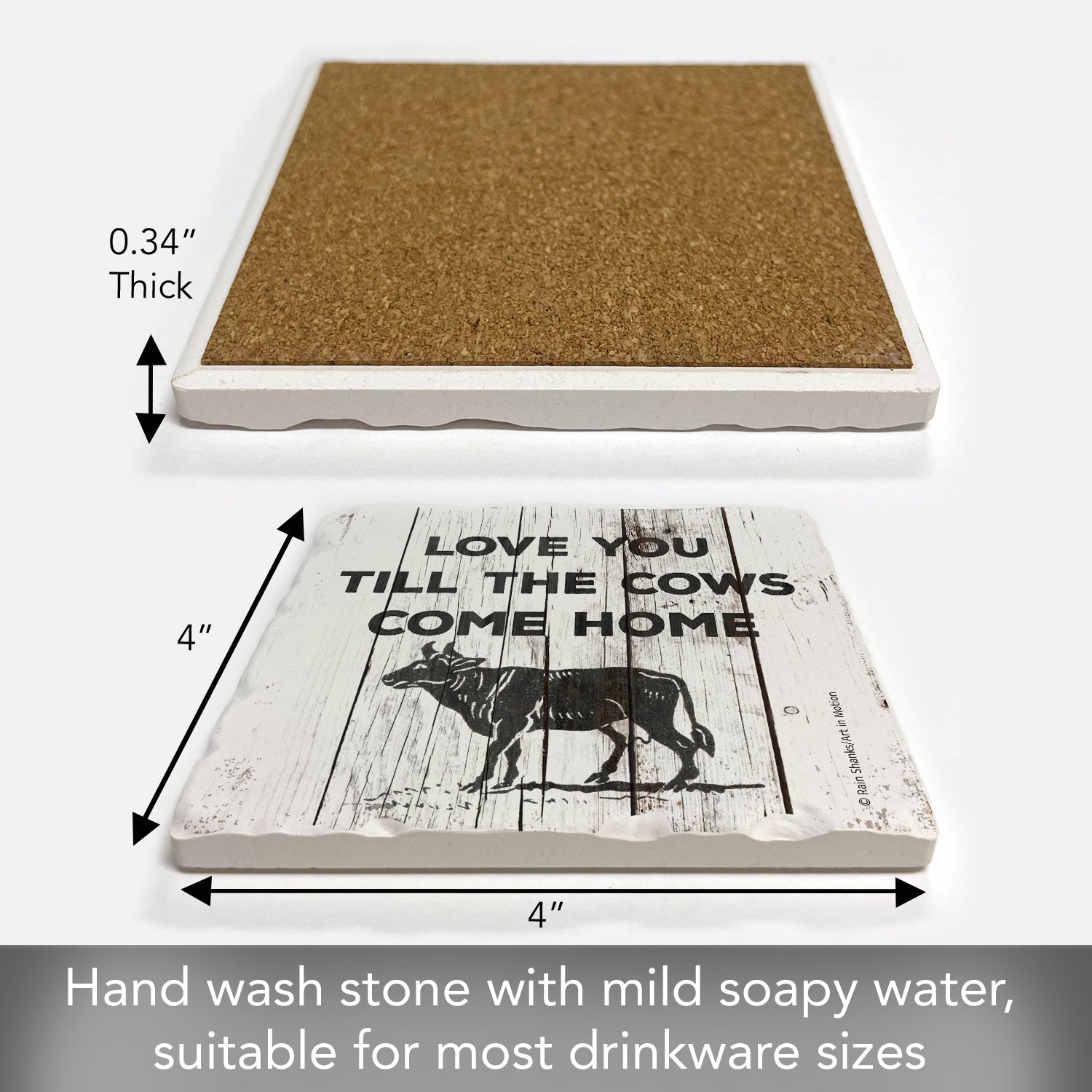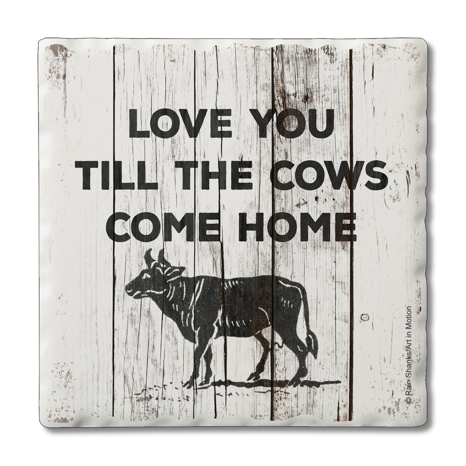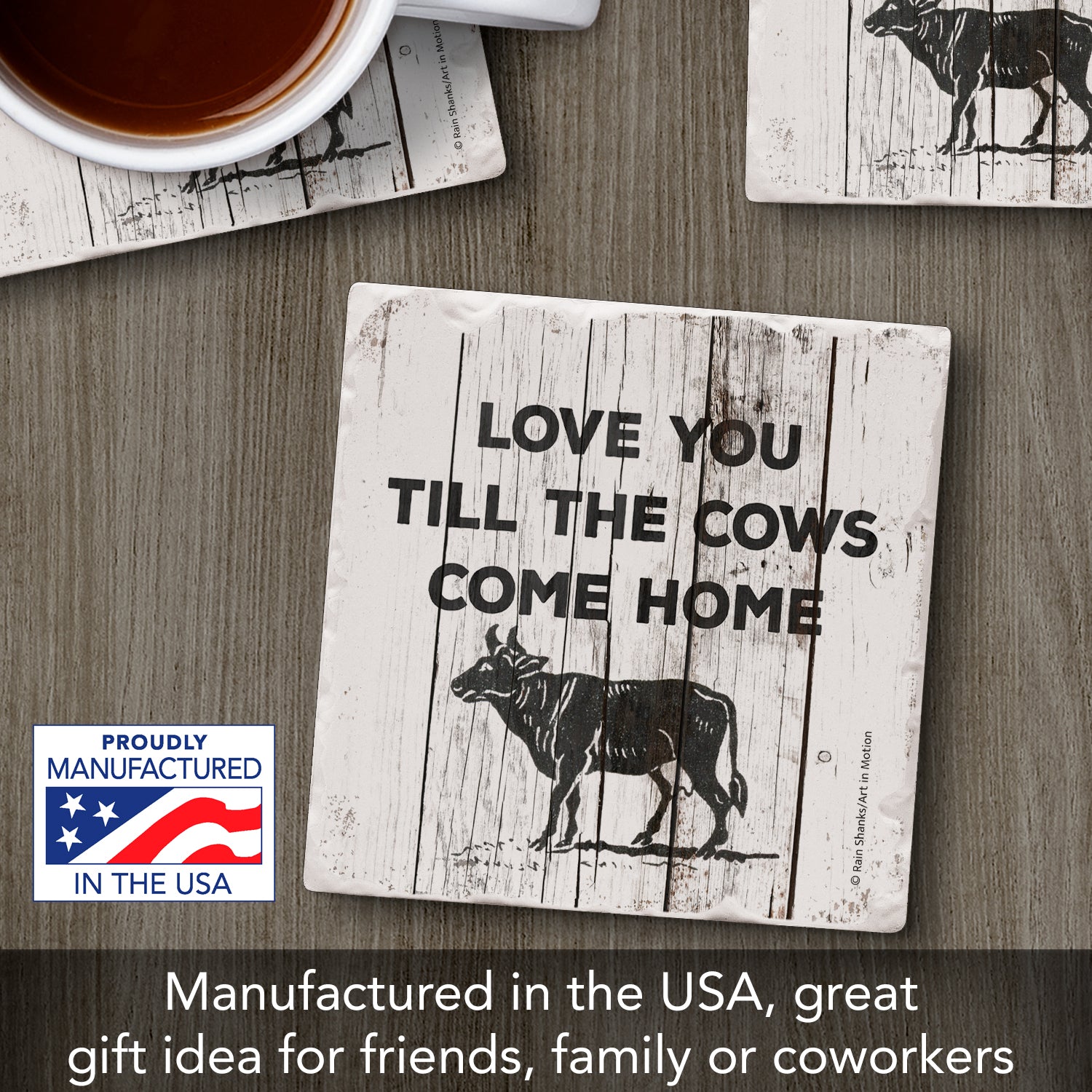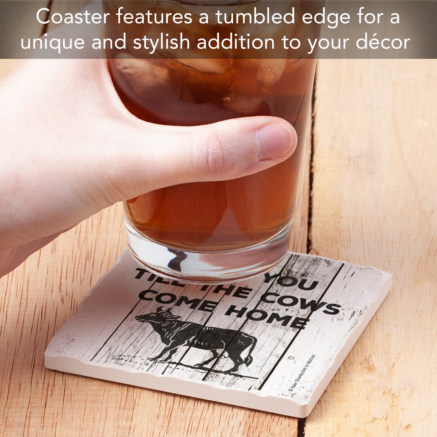 Thirstystone Until The Cows Come Home Single Tumbled Tile Stone Coaster with Protective Cork Backing Manufactured in The USA 4" Square, Artistic, Easily Wipes Clean