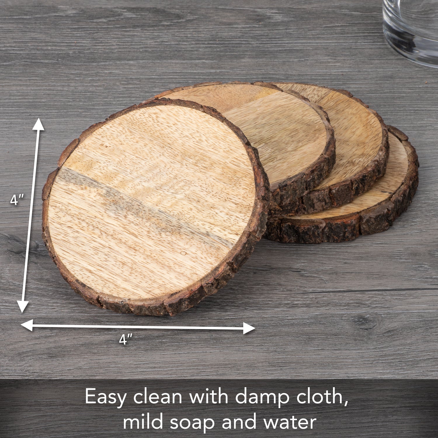 Thirstystone Natural Mango Wood Coasters with Bark Edges 4 Pack