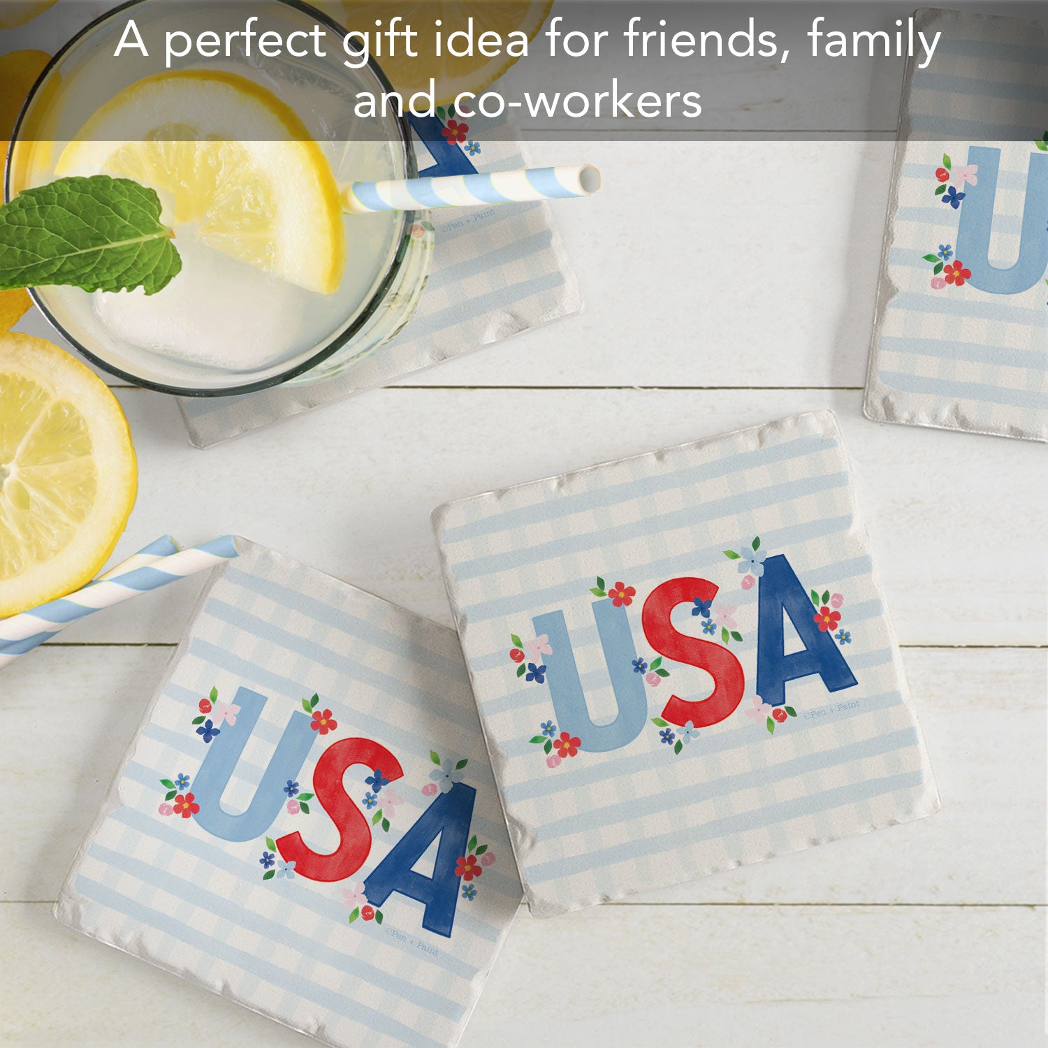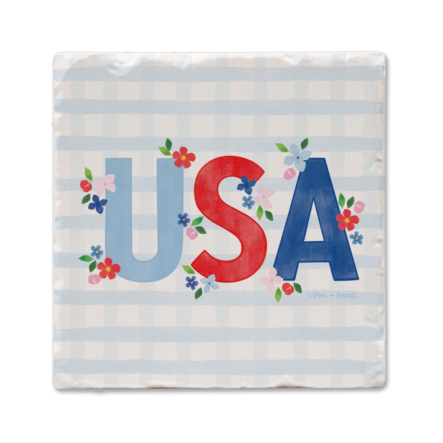 Thirstystone USA Gingham 4 Pack Tumbled Tile Coasters 4" Square
