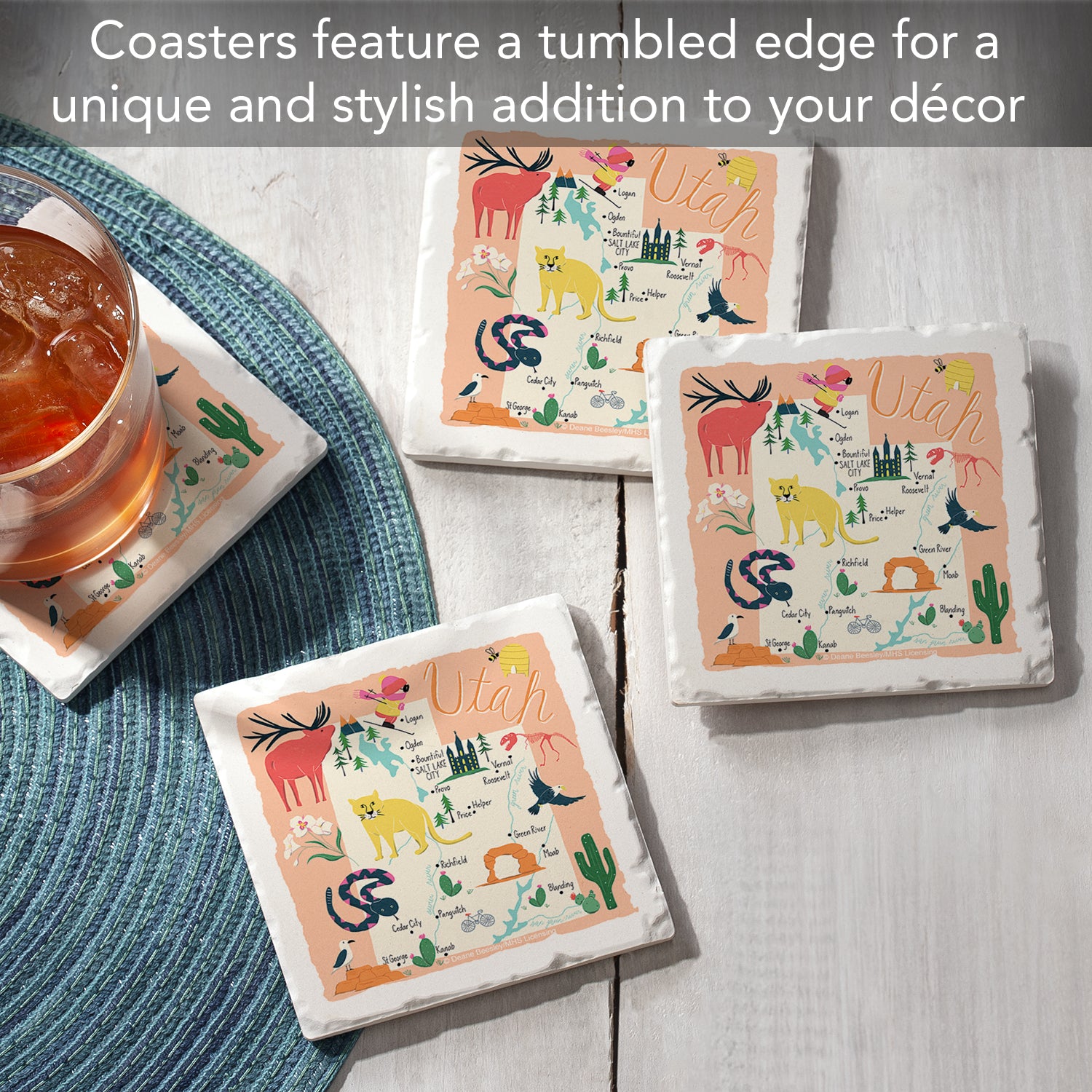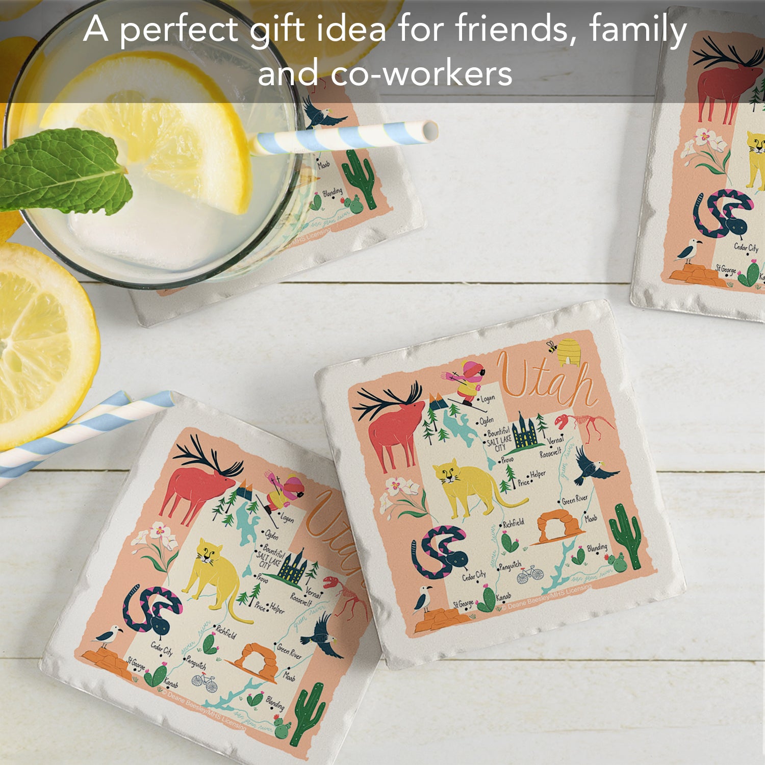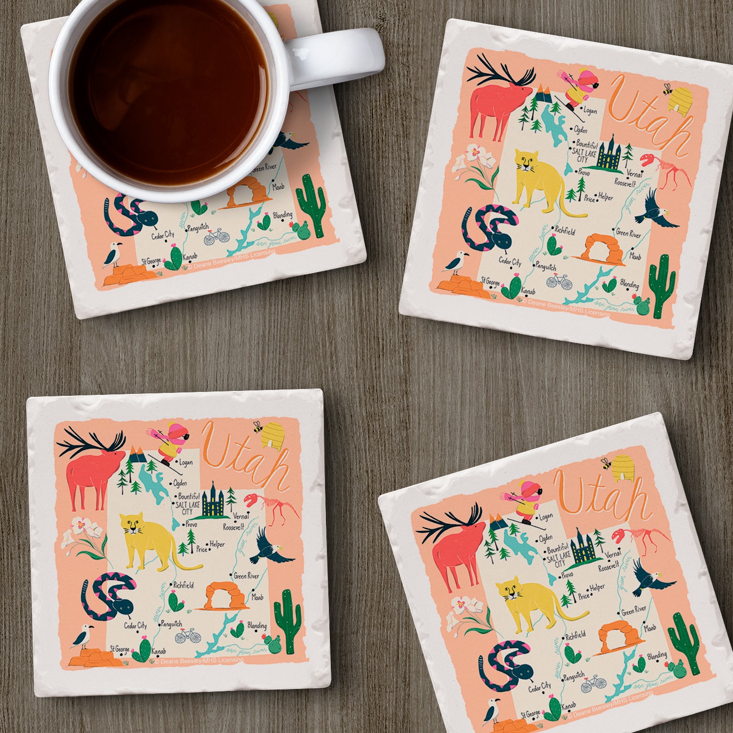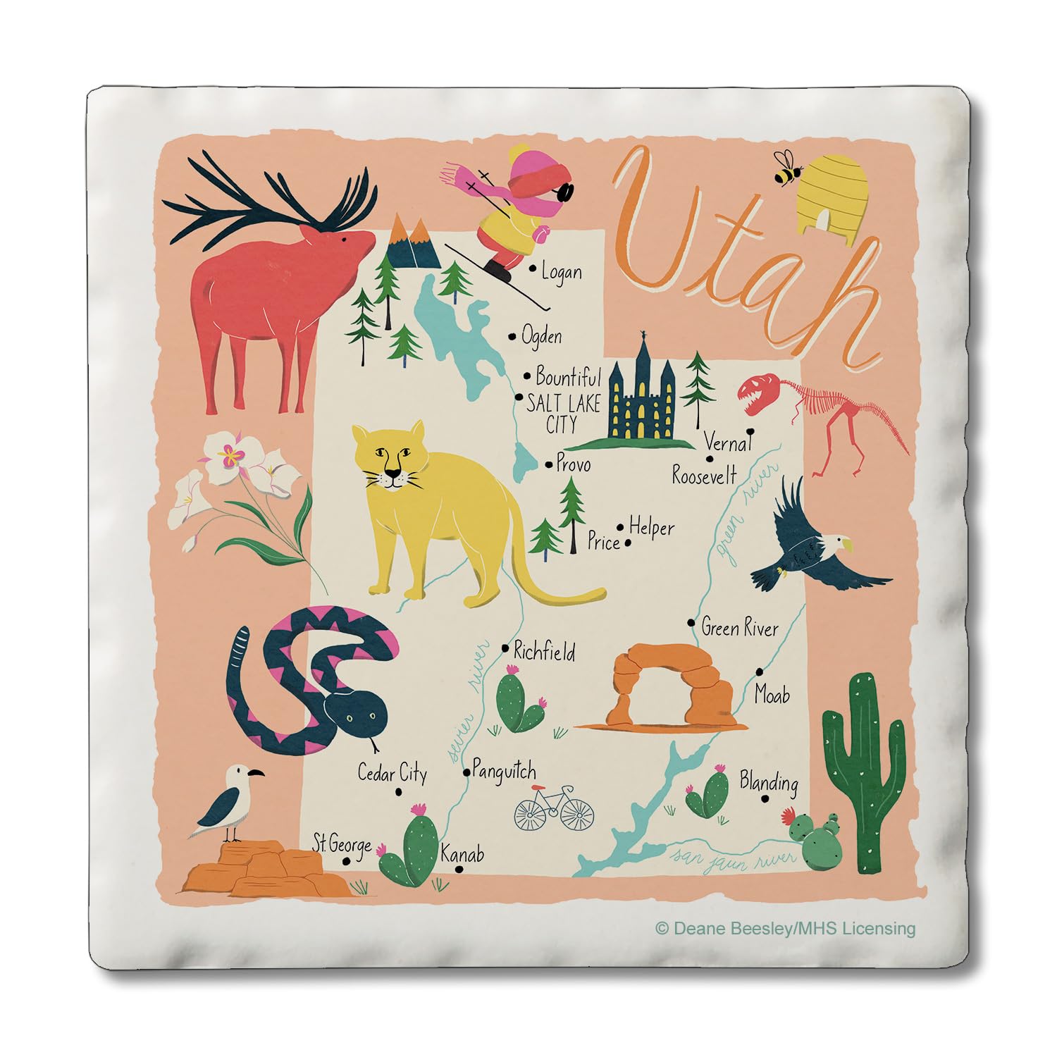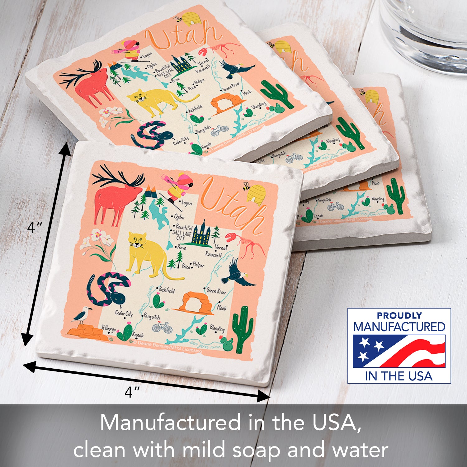 Thirstystone Utah Home State 4 Pack Tumbled Tile Stone Coasters 4" Square Manufactured in the USA