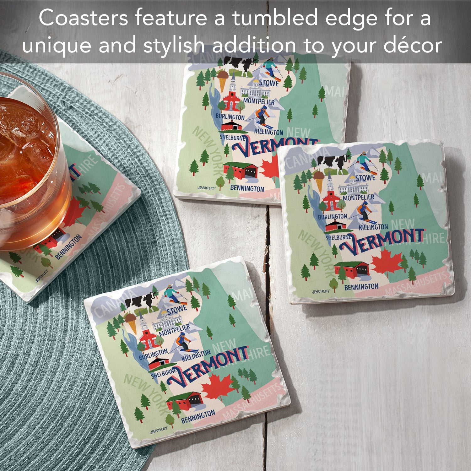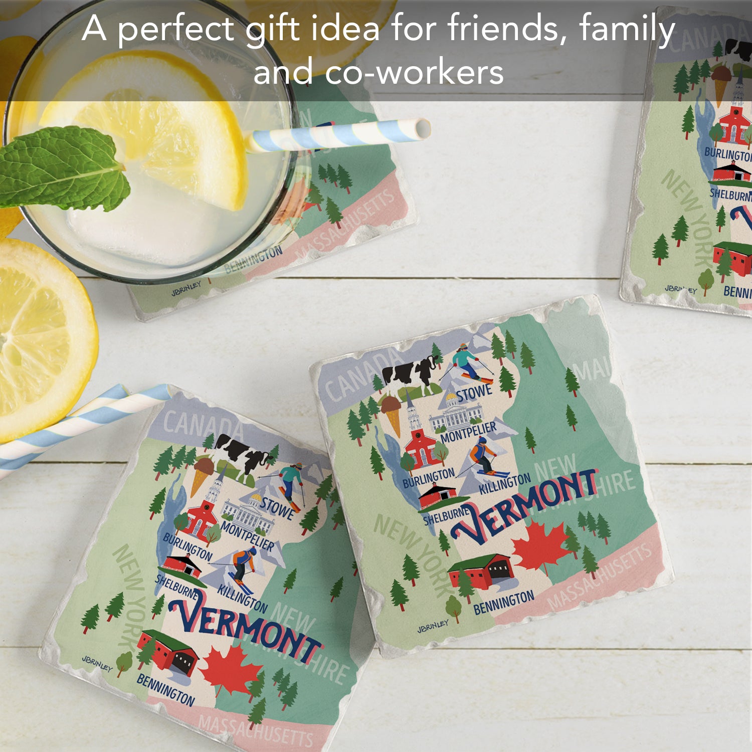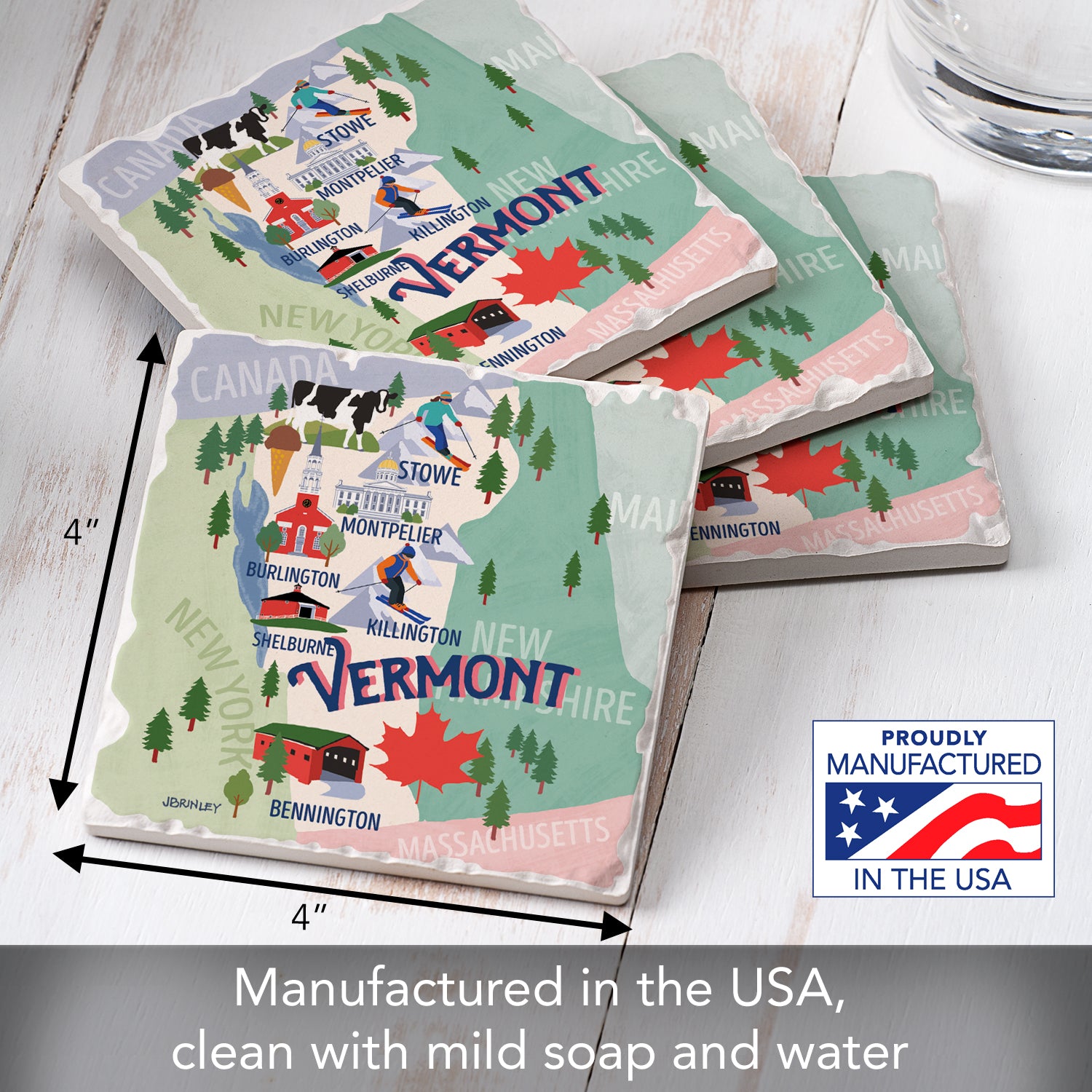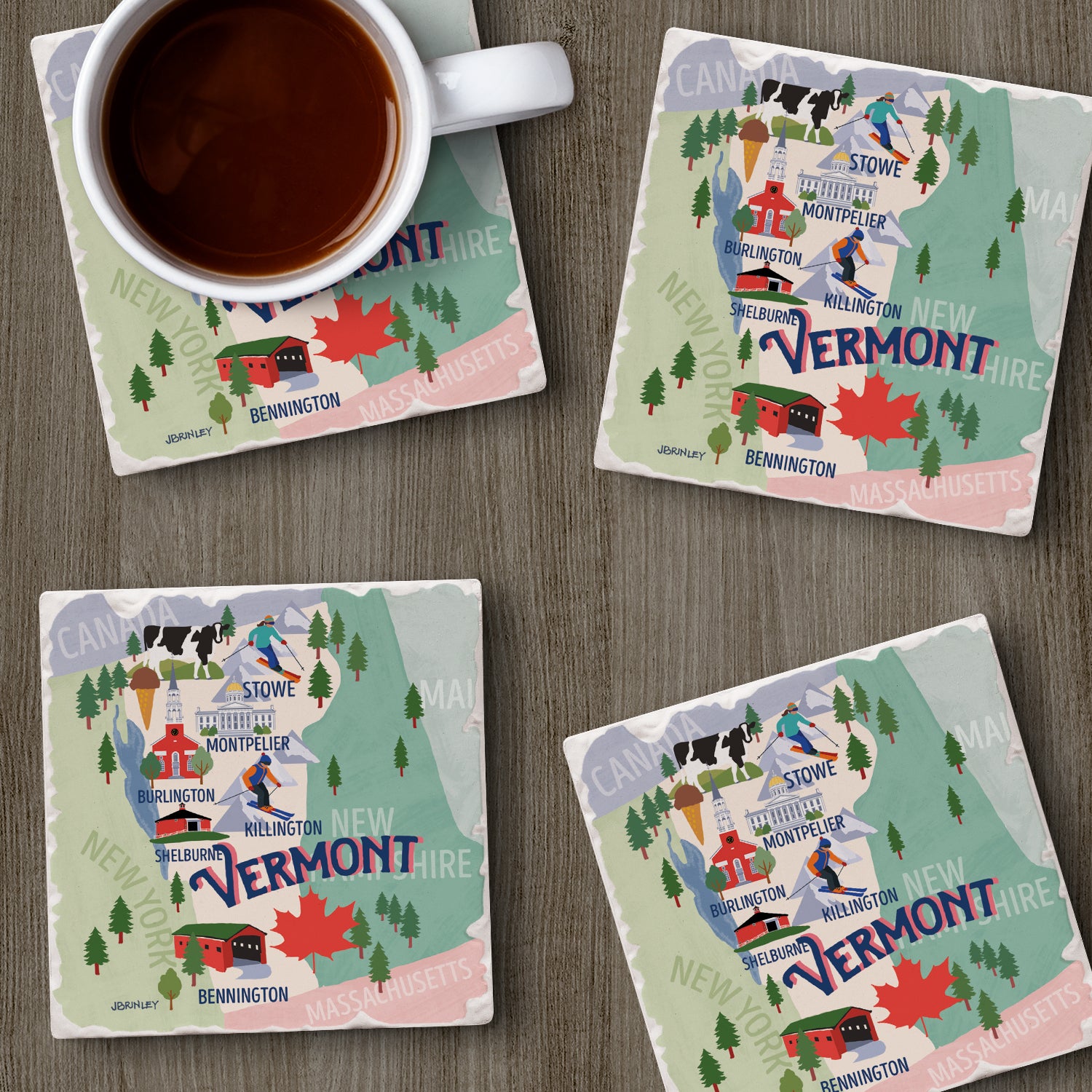 Thirstystone Vermont Attractions 4 Pack Tumbled Tile Stone Coasters 4” Square Manufactured in the USA
